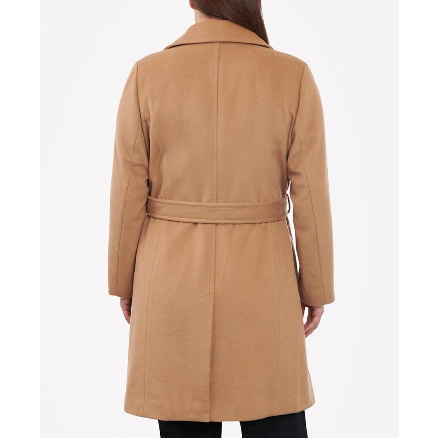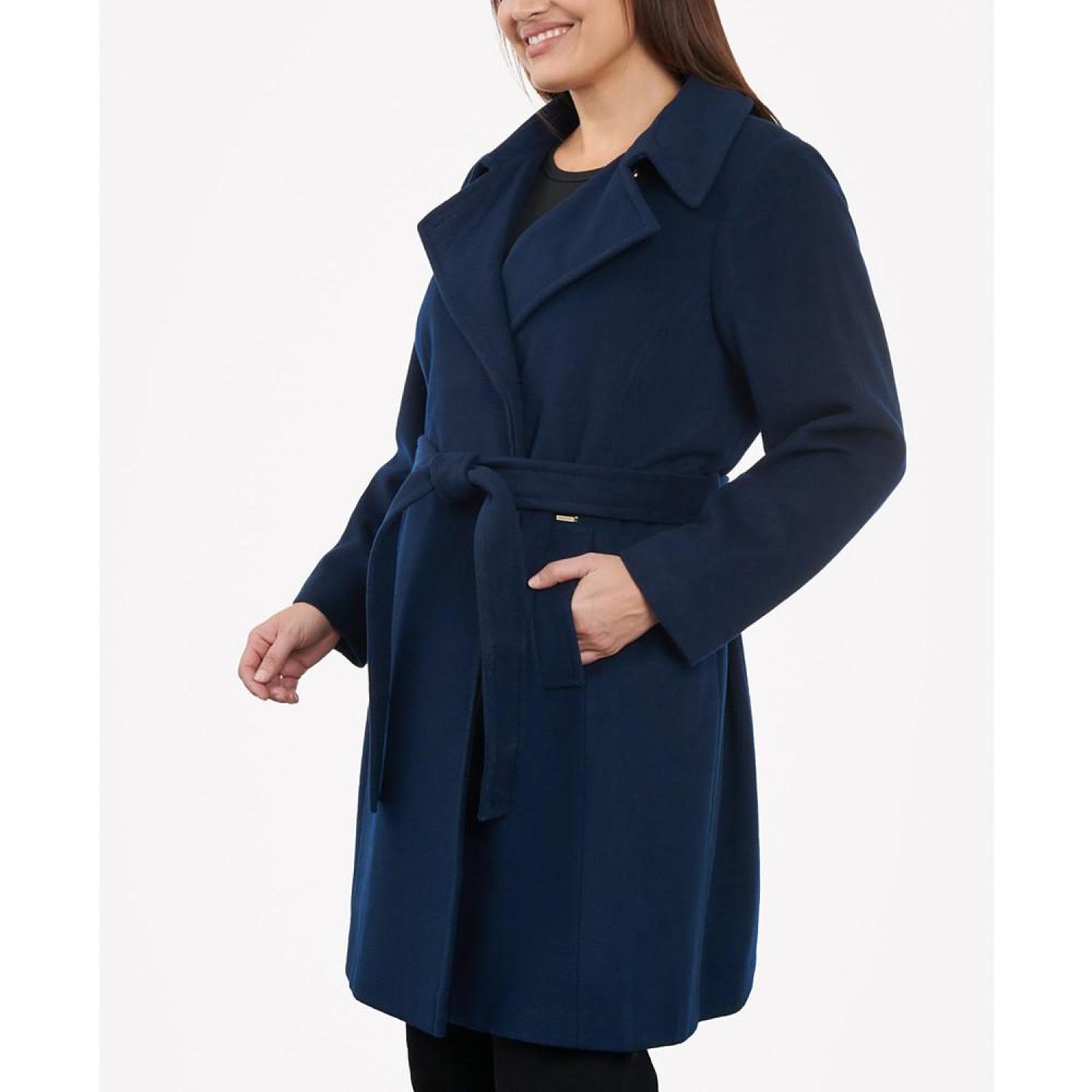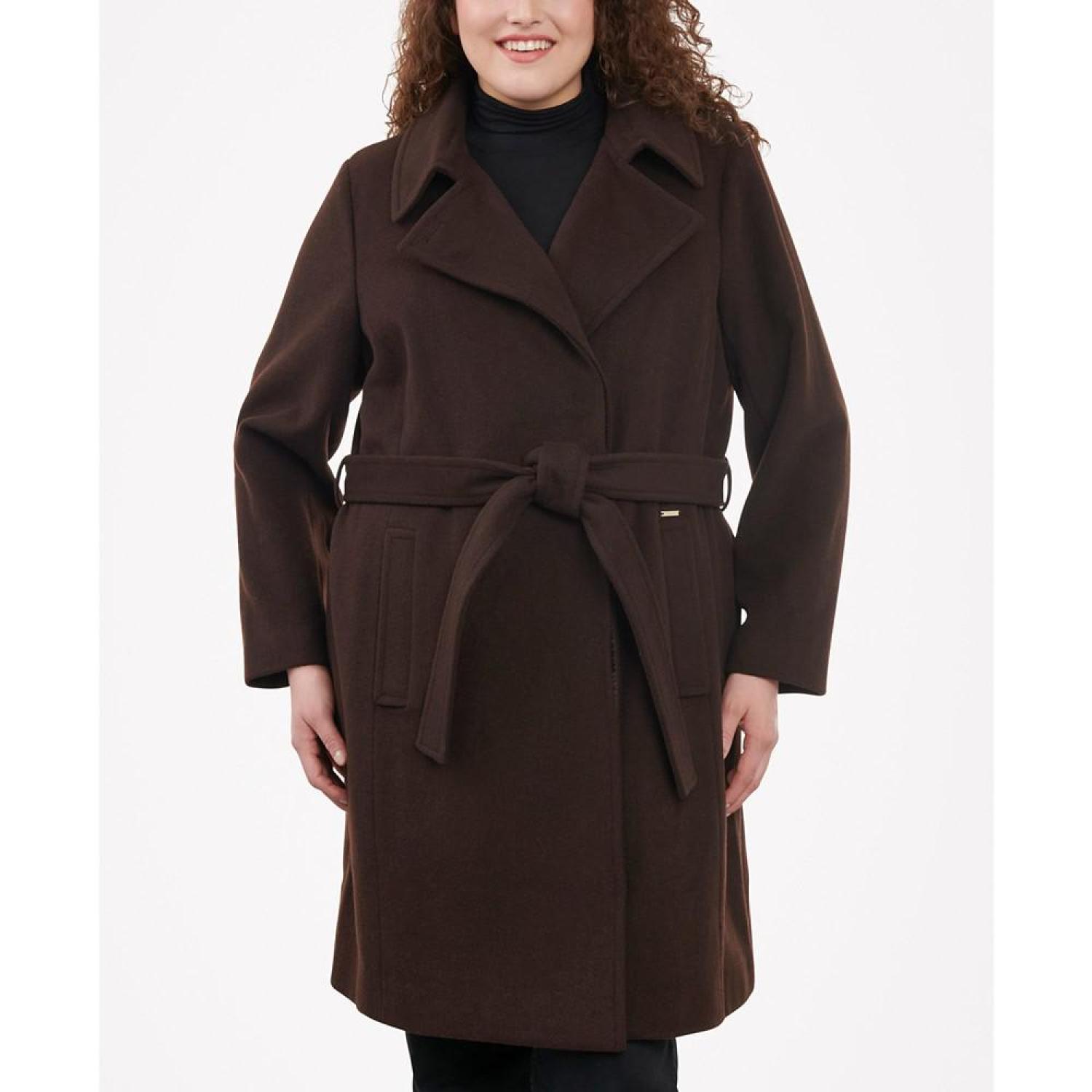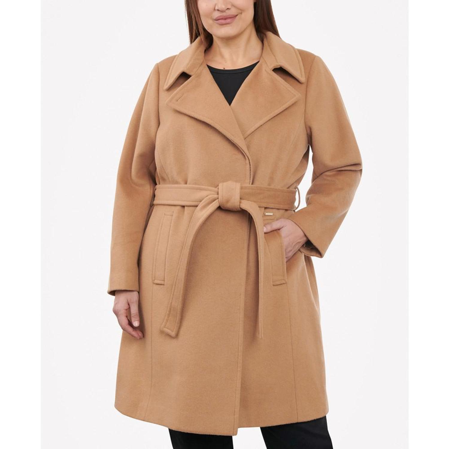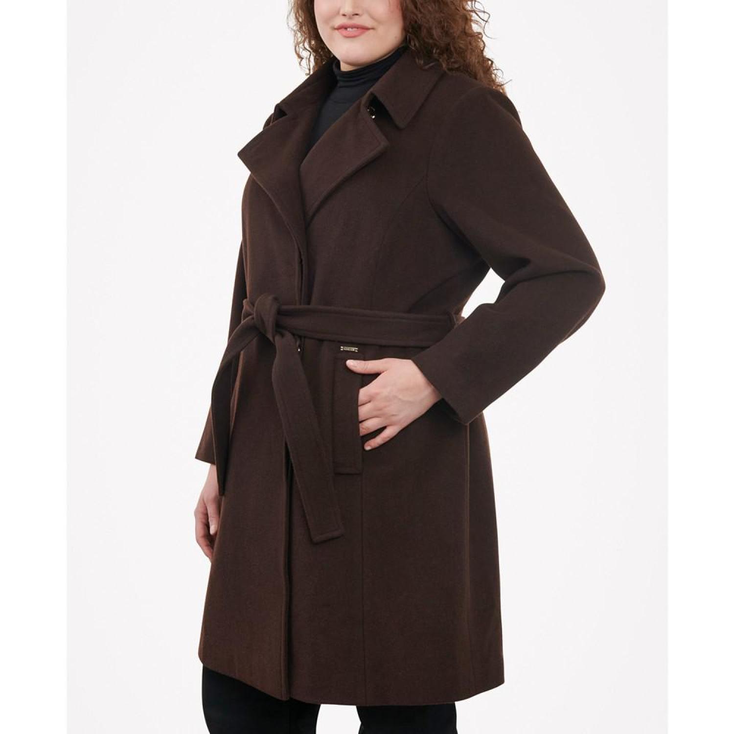 Wrap yourself is stylish sophistication with this plus size belted wrap coat from MICHAEL Michael Kors. Approx. model height is 5'7" and she is wearing a size 2X Approx. length: 39" from center back to hem Notched collar; button front closure Removable belt at waist Two welt pockets at hips Lined Shell: wool, polyester, rayon, acrylic, nylon; lining: polyester Dry clean Imported