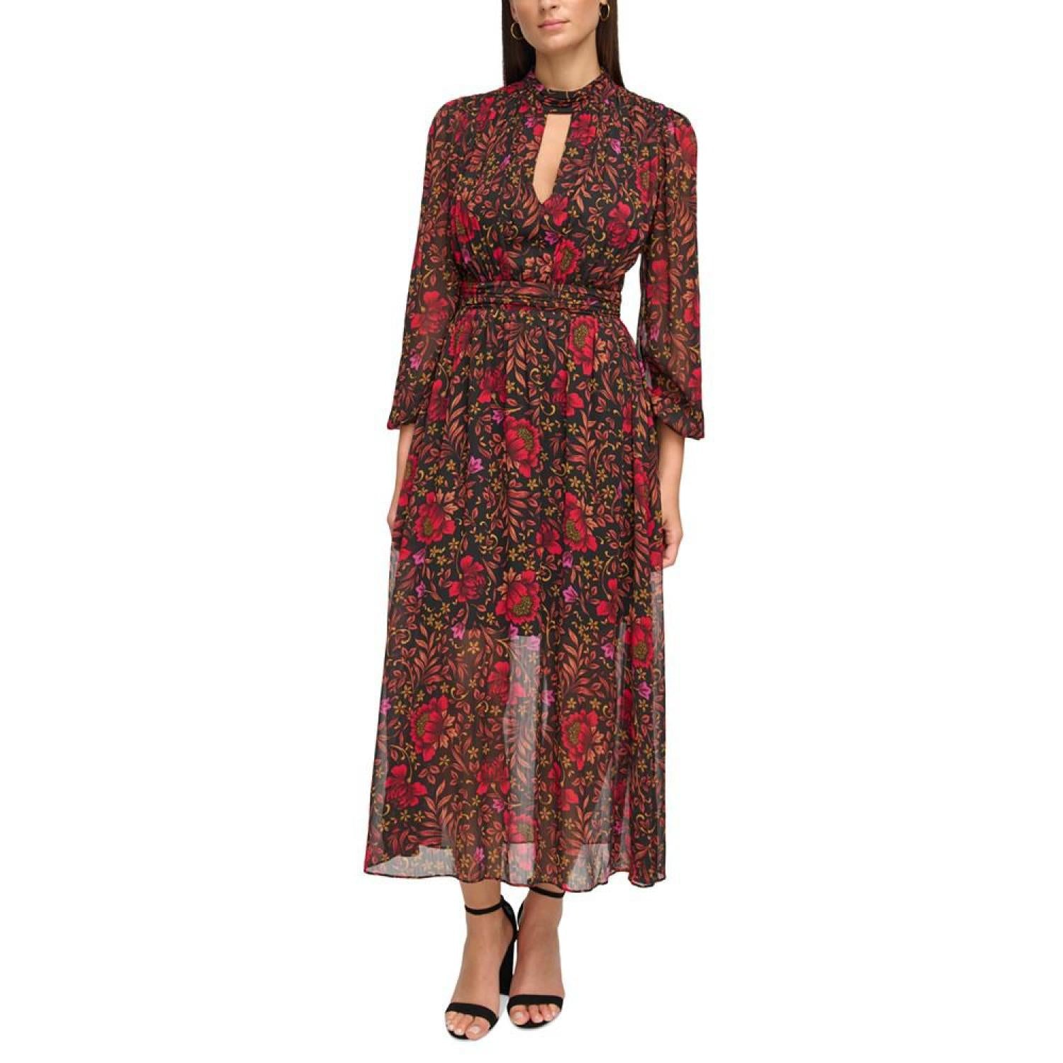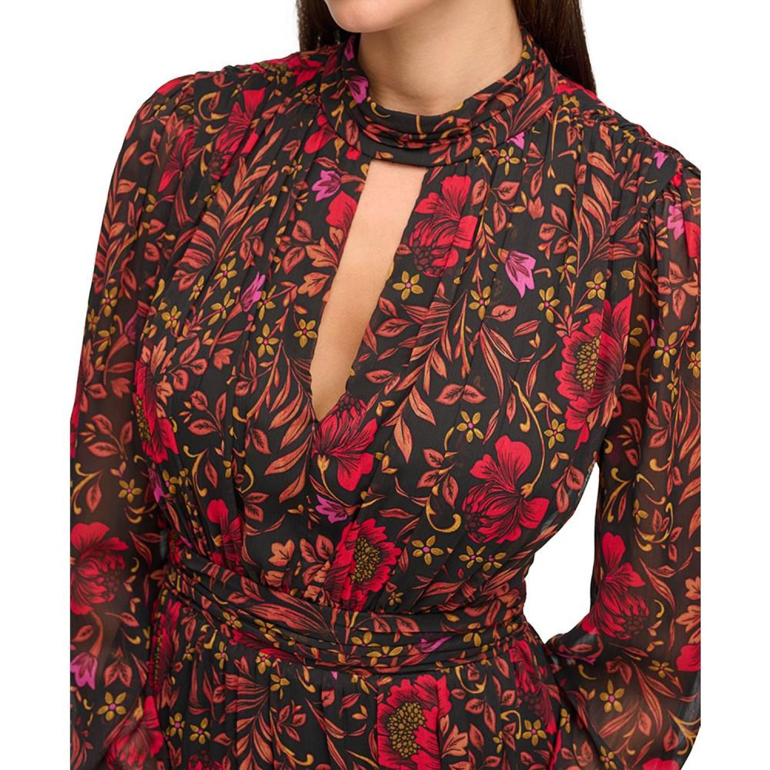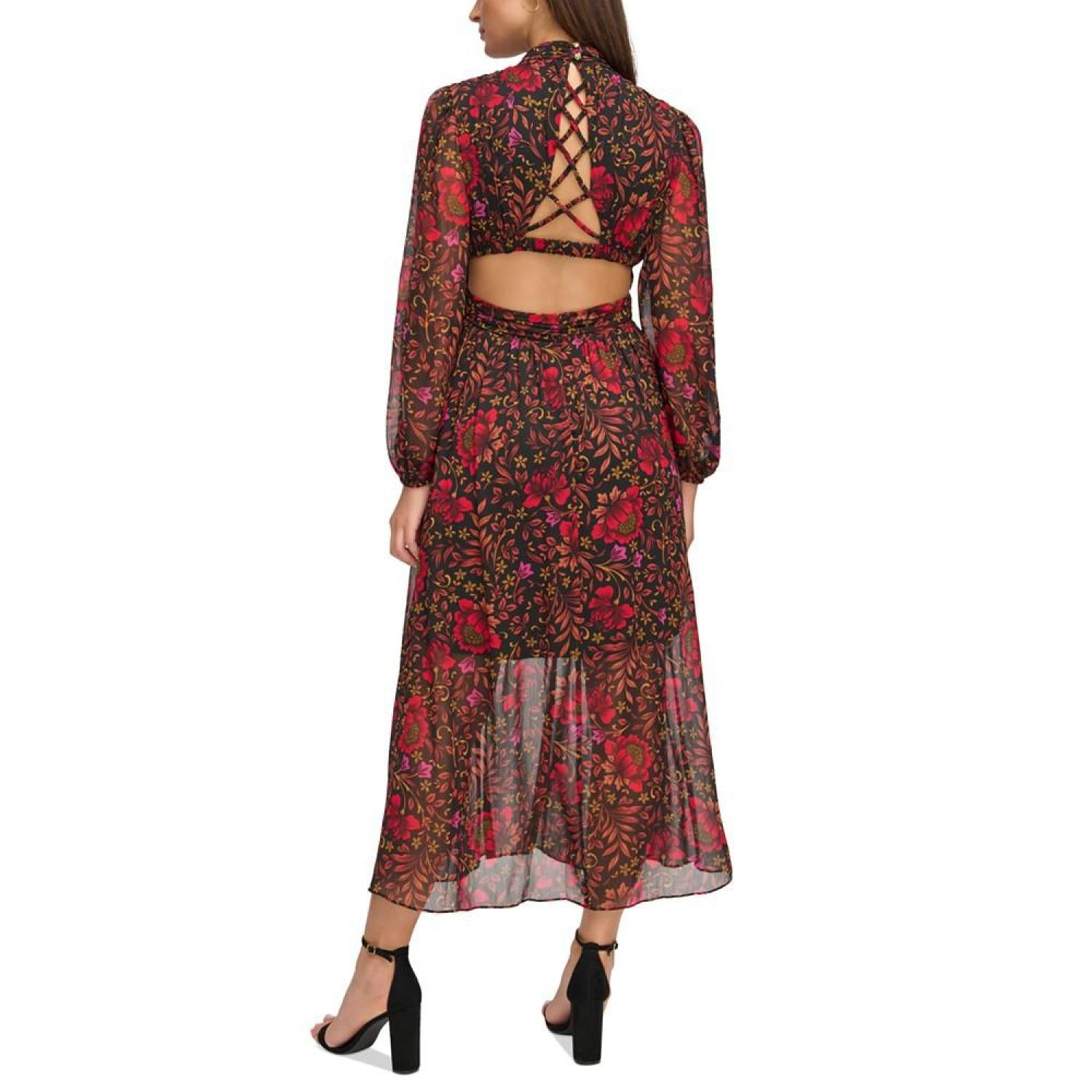 Women's Printed Chiffon Cut-Out Lace-Up Maxi Dress