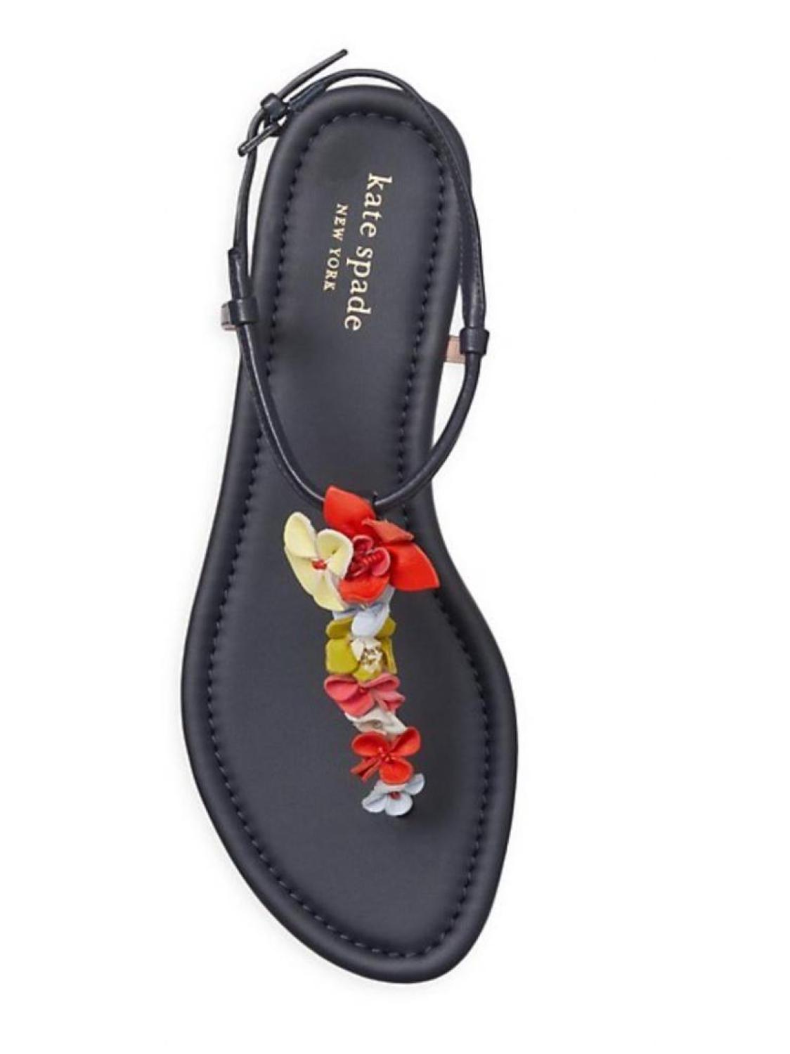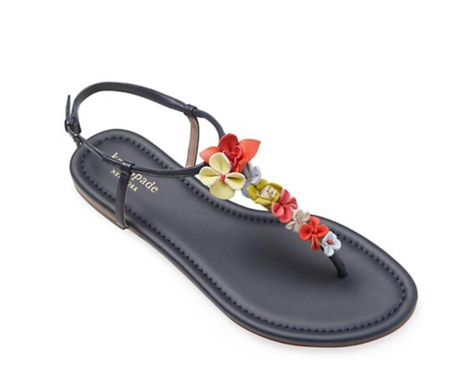 Classicly cute and all-day-wearable. We love this sandal.These Kate Spade New York leather Rosalie thong sandals are embellished with leather florals. Leather upper. Ankle-strap closure.