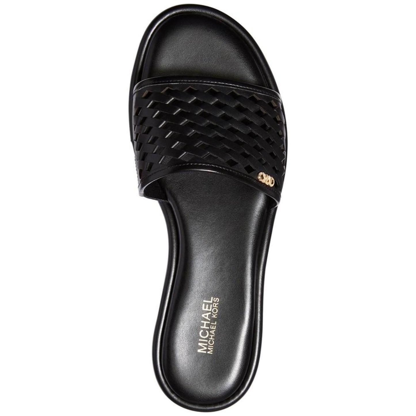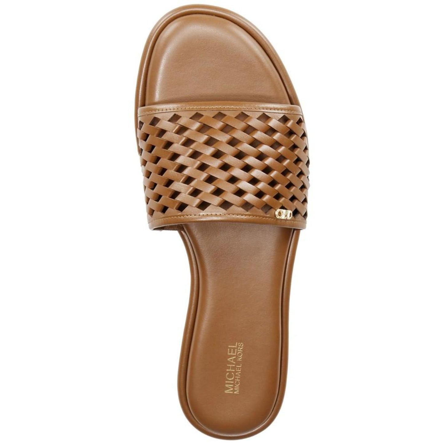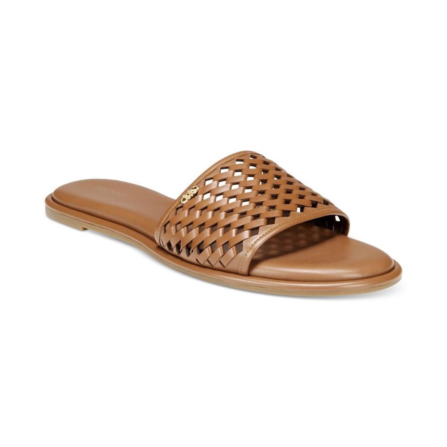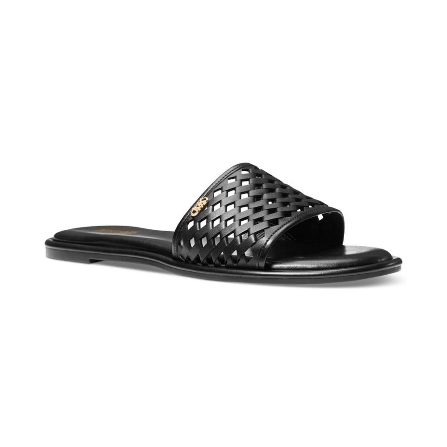 Punchy perforations add interest to wide straps in the effortless slip-on styling of the Saylor sandals from MICHAEL Michael Kors. 1/2" heel Open toe Slip on Perforated detailing at strap Leather upper; manmade lining; rubber sole Imported