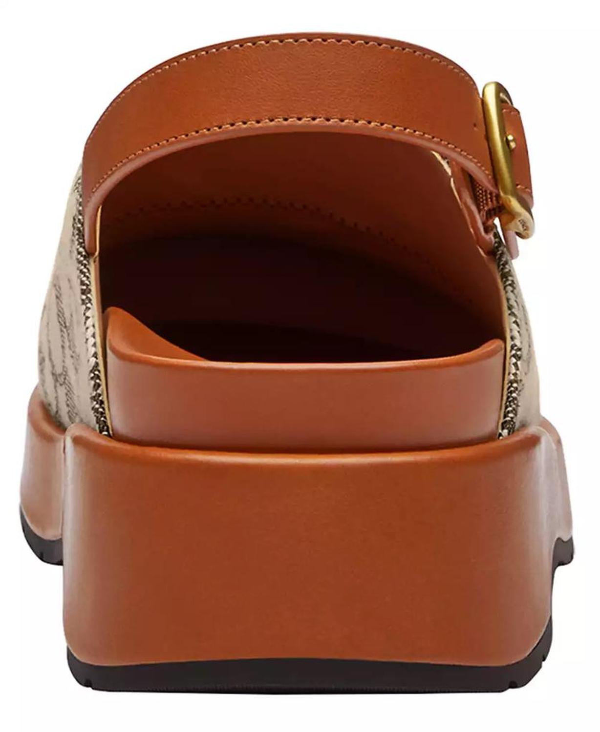Effortlessly elegant, these COACH clogs are styled with a block heel and a round toe for a refined finish. A buckle closure and platform sole complete the look with comfort and modern charm. Heel style: block heel Platform height: 1-1/2"; heel height: 2-1/2" Calf width: regular Toe shape: round toe Closure: buckle closure Sole type: platform Fit description: true to size Upper: leather; lining: man-made, leather; outsole: rubber Imported
