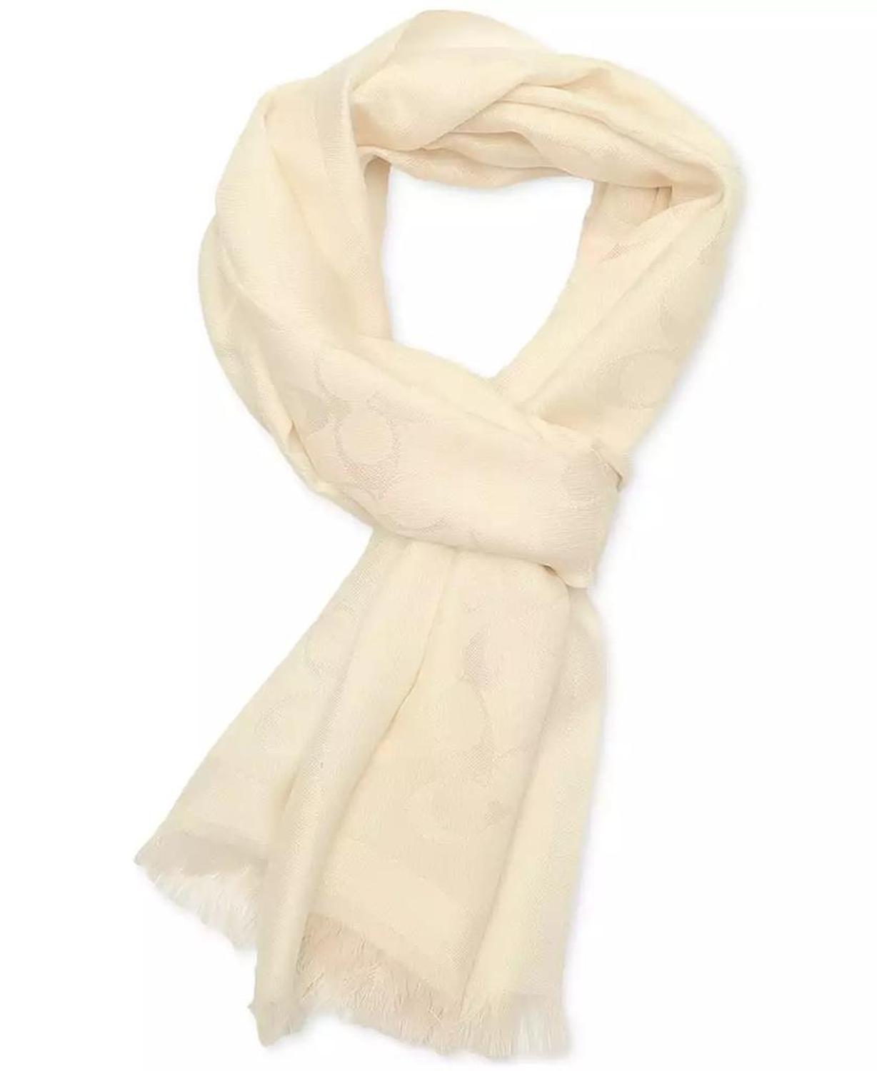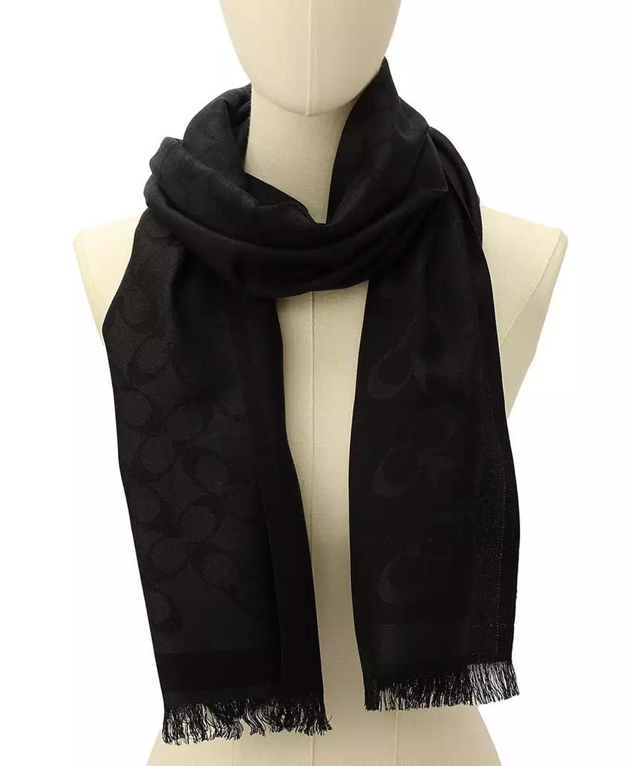 Wear this classic COACH log scarf around your neck to add a pop of color or pattern to any look. Approx. dimensions: 66" x 18" Allover signature C logo print; self fringe at both ends 80% lyocell, 20% wool Hand wash Imported