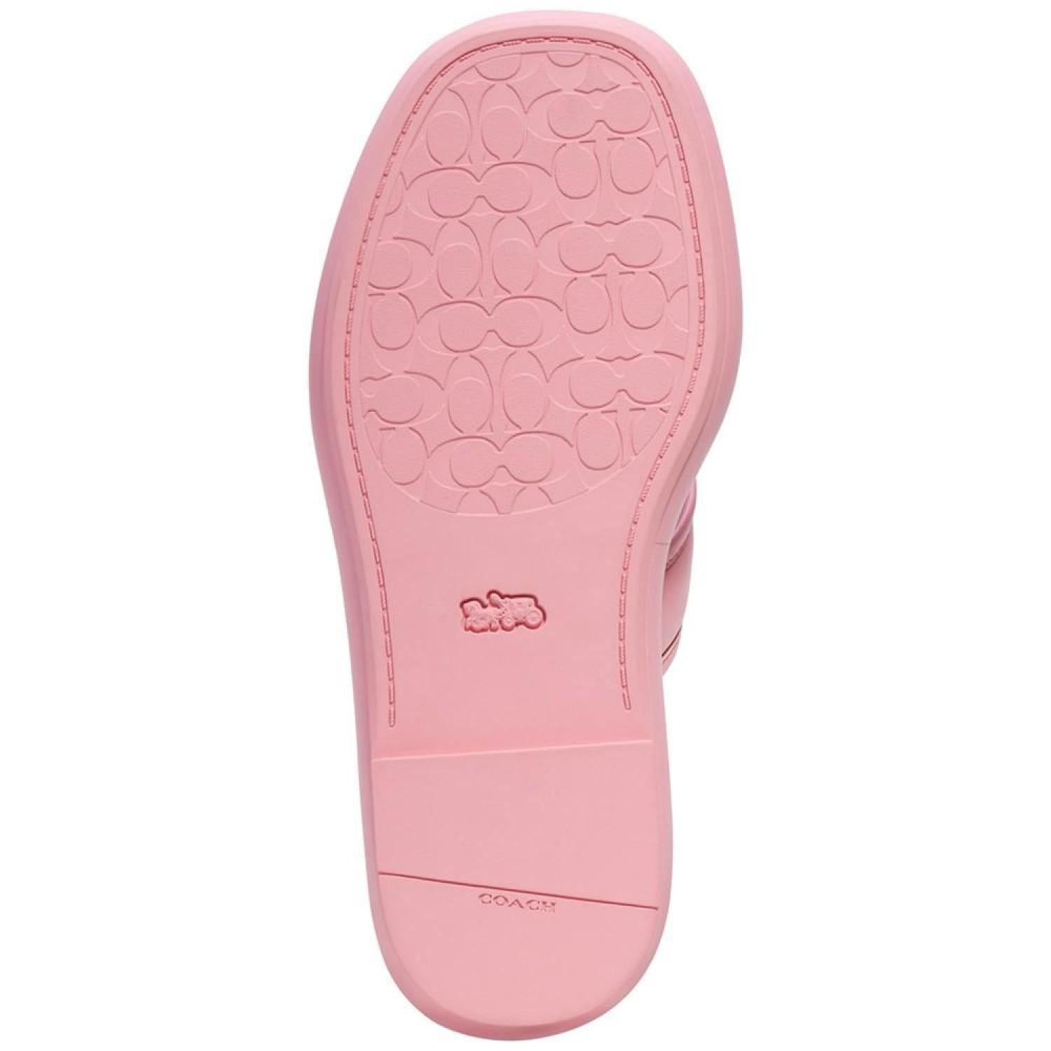 Signature accents and supple leather pair over a sporty platform elevating warm-weather style in the Sylvie sandals by COACH.