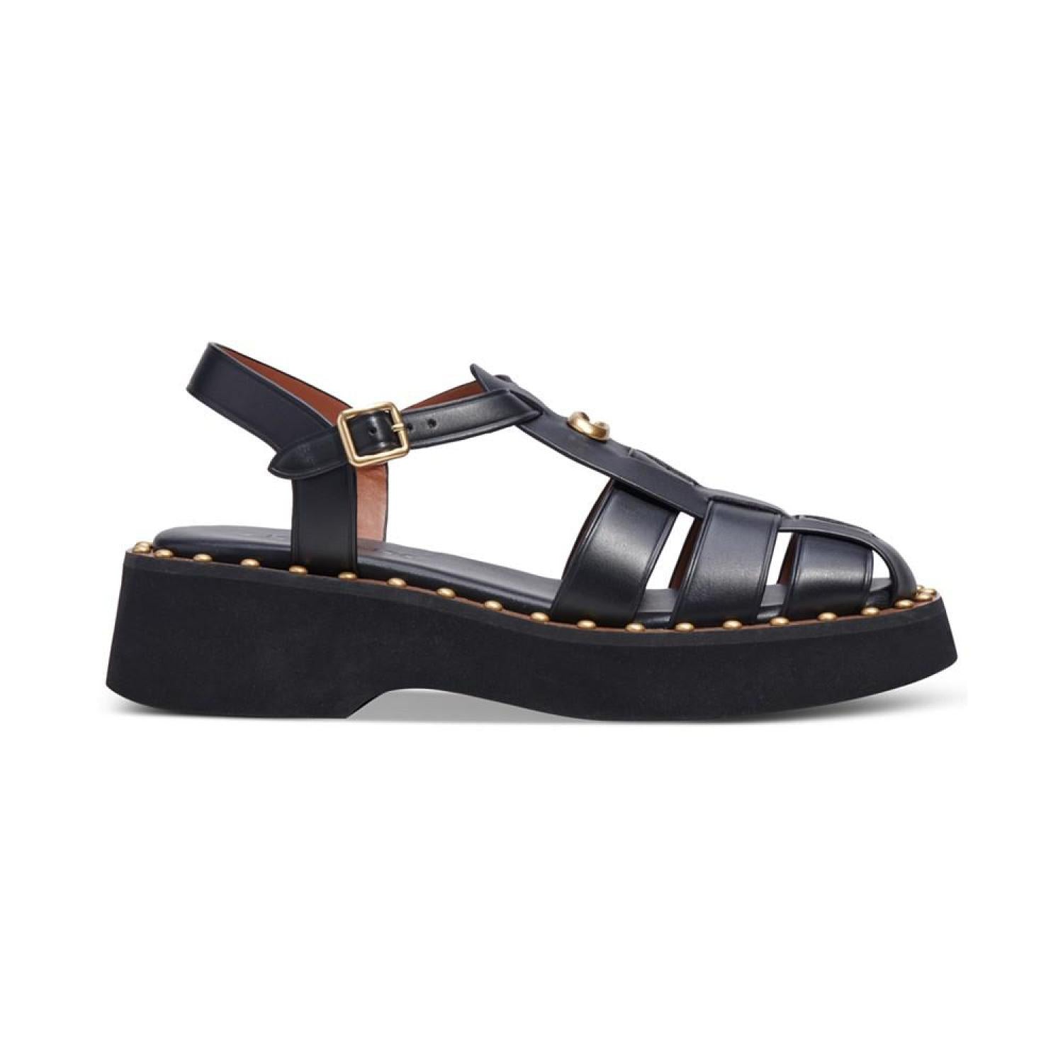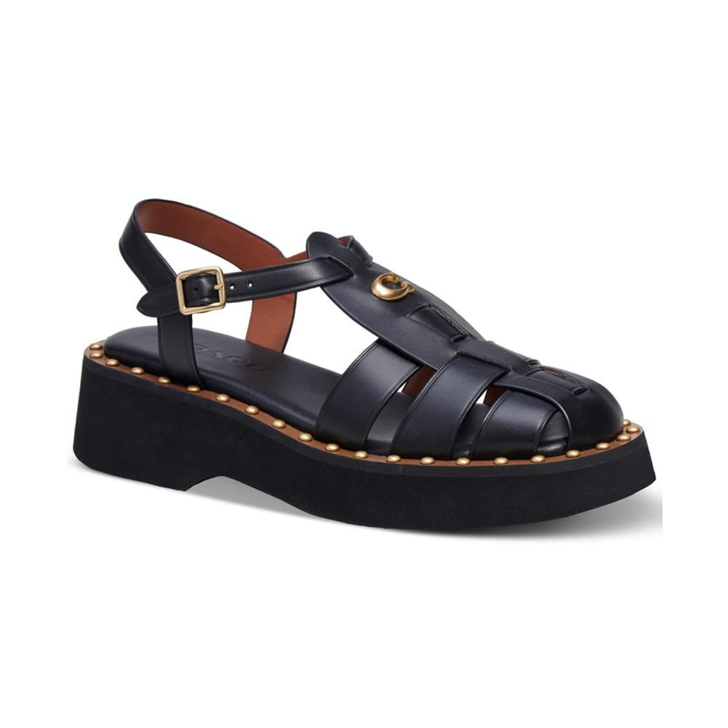 Gold-tone studs at the welt bring updated flash to a classic fisherman look in the strappy Vivienne sandals by COACH.