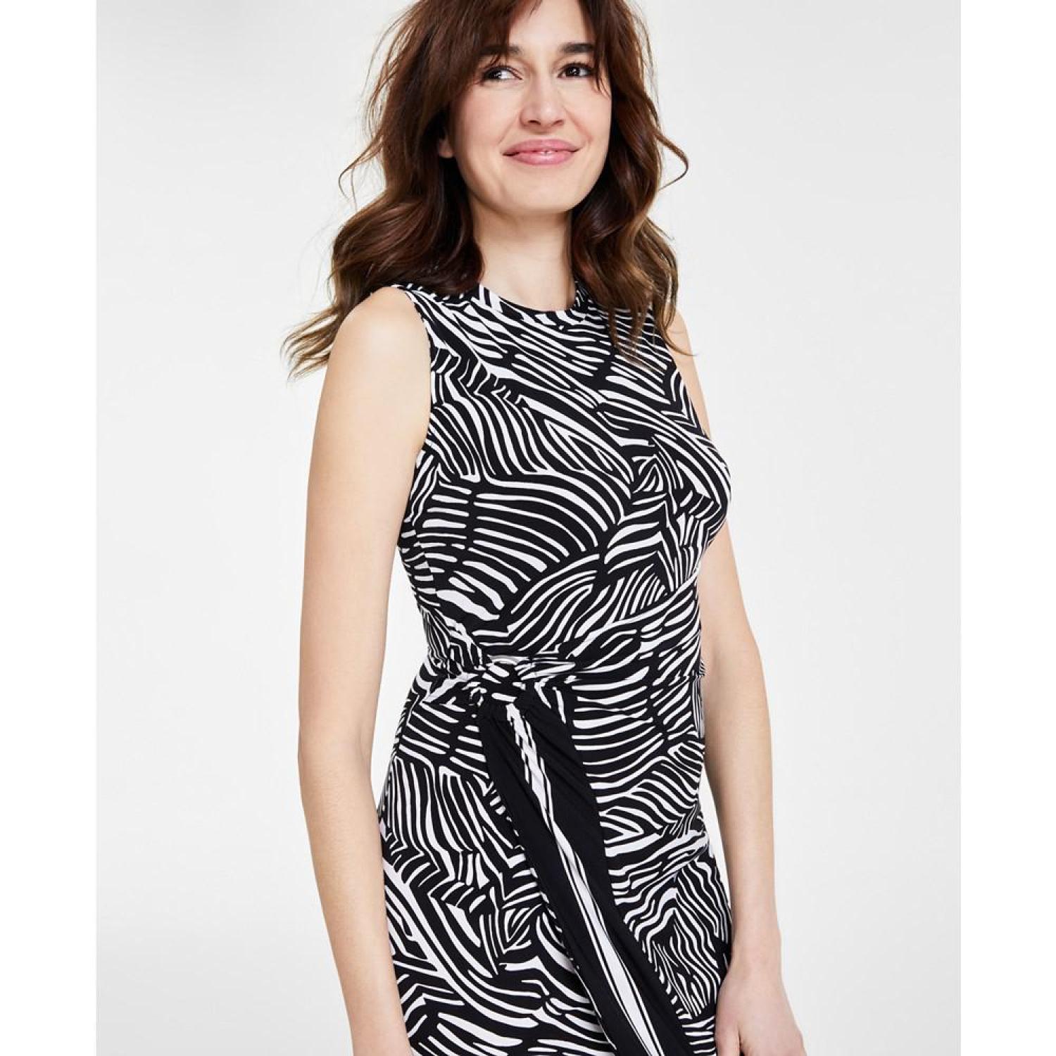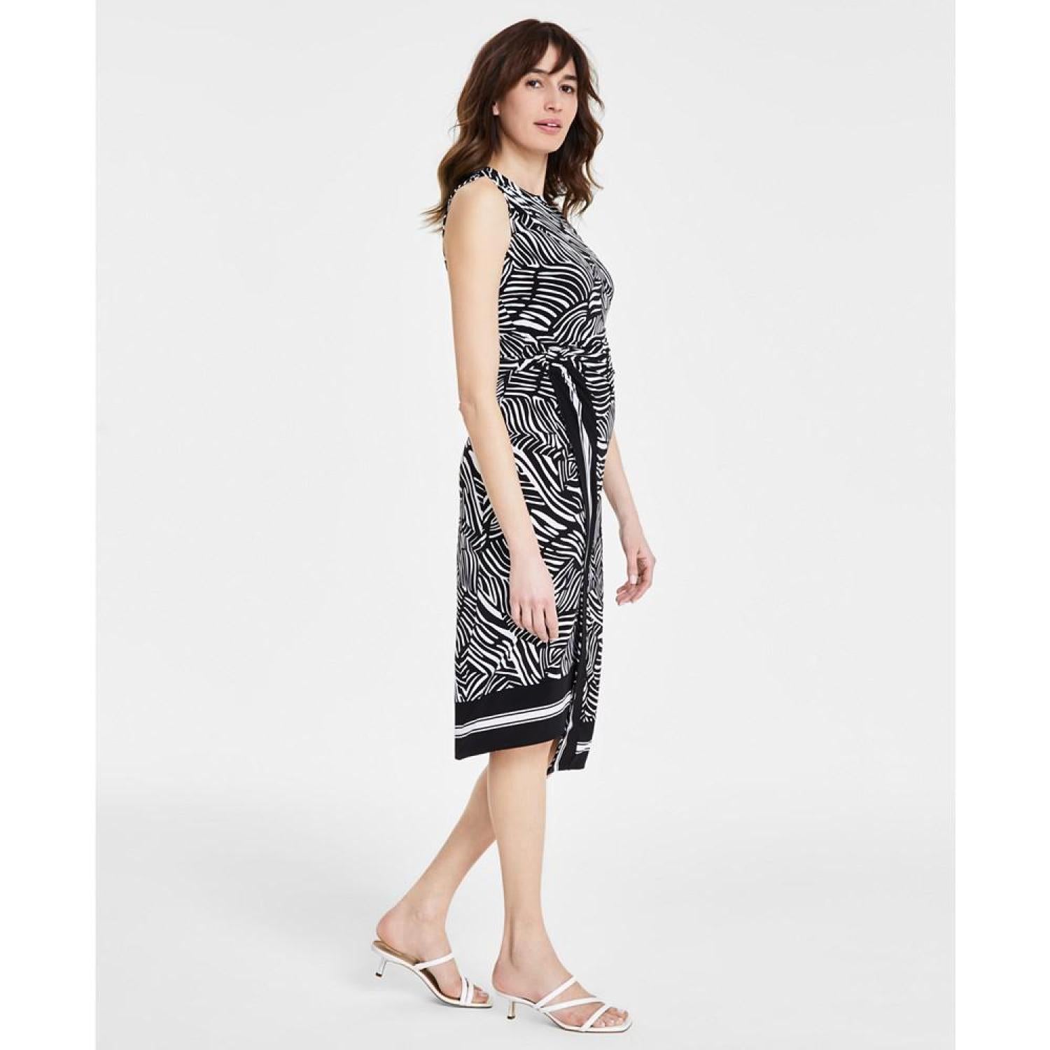 Women's Zebra-Print Faux Wrap Midi Dress, Regular & Petite