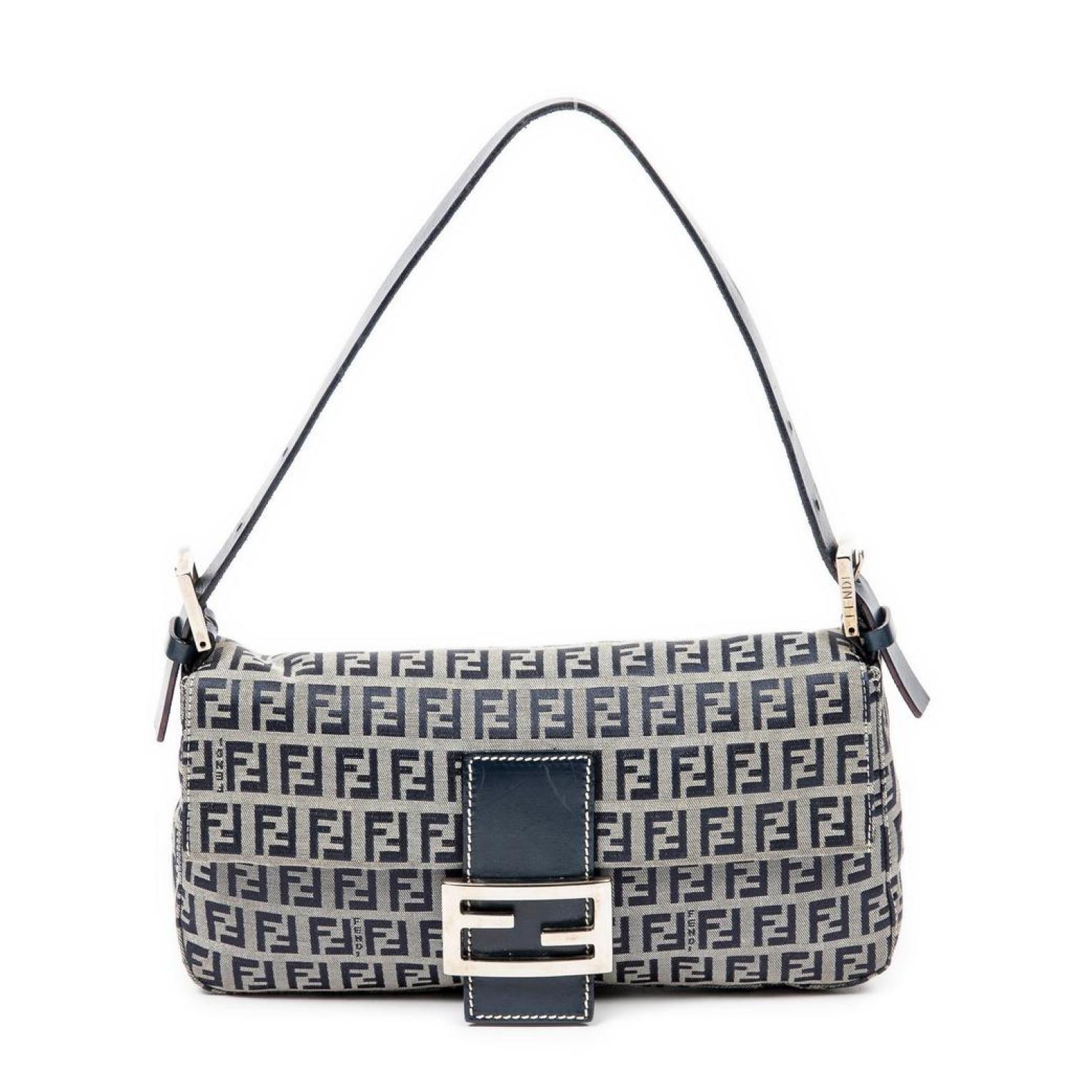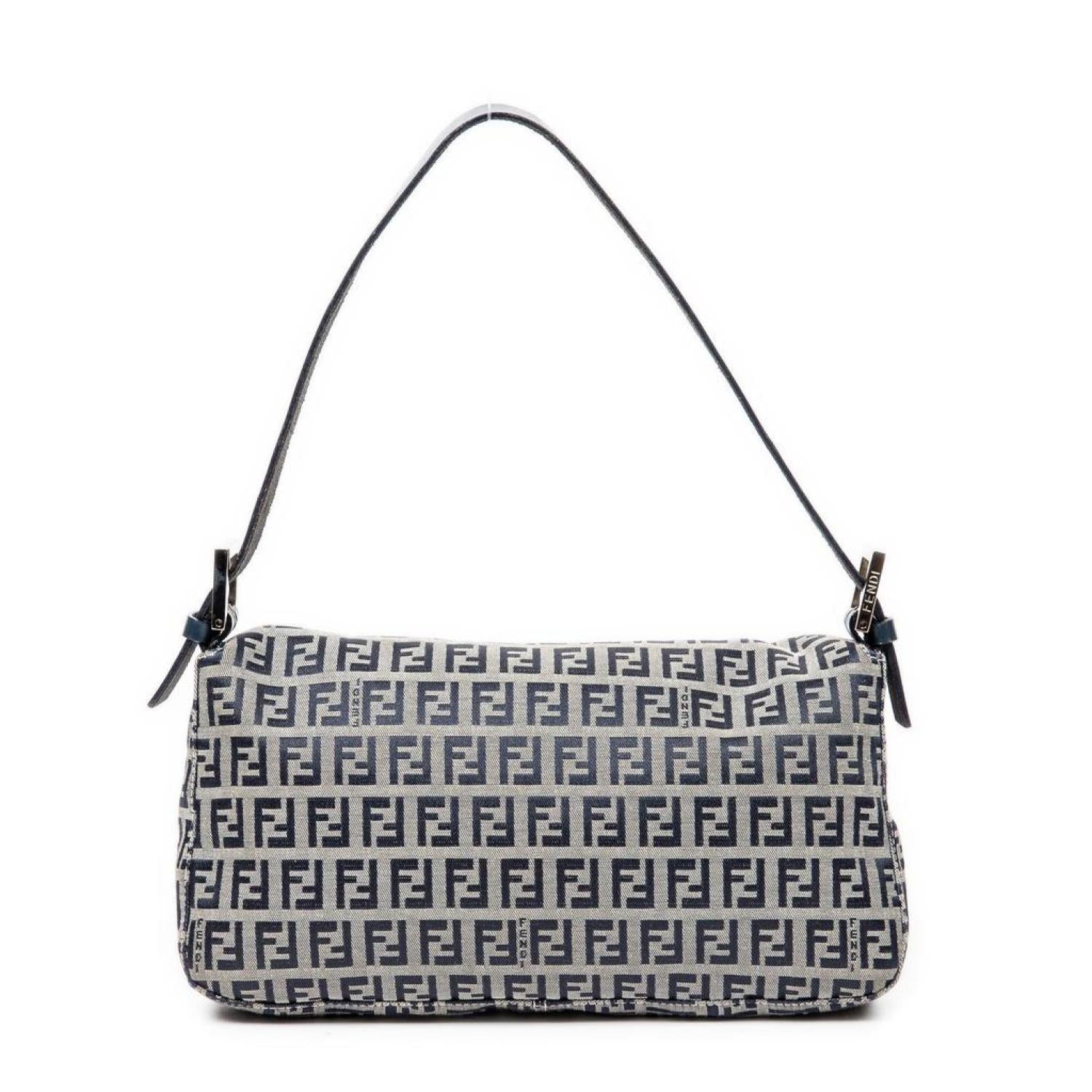 • Fendi Shoulder Bag in Beige/Navy Zucchino Canvas and Silver hardware. Dimensions - "25,5*14*4cm". Serial number - 2305-26424-018. Inclusions - None.