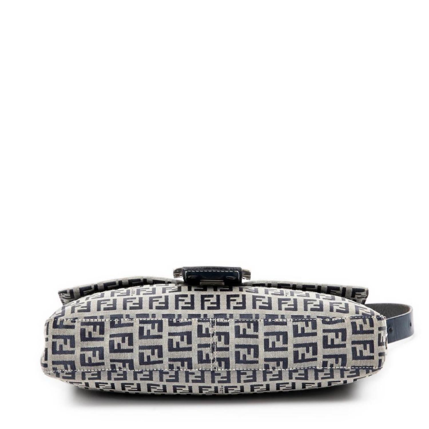 Fendi Shoulder Bag in Beige/Navy Zucchino Canvas and Silver hardware. Dimensions - "25,5*14*4cm". Serial number - 2305-26424-018. Inclusions - None.