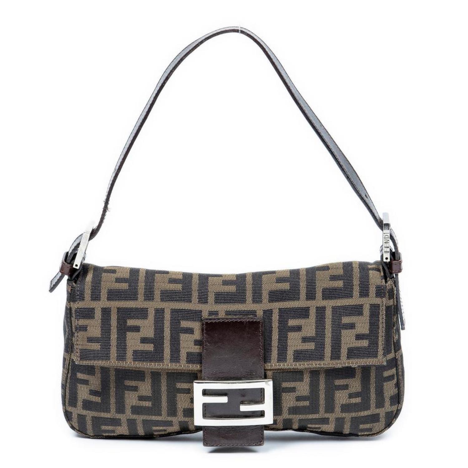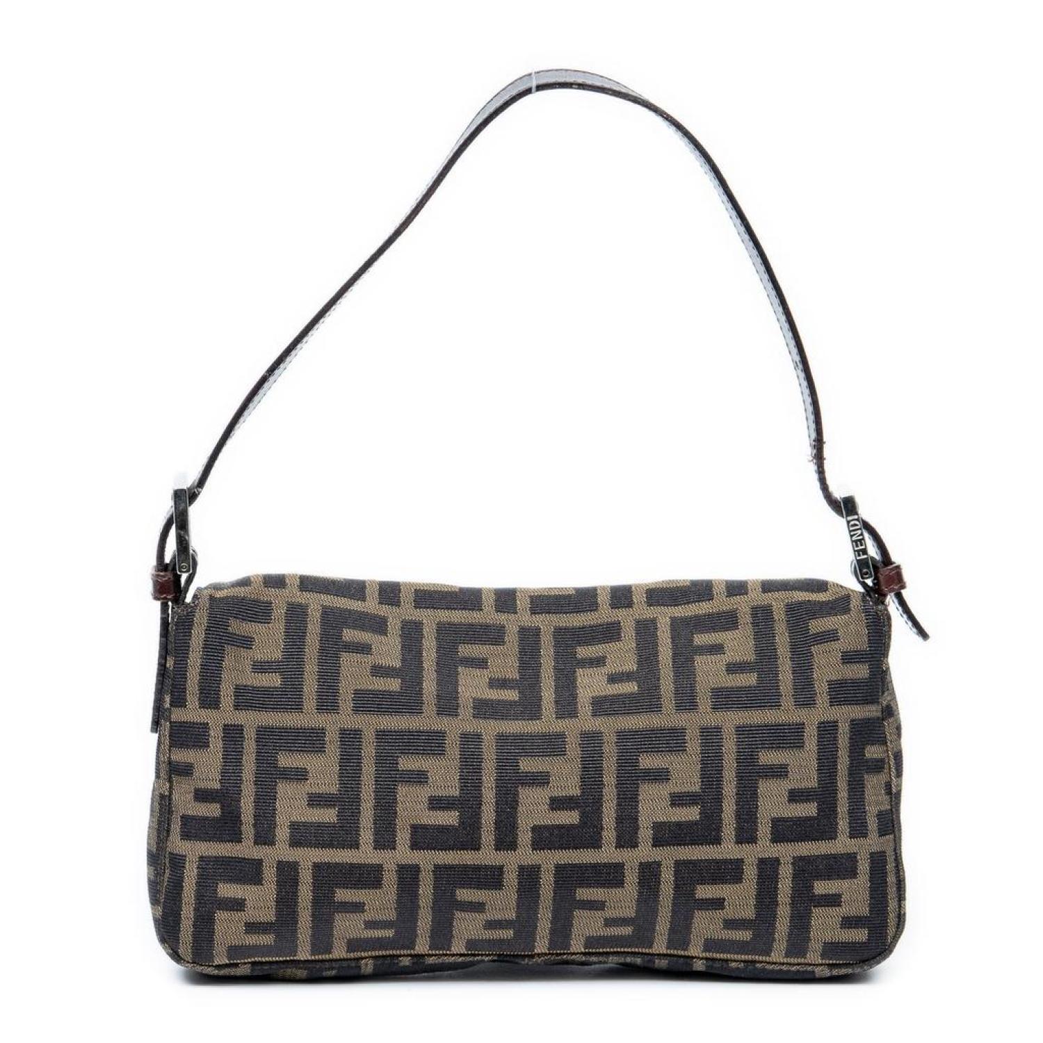 • Fendi Shoulder Bag in Khaki Green/Dark Brown Zucca Canvas and Silver hardware. Dimensions - 24*12*2cm. Serial number - 2241-26424-008. Inclusions - Dustbag.