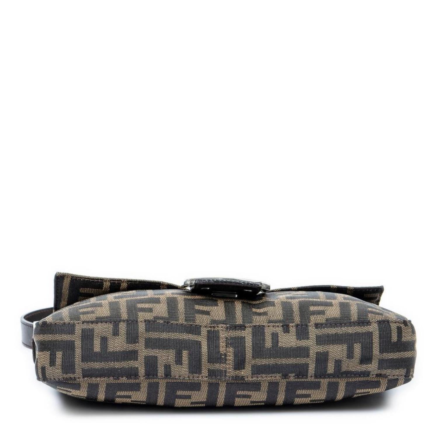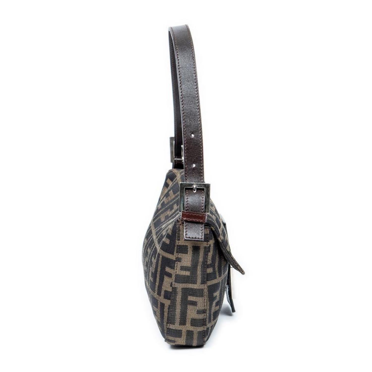 Fendi Shoulder Bag in Khaki Green/Dark Brown Zucca Canvas and Silver hardware. Dimensions - 24*12*2cm. Serial number - 2241-26424-008. Inclusions - Dustbag.