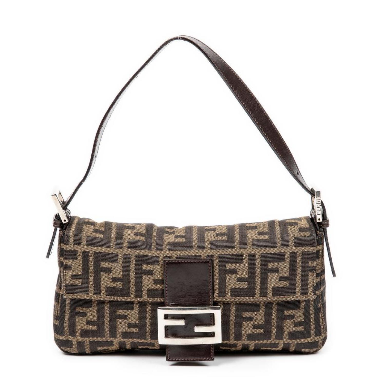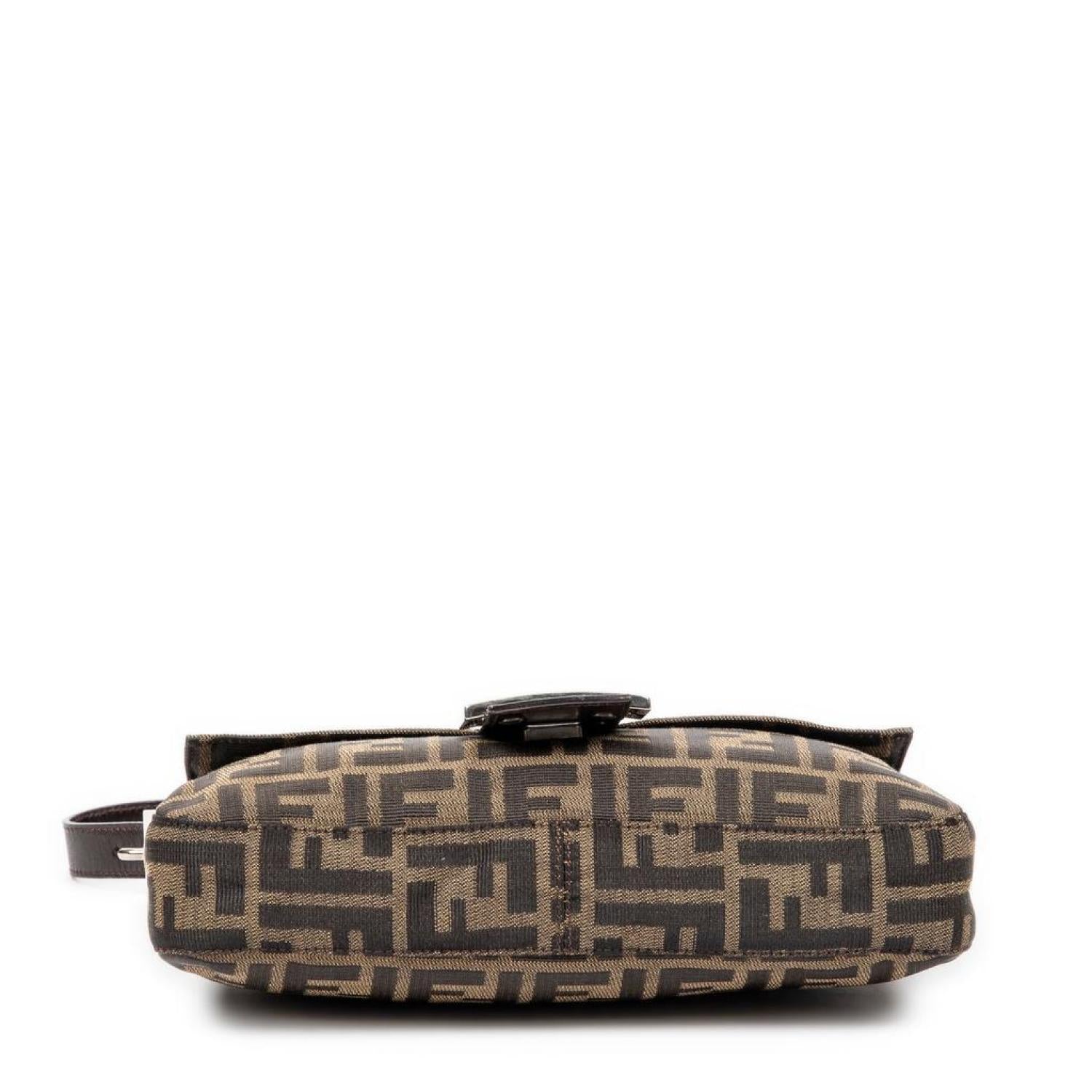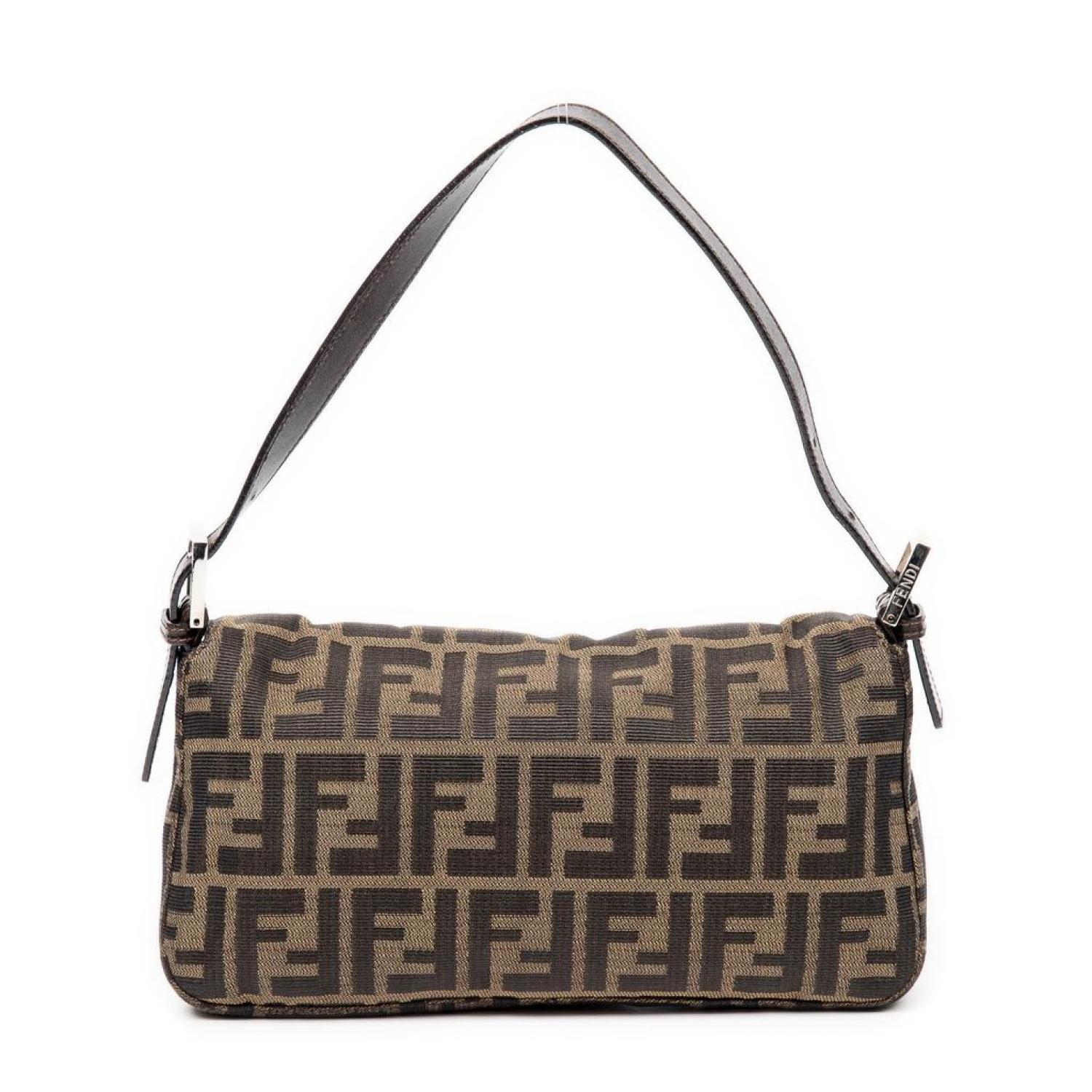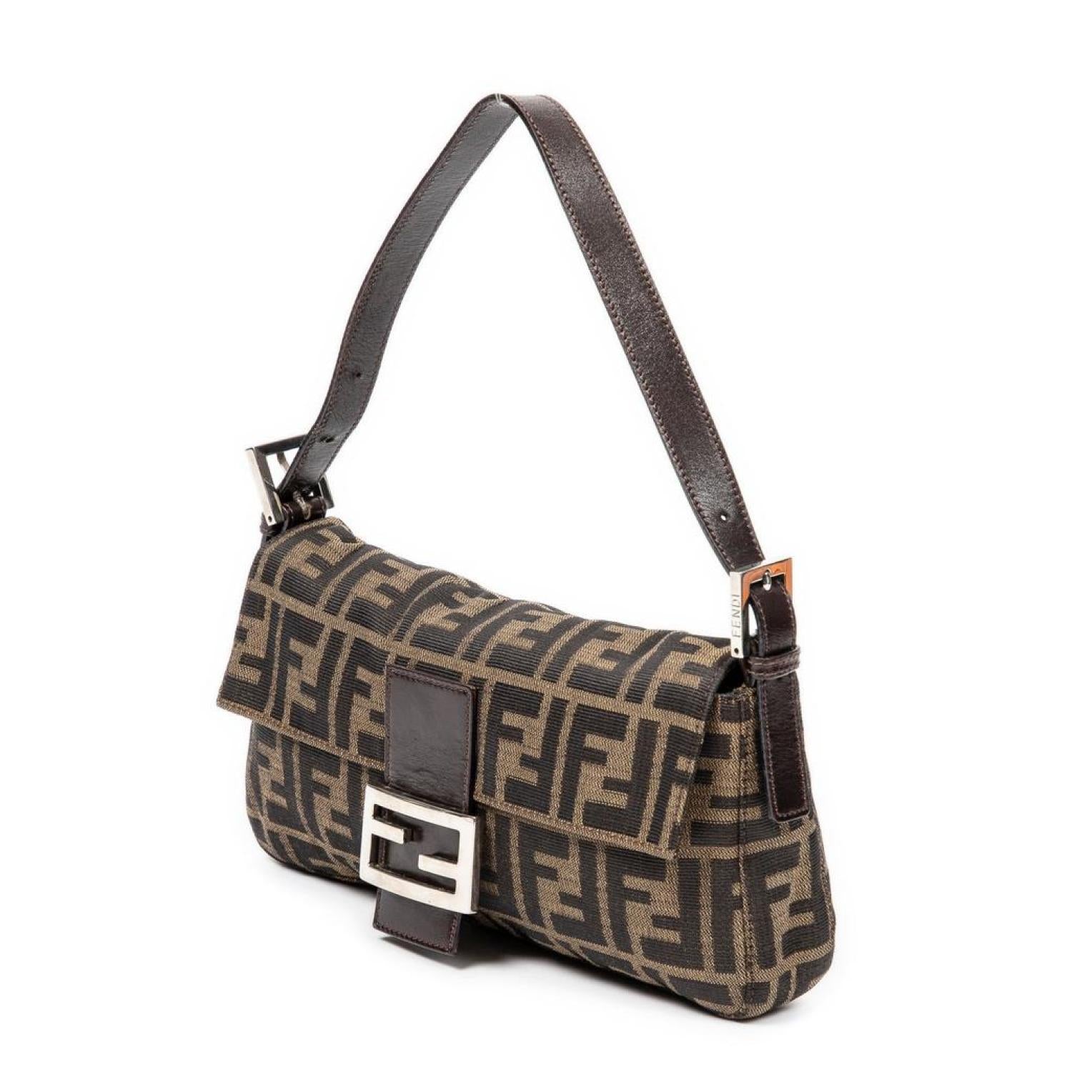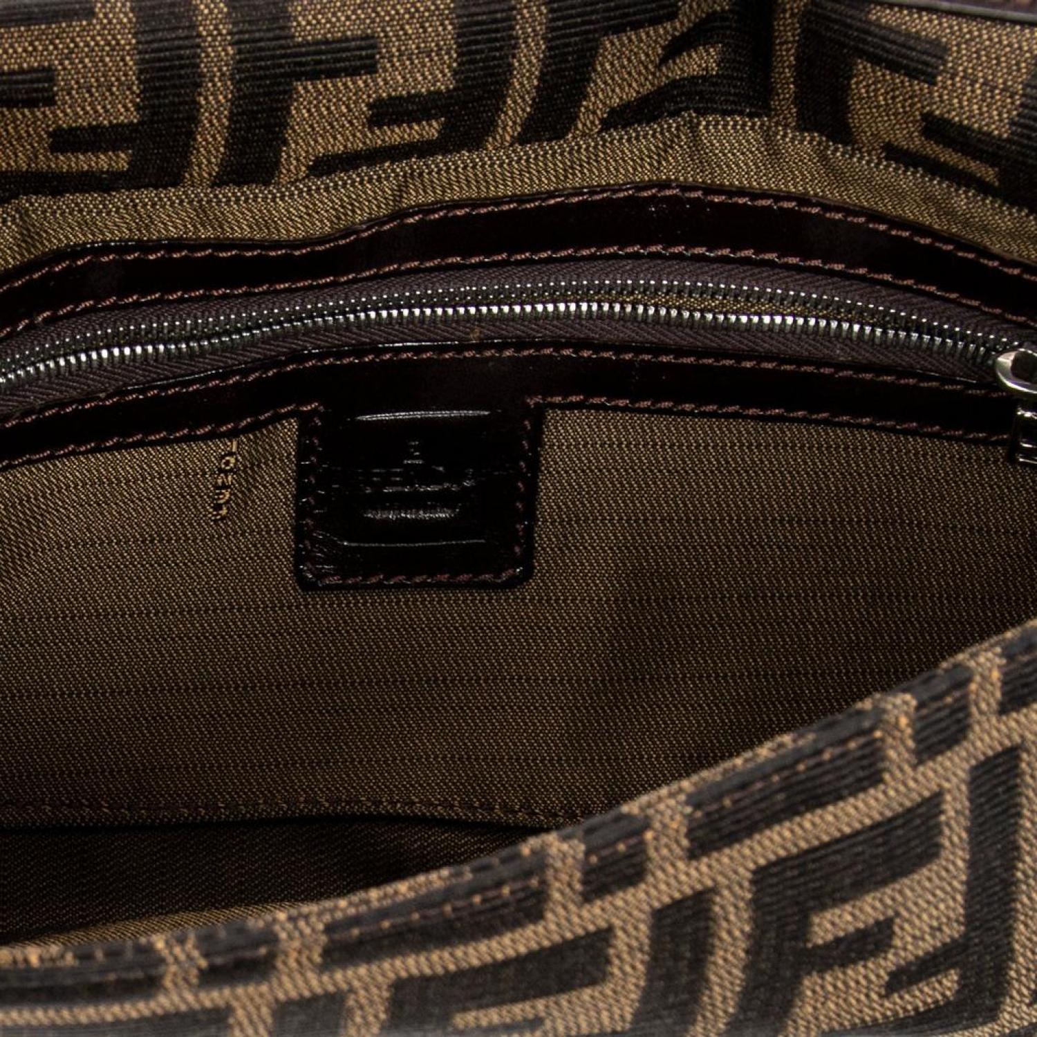 Fendi Shoulder Bag in Brown/Black Zucca Canvas and Silver hardware. Dimensions - "25,5*14*4cm". Serial number - 2145-26424-098. Inclusions - None.