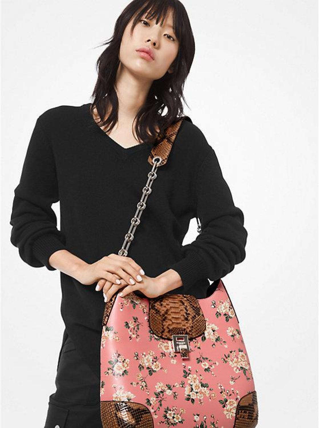 Bancroft Oversized Floral Calf Leather and Python Shoulder Bag