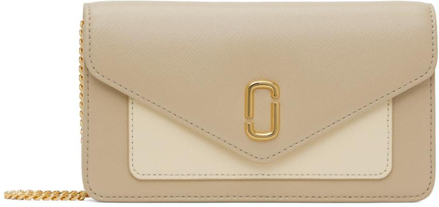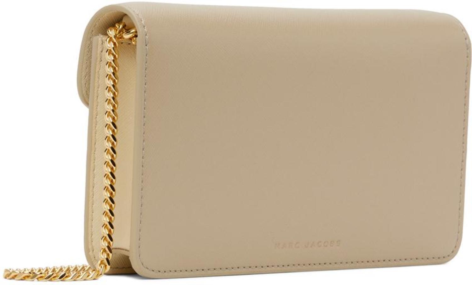 Marc Jacobs Beige 'The Longshot' Bag Saffiano leather shoulder bag in beige. Logo hardware at face. · Detachable curb-chain shoulder strap · Concealed patch pocket at face · Foldover flap · Eight card slots at interior · Twill lining · H4.5 x W8 x D1.25 in Supplier color: Khaki multi Leather. Made in Viet Nam. 232190F048164