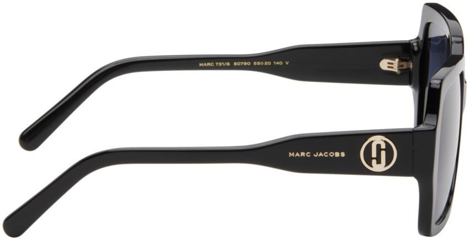 Marc Jacobs Black Square Sunglasses Square acetate-frame sunglasses in black. · Gradient gray lenses · 100% UV protection, Category 3 · Logo etched at lens and temples · Integrated nose pads · Logo hardware at temples · Includes hardside case · Size: 55.20 140 Supplier color: Black Acetate. Made in China. 242190F005007