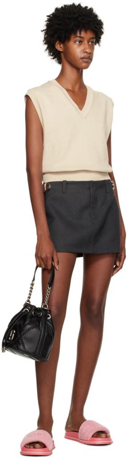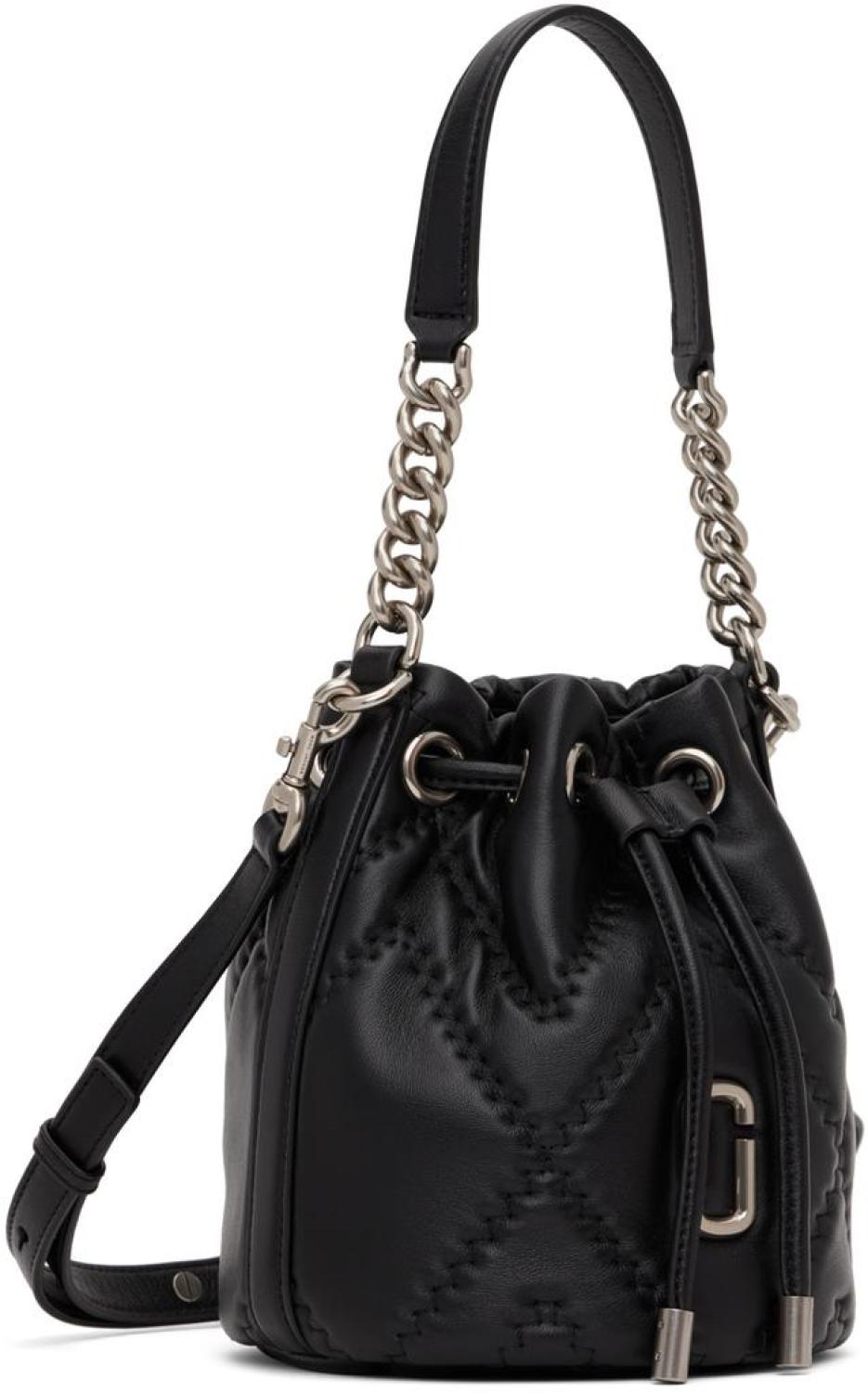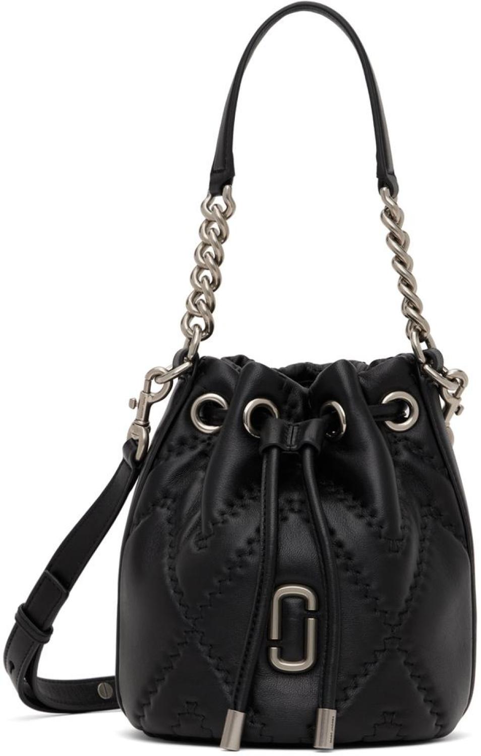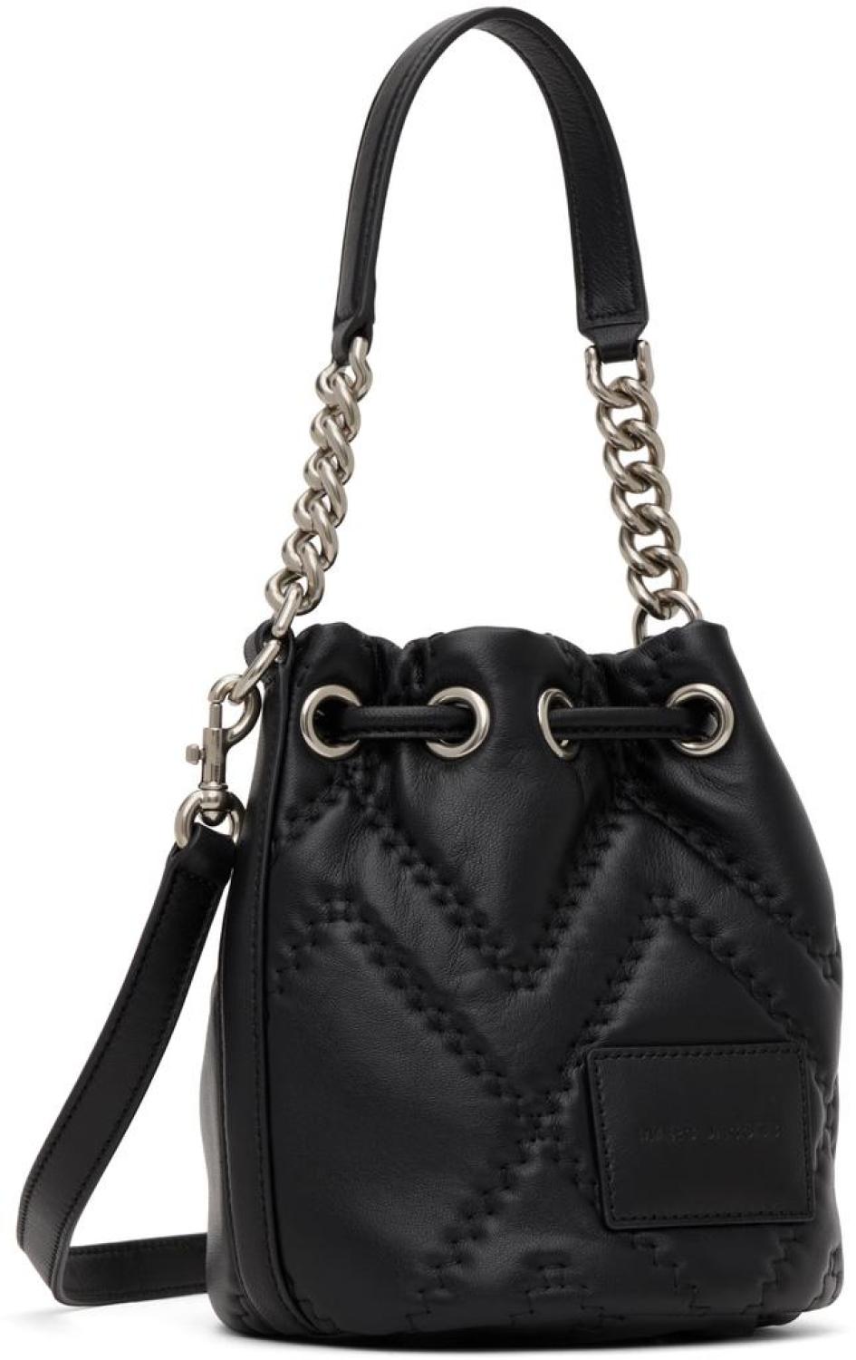 Marc Jacobs Black 'The Bucket' Bag Quilted grained leather shoulder bag in black. Logo hardware at face. · Fixed curb chain carry handle · Detachable and adjustable shoulder strap · Drawstring closure at throat · Card slot at interior · Faille lining · H7.5 x W8 x D6.5 in Supplier color: Black Leather. Made in Viet Nam. 232190F048183