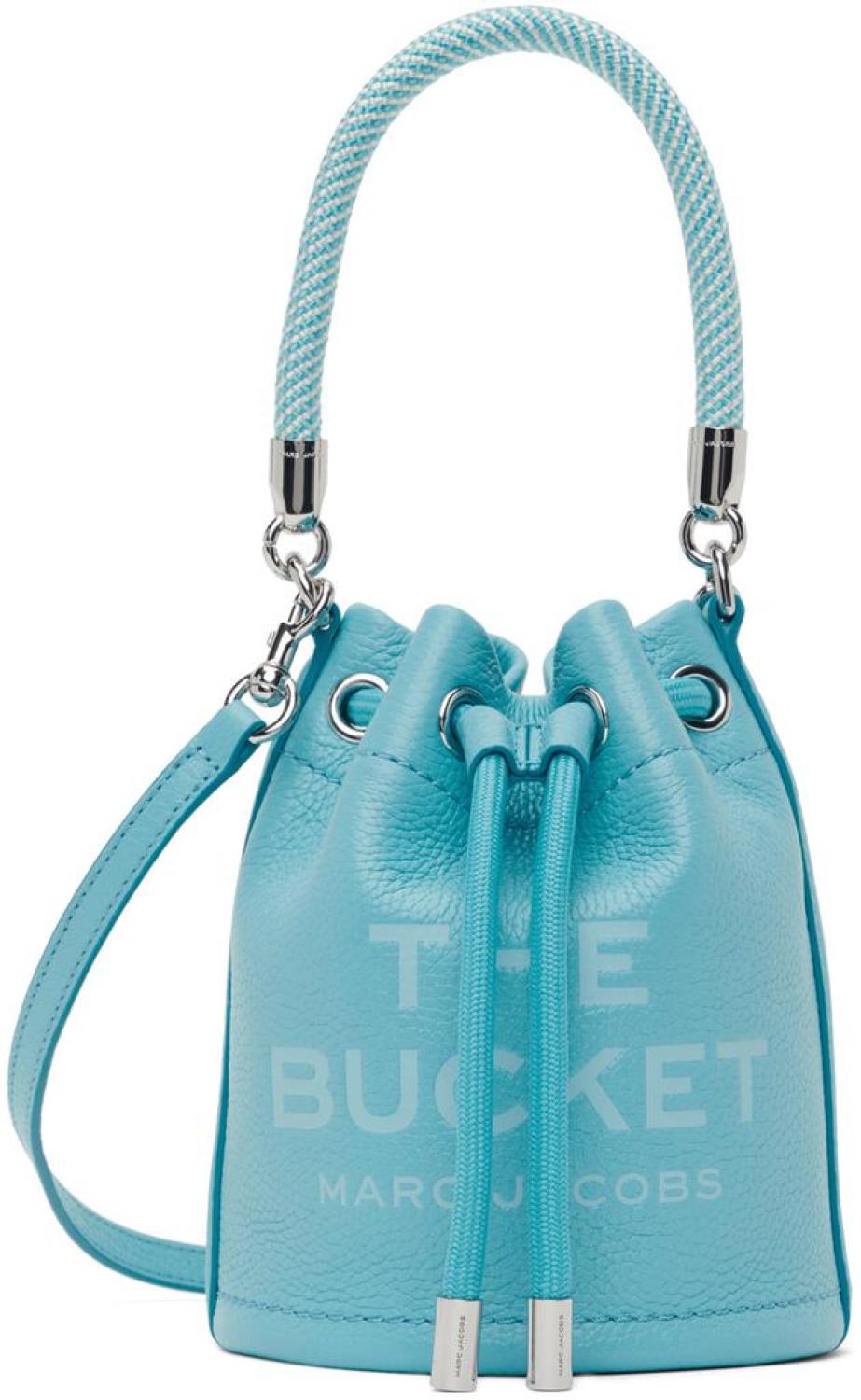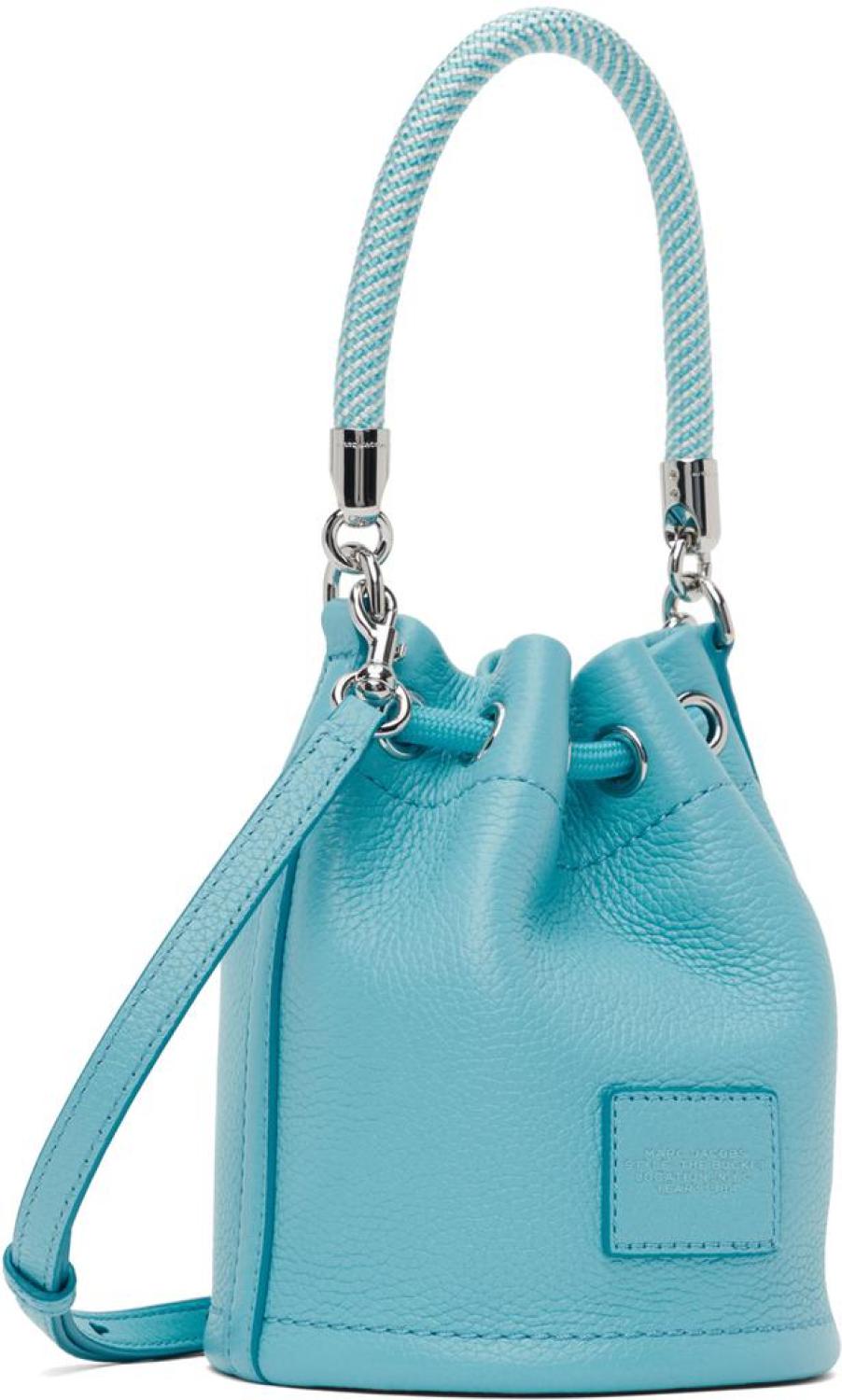 Grained leather shoulder bag in blue. Logo embossed at face.