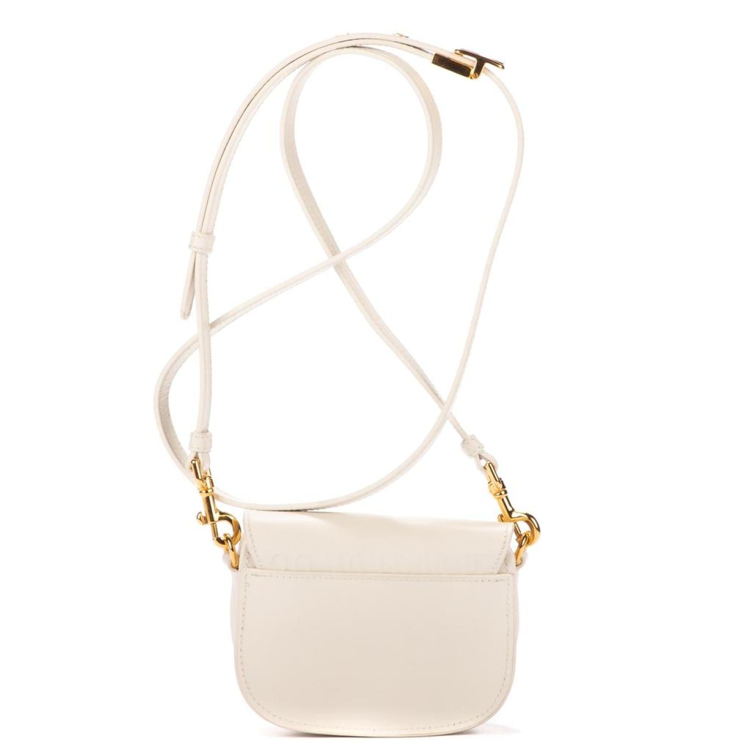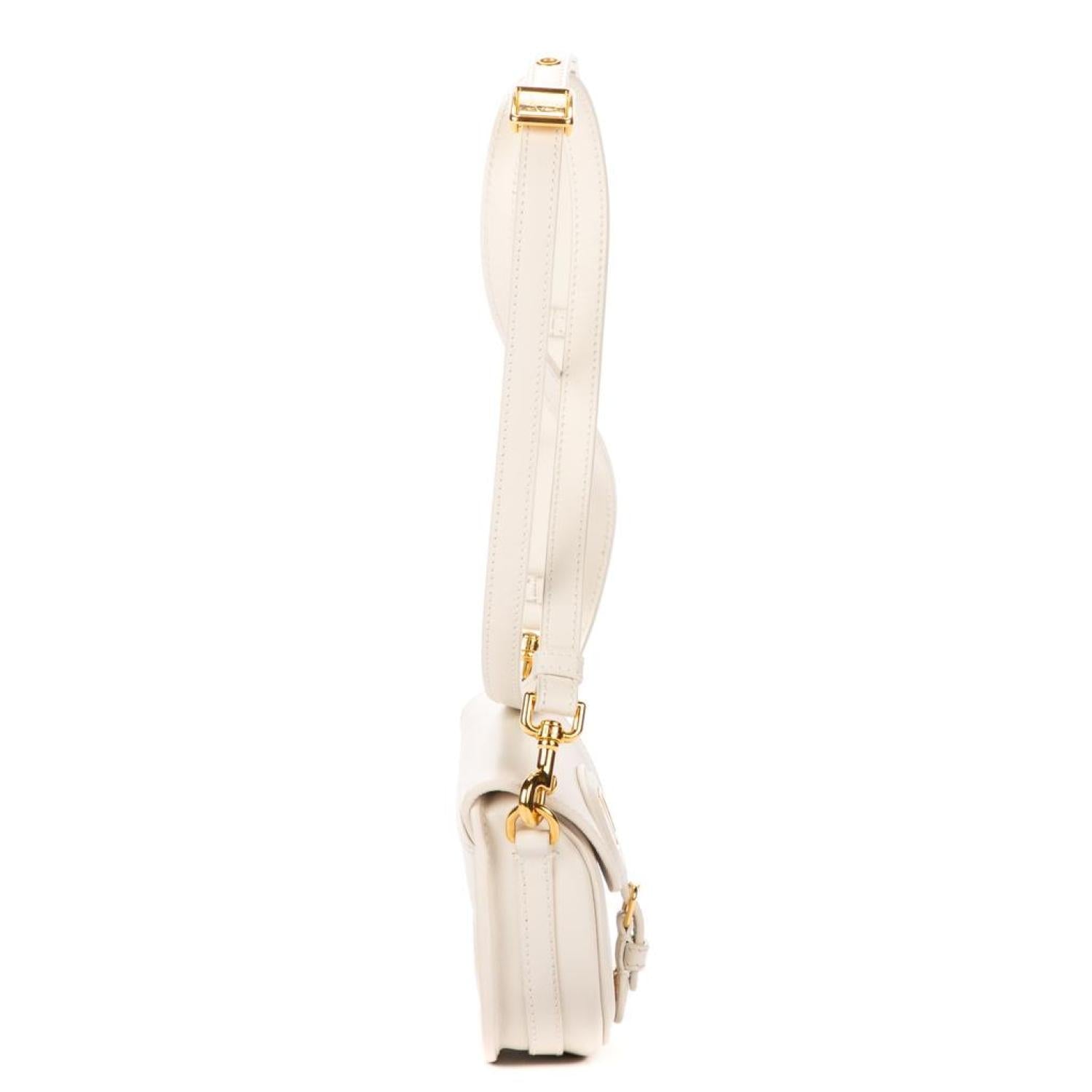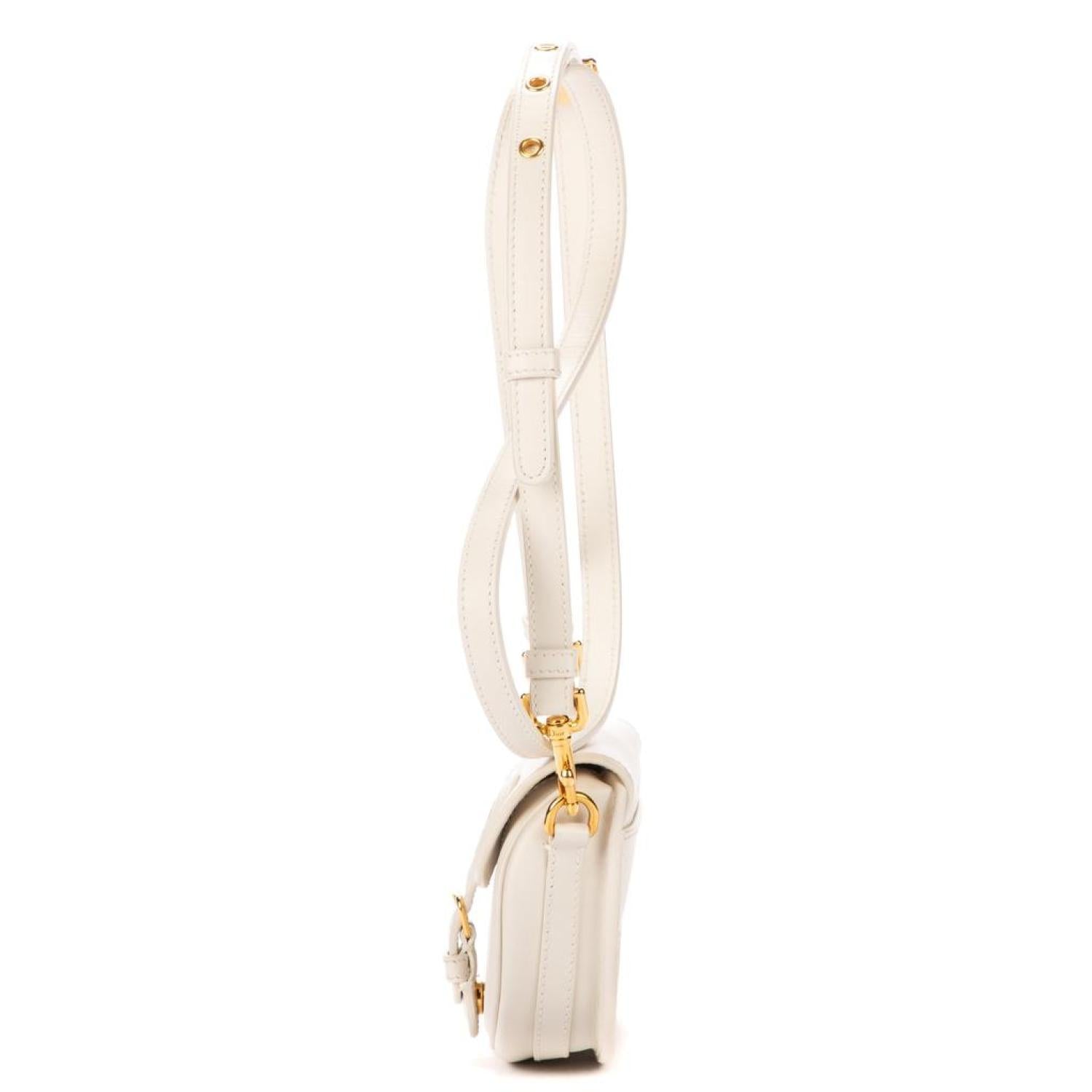 Dior Shoulder bag in White Calfskin leather and Gold hardware. Dimensions - 12*9*4cm. Serial number - 118602. Inclusions - Dustbag.