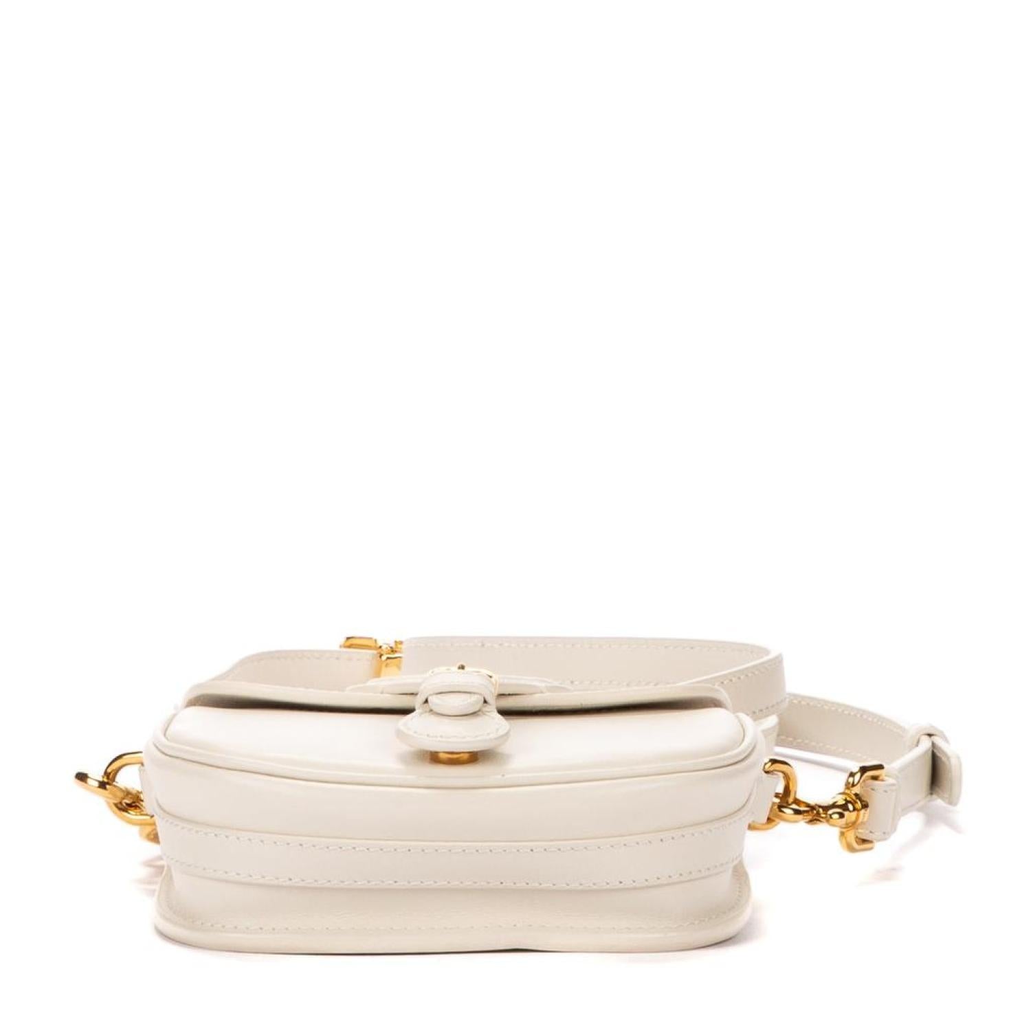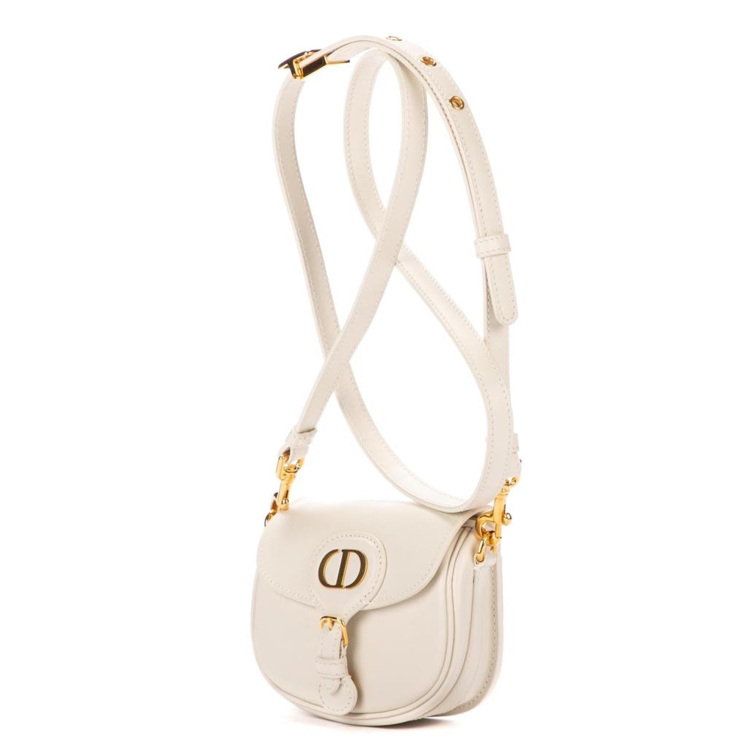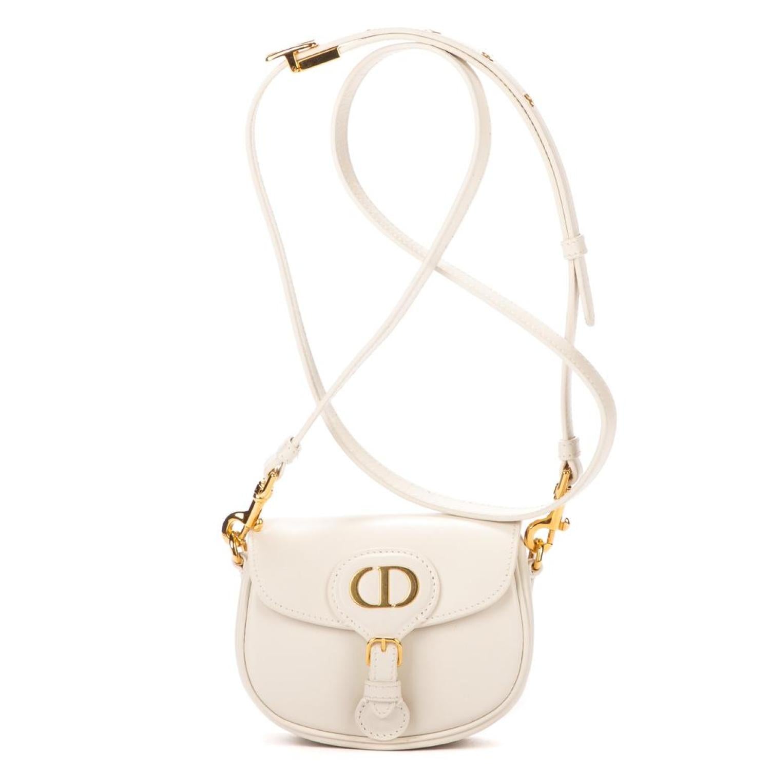 Dior Shoulder bag in White Calfskin leather and Gold hardware. Dimensions - 12*9*4cm. Serial number - 118602. Inclusions - Dustbag.