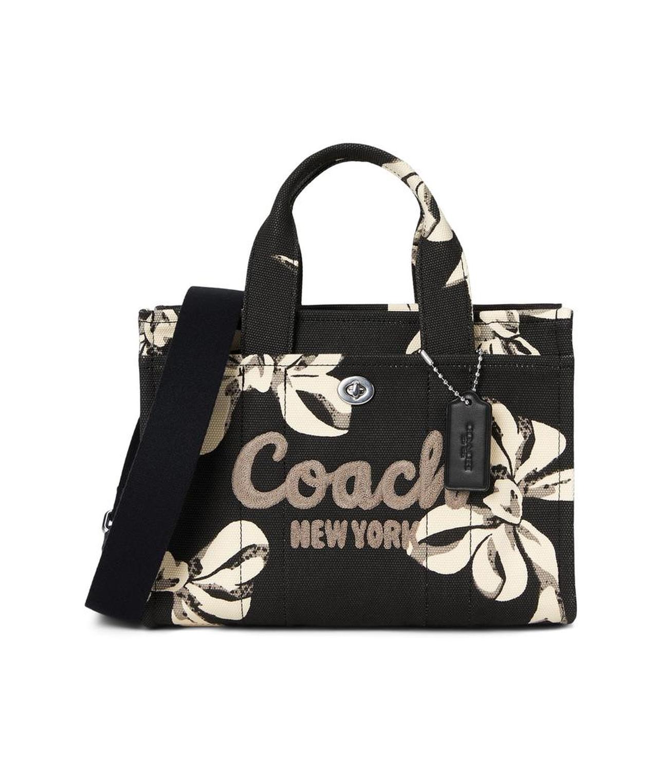 The COACH™ Cargo Tote Bag 26 with Bow Print is perfect for the fashion-forward individual on the go. Made with signature coated canvas, this stylish tote features a zippered top closure, dual top grab handles, and a detachable strap for versatile wear. Plus, keep your essentials within easy reach with the exterior turn lock pocket on the front.