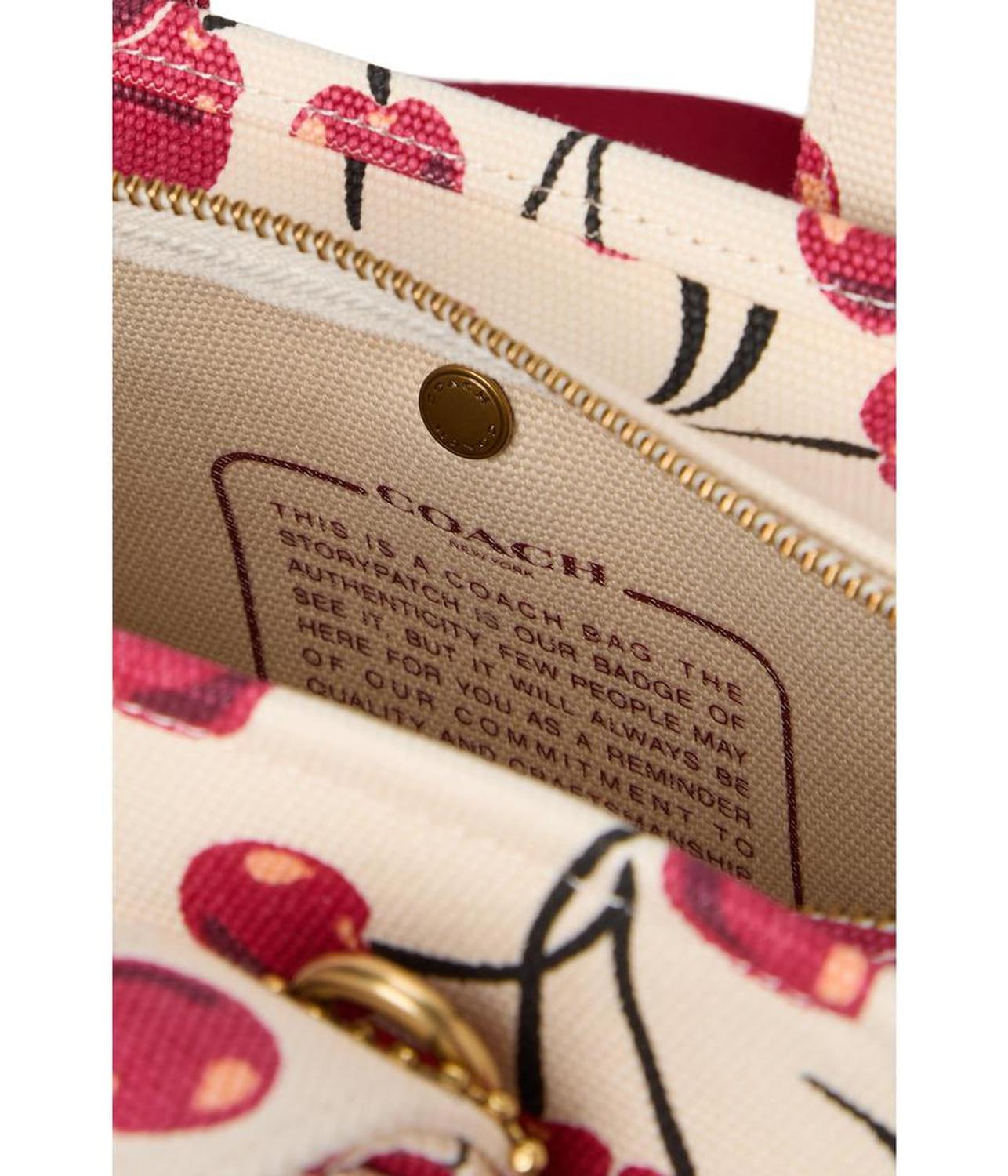 Add an exquisite touch to your everyday fashion carrying the COACH™ Cargo Tote Bag 26 with Cherry Print. Crafted with canvas material, the tote bag features two top grab handles and a detachable strap for effortless shoulder or crossbody wear. The bag is also designed with a zip-top closure, outside turn-lock & snap pockets, and can easily fit an iPad. The signature branding on the front gives the bag a touch of authenticity and the allover cherry print elevates the style.