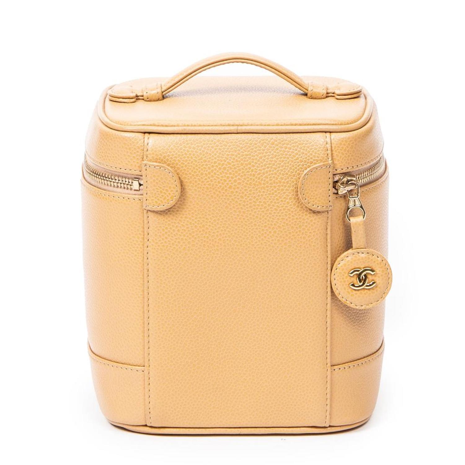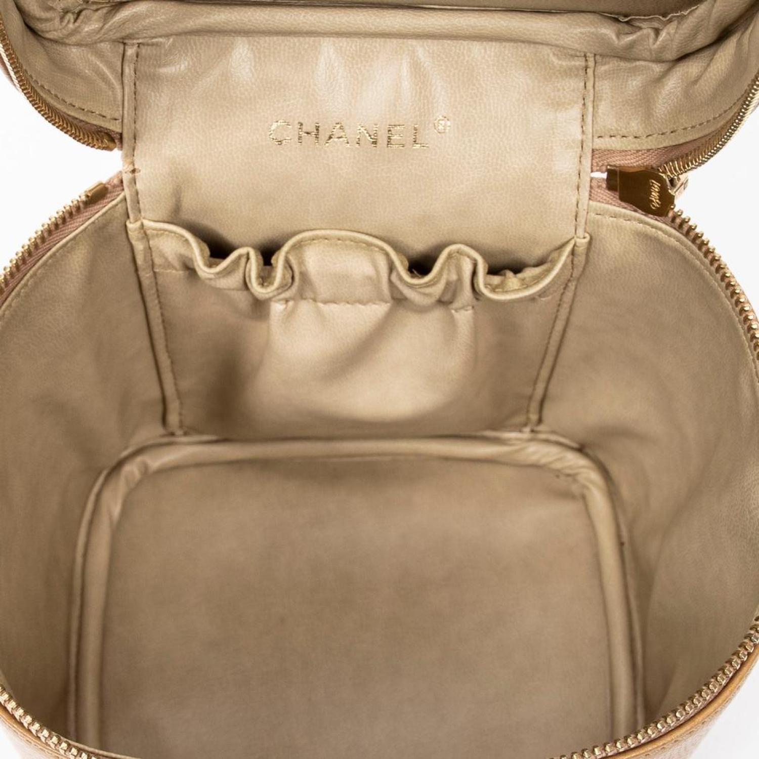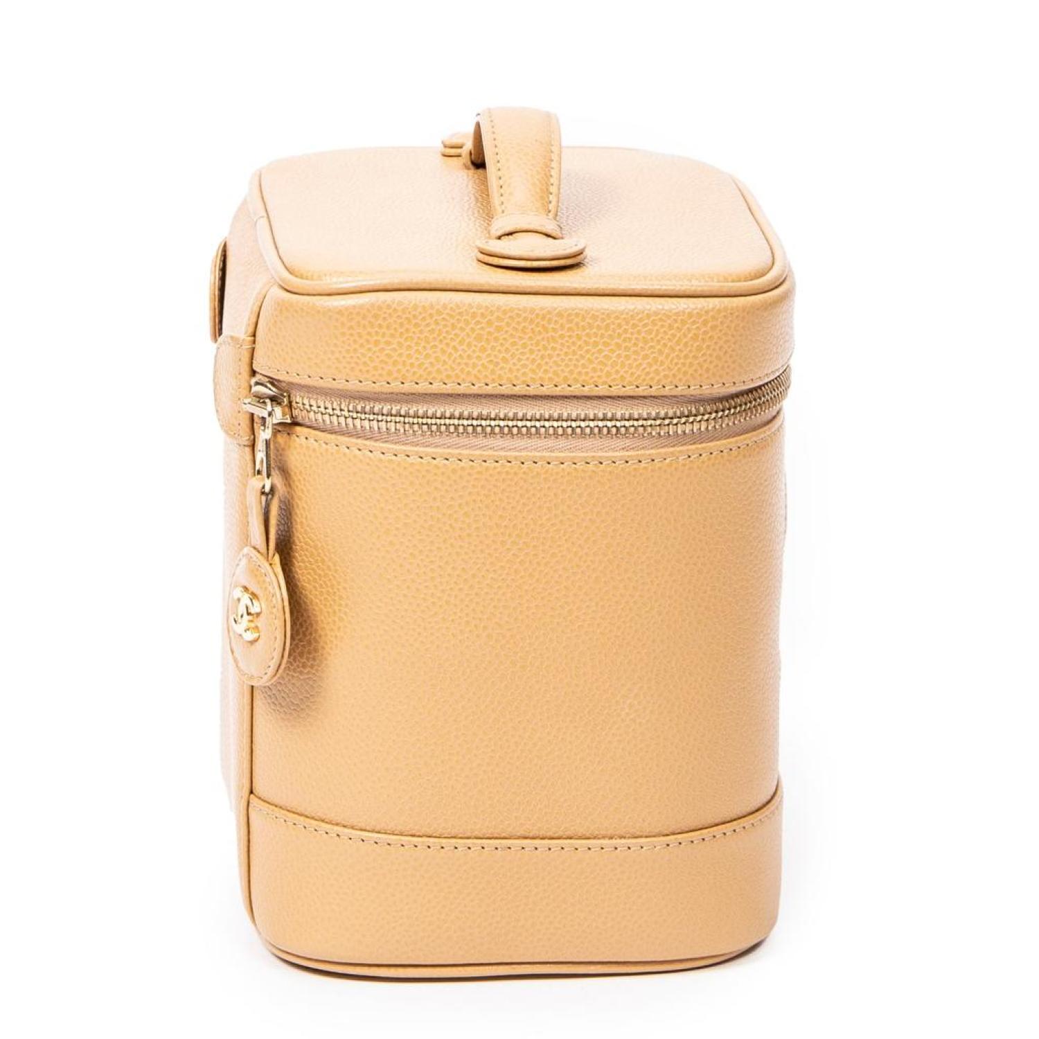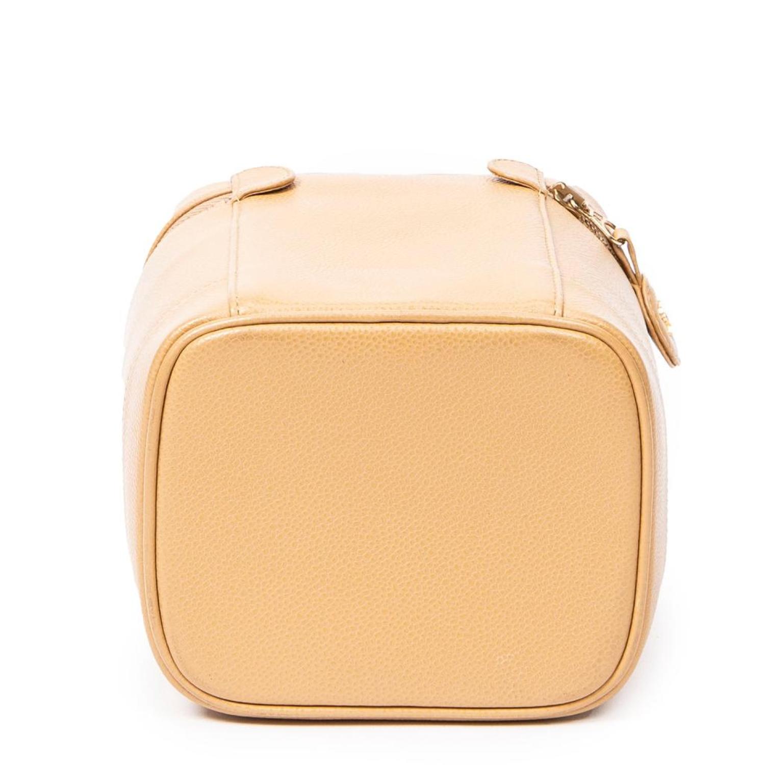 Chanel Handbag in Beige Caviar Leather and Gold hardware. Dimensions - 15*18*12cm. Serial number - 8446724 (2003-2004). Inclusions - Sticker, Dustbag.