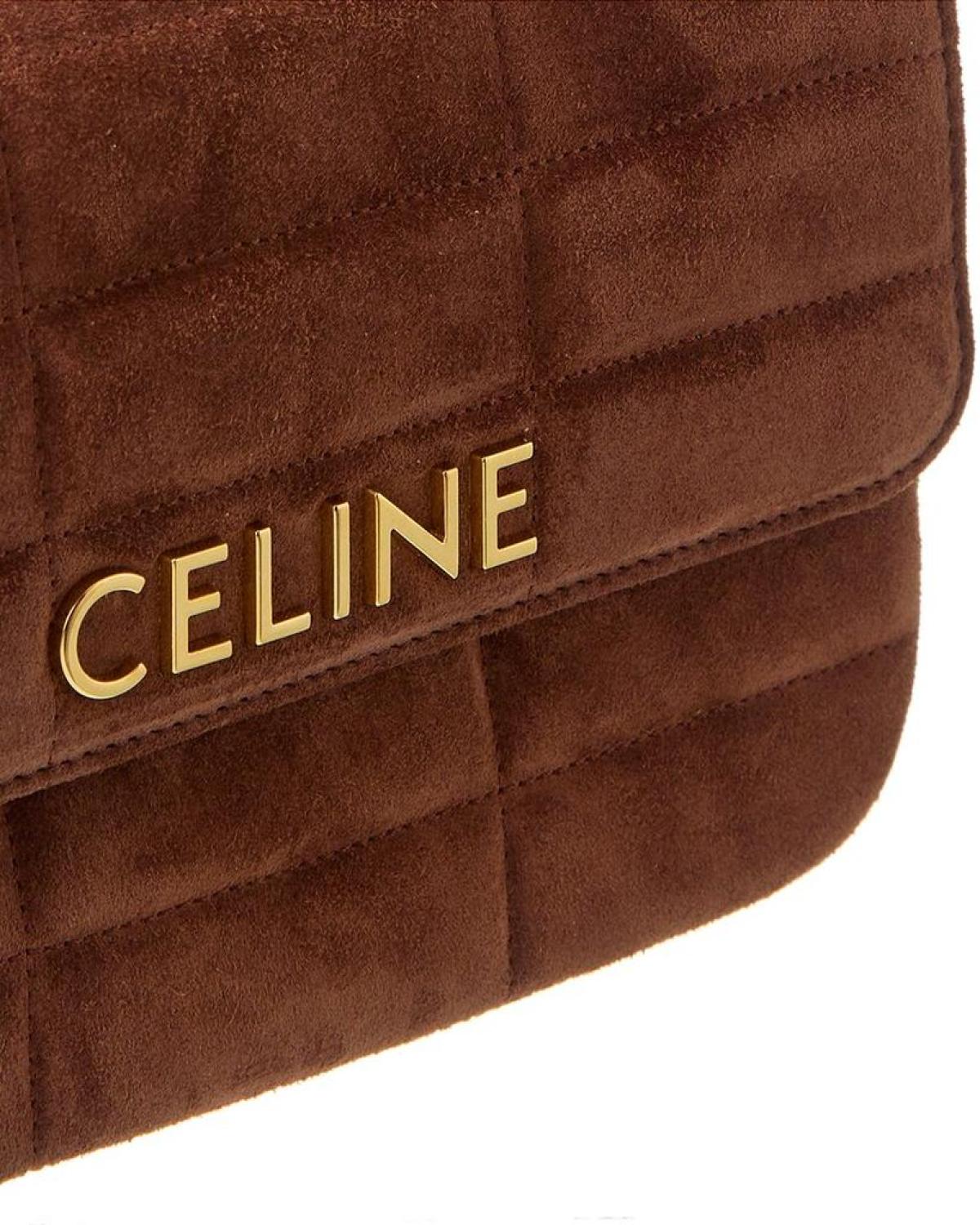 Introducing the CELINE Monochrome Quilted Suede Shoulder Bag, a timeless accessory that embodies classic, coveted Parisian chic. Crafted with meticulous attention to detail in Italy, this handbag showcases exquisite artistry and superior craftsmanship.This shoulder bag features a stunning brown quilted suede exterior, complemented by gold-tone hardware adorned with the iconic CELINE logo lettering. The chain strap adds a touch of elegance, making it a versatile accessory that effortlessly transitions from day to night.Inside, you'll find a luxurious leather lining and an interior pocket, offering ample space to keep your essentials organized. The bag measures 7 inches wide, 7 inches high, and 1 inch deep, providing just the right amount of room without compromising its sleek silhouette.Thanks to the removable shoulder strap, you have the choice to wear it as a shoulder bag or transform it into a clutch for a more formal occasion. The fold-over flap with a magnetic closure ensures both convenience and security.Please note that all measurements were taken by hand and are approximate. As each bag is handcrafted, slight variations may occur, adding a unique touch to your piece.Rest assured, our products are 100% genuine. While we occasionally purchase merchandise from trusted independent suppliers, we guarantee the authenticity of every product sold on our site. Elevate your style with the CELINE Monochrome Quilted Suede Shoulder Bag and experience the epitome of Parisian luxury.