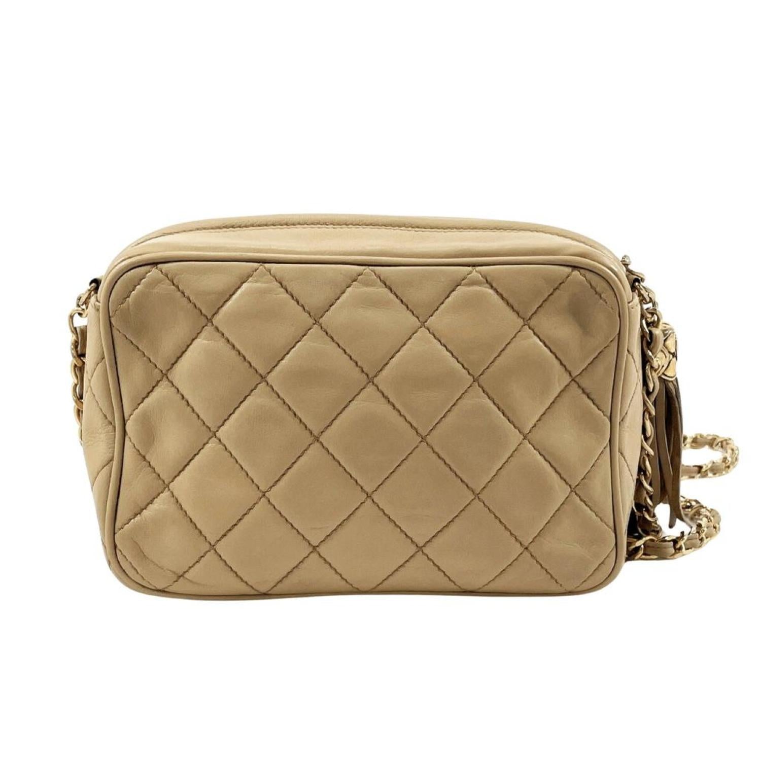 Brand - ChanelModel - CameraColor - BeigeMaterial - LeatherInclusions - /Dimensions - 12cm x 17cm x 6.5cmSerial number - 1557627Country of origin - ItalyCondition - AB - good condition.Explore elegance with the Chanel brand bag, a beige leather model that fuses the aesthetics of a camera with the functionality of a handbag. This piece embodies Chanel's signature blend of style and sophistication.The inside of the camera shows light rub marks and a minor stain, while the outside displays a light stain and minor rubbing at the corners.We recommend that you look at all the pictures before making your purchase to ensure that you are satisfied with the condition of the item.