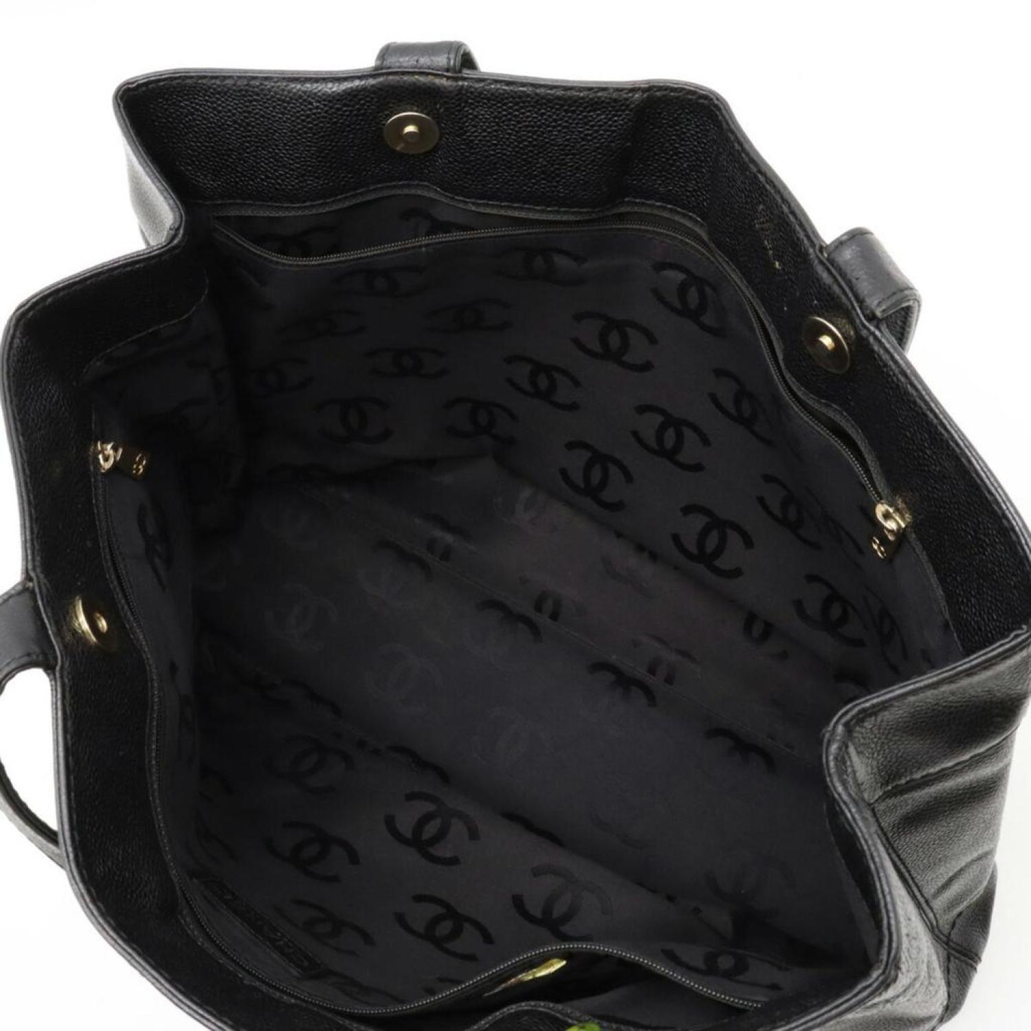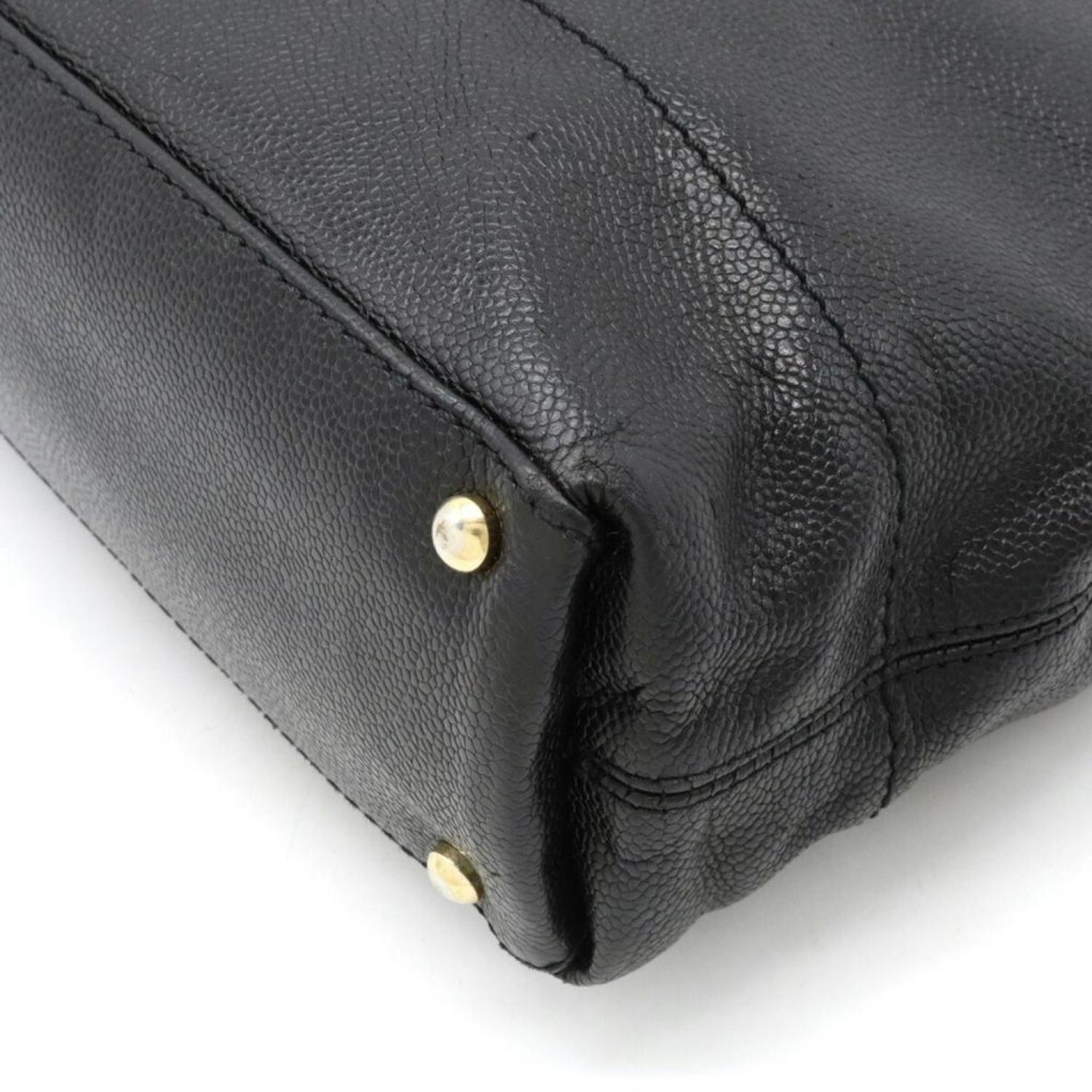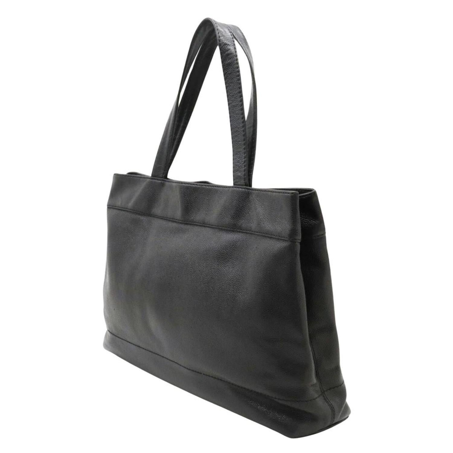 Brand - ChanelModel - CcColor - BlackMaterial - LeatherInclusions - /Dimensions - 29cm x 40cm x 10cmSerial number - NACountry of origin - FranceCondition - AB - good condition.This is a Chanel bag from the "CC Caviar Skin" line, known for its luxurious and timeless design. It serves as both a shoulder bag and a tote bag, designed exclusively for women. Crafted from exquisite caviar leather, it features a classic black color, representing both sophistication and versatility. Chanel's reputation for exceptional craftsmanship and iconic design elements is evident in this accessory, making it a statement piece of enduring elegance and style for women.Overall, there are only slight traces of use, with some creasing. However, there are notable signs of wear on the base of the strap, where a crack is visible, and on the bottom studs where the coating is peeling off.We recommend that you look at all the photos before making your purchase to ensure that you are satisfied with the condition of the item.