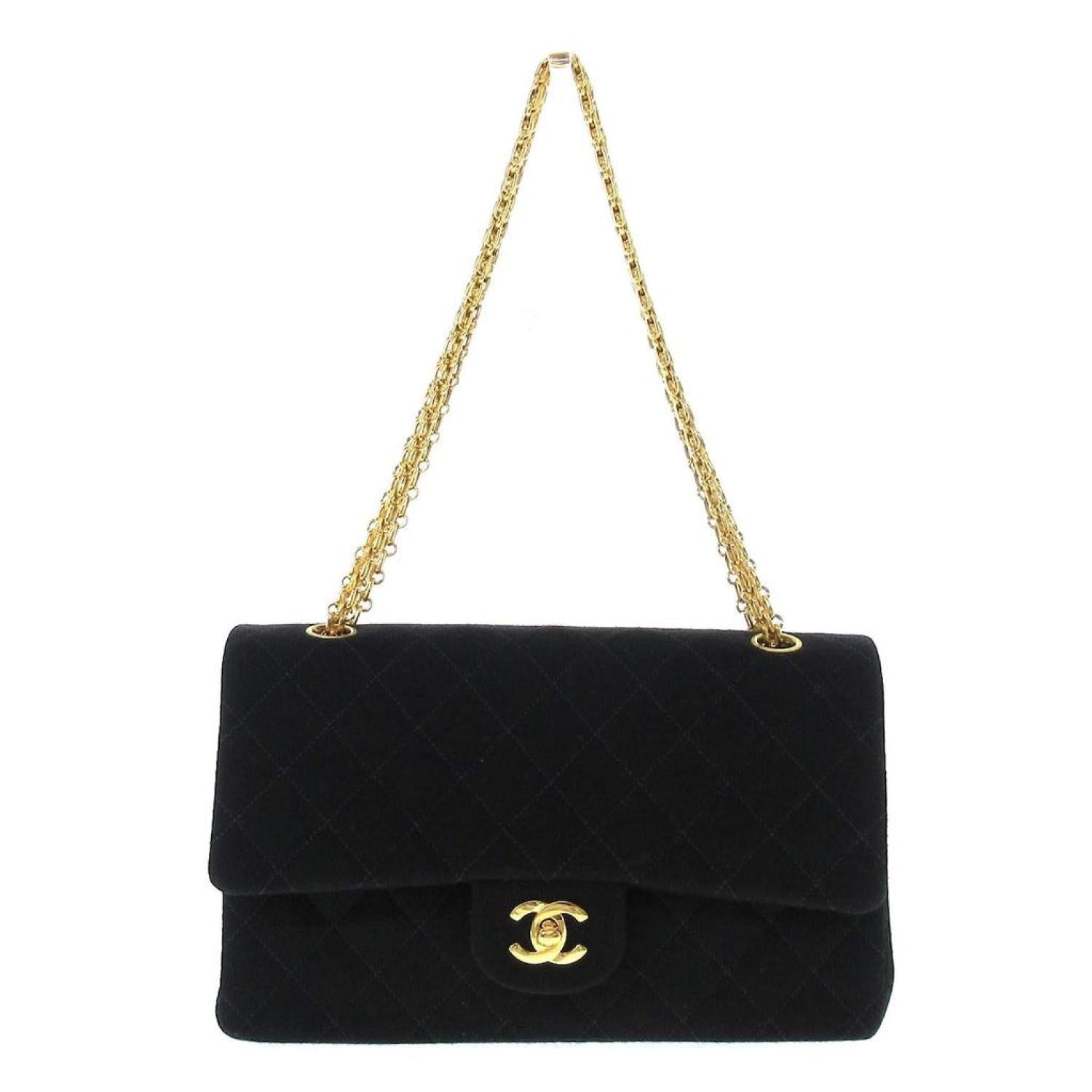 Brand - ChanelModel - Double flapColor - BlackMaterial - CottonInclusions - /Dimensions - height - ~ 15 cm width - ~ 25.5 cm depth - ~ 6.5 cm shoulder strap - 22 cmSerial number - There is a sticker.Country of origin - FranceCondition - AB - good condition.The Chanel Double Flap Matelassé shoulder bag for women, in classic black, features a Mademoiselle chain and gold hardware. The design includes two open-type external pockets, four open-type internal pockets, and one zippered internal pocket. It is crafted from cotton jersey.The bag exhibits minor scratches with slight fuzziness and scratches on the fastening hardware on the exterior. There is also a subtle overall soiling, with a slight dustiness inside the pockets. The bag shows slight deformation and corner abrasions at the main opening. Internally, there are minor scratches and faint overall soiling.We recommend that you look at all the pictures before you make your purchase to make sure you are satisfied with the condition of the item.