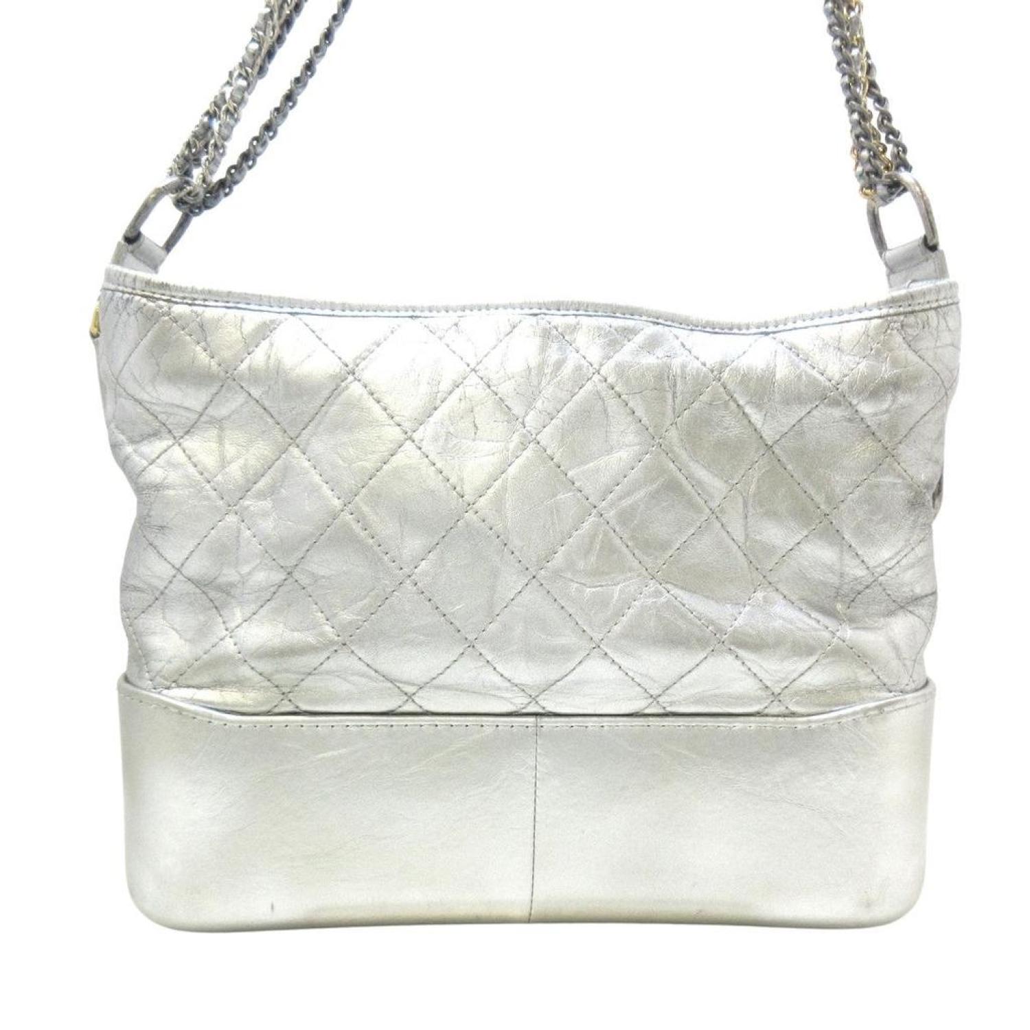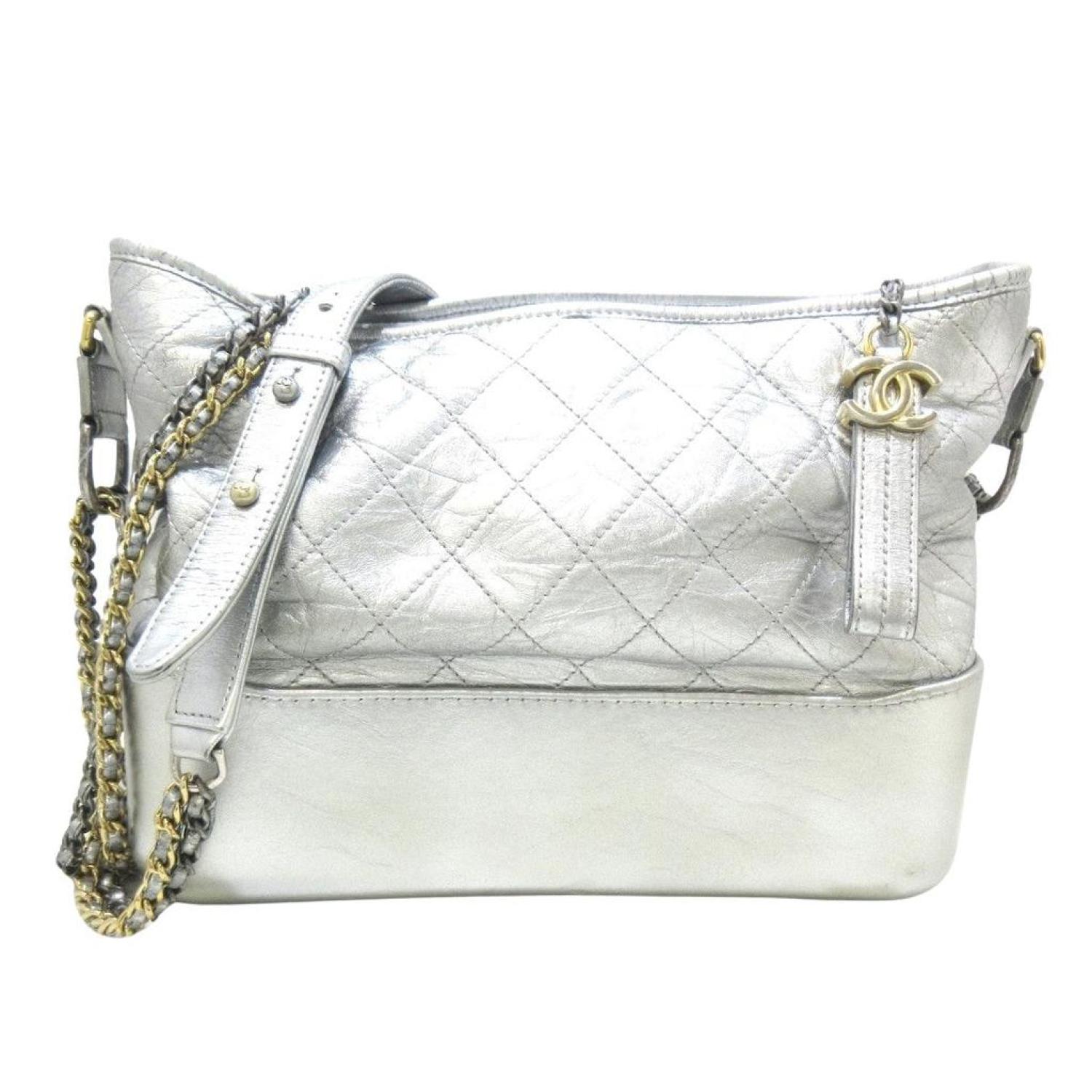 Brand - ChanelModel - GabrielleColor - SilverMaterial - LeatherInclusions - /Dimensions - height - ~ 21 cm width - ~ 27 cm - 31 cm depth - ~ 10 cm shoulder strap - to the main body ~ 42 cm (list the longest if adjustable)Serial number - sealCountry of origin - ItalyCondition - AB - good condition.The Gabrielle de Chanel Hobo Bag, a testament to elegance, features a silver color palette and a chain shoulder strap with both silver and gold hardware. The aged calfskin and calfskin material add a touch of luxury. Despite minor scratches, small stains, the exterior maintains a chic appearance, with only slight wear on the corners. The strap, displaying noticeable corner wear, darkening, and some cracks, contributes to the bag's vintage charm. The main mouth, with slightly worn corners, ensures durability. Inside, the bag continues to exude sophistication with minor scratches and light soiling, making it a timeless accessory for the modern woman.We recommend that you look at all the pictures before making your purchase to ensure that you are satisfied with the condition of the item.