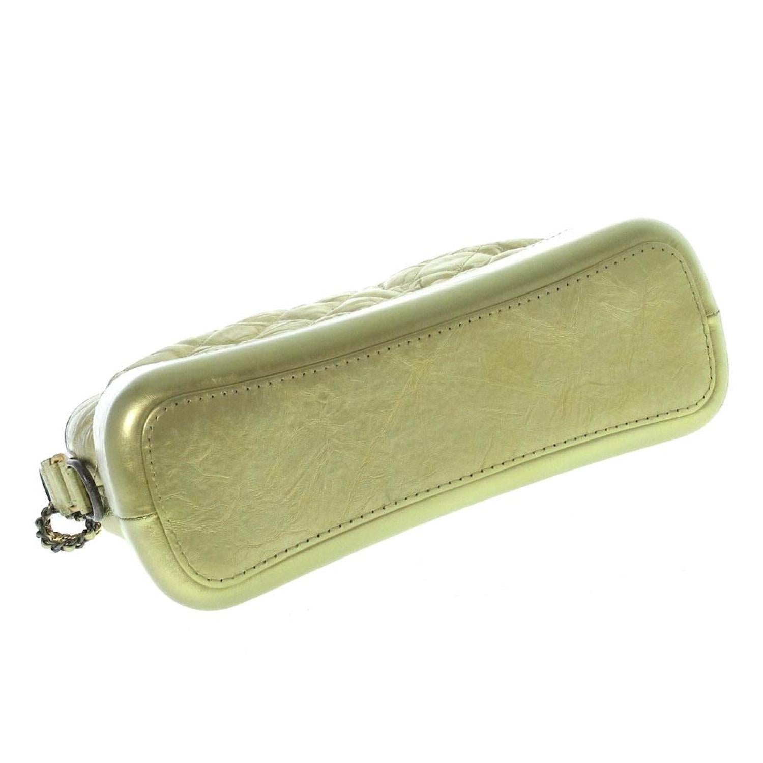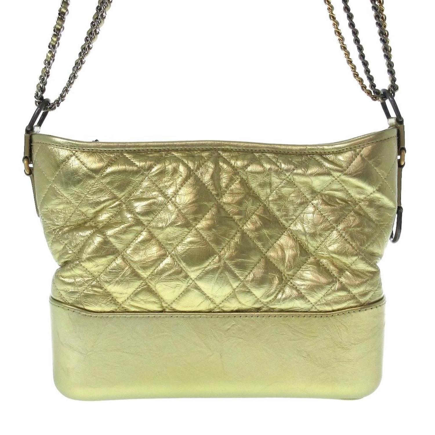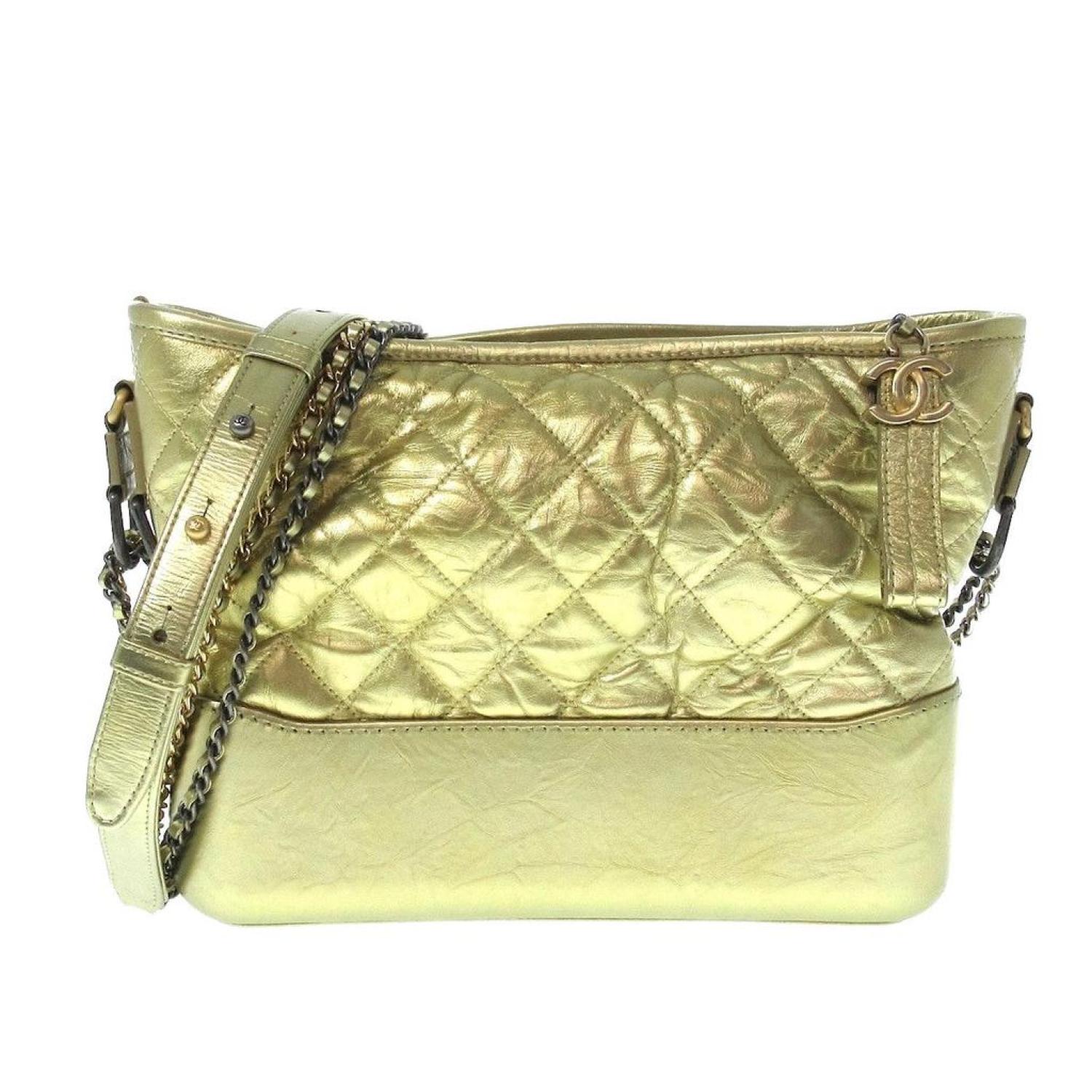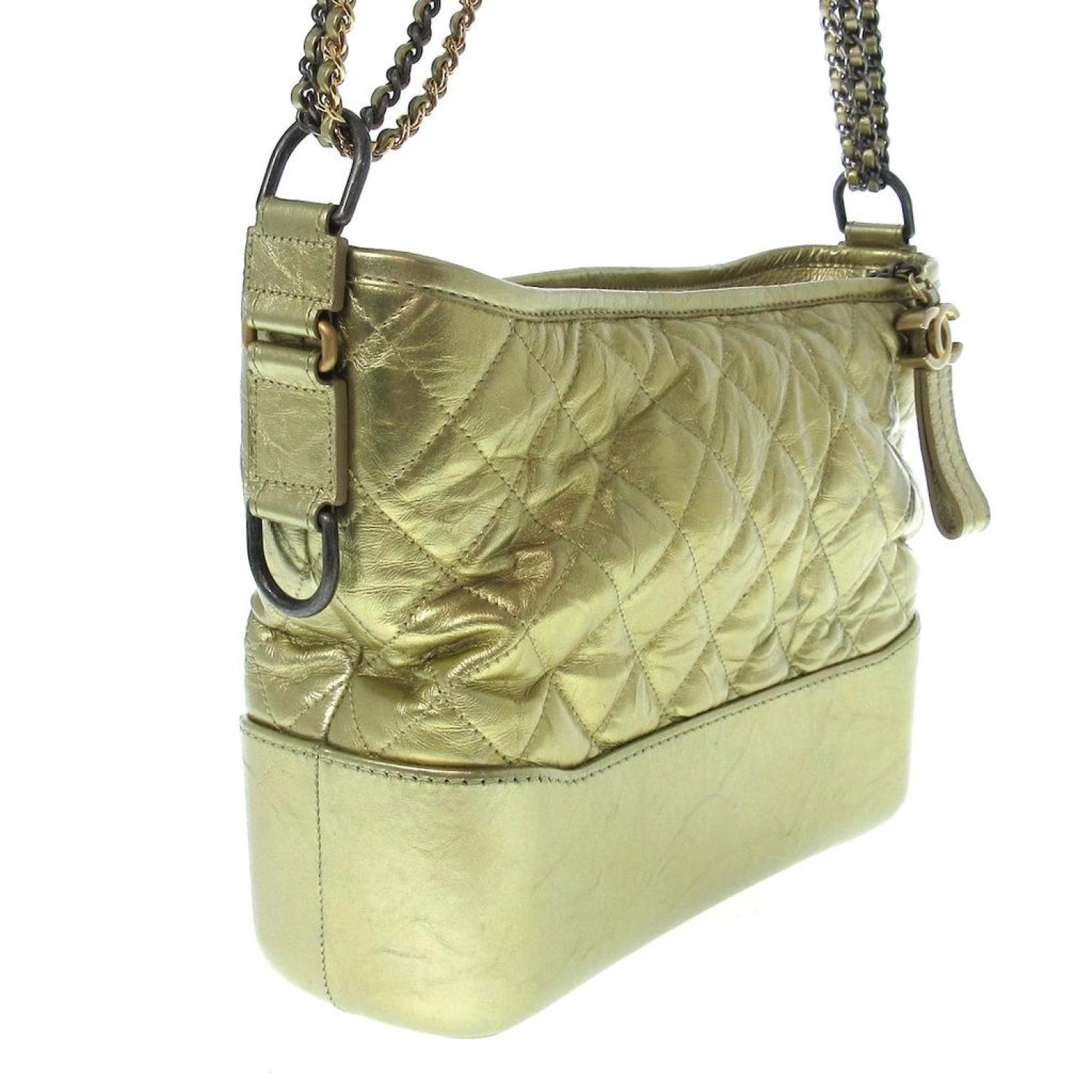 Brand - ChanelModel - GabrielleColor - GoldMaterial - LeatherInclusions - /Dimensions - height - ~ 22.5 cm width - ~ 27 cm depth - ~ 9.5 cm shoulder strap - 41 cmSerial number - There is a sticker.Country of origin - FranceCondition - AB - good condition.The Chanel "Gabrielle de Chanel Hobo Bag" for women, featuring gold hardware, combines silver and gold chain shoulder straps for a sophisticated design. The bag is equipped with three open pockets and one zippered pocket on the inside, providing functional storage. It is crafted from a blend of aged calfskin and calfskin.The exterior displays slight deformation overall, with minor scratches on the bottom and strap. There are also small stains and slight fraying on the bottom. Internally, the bag shows overall light soiling, with a bit of dust on the bottom. Despite these minor imperfections, the bag maintains its elegant appeal, showcasing Chanel's timeless style.We recommend that you look at all the pictures before you make your purchase to make sure you are satisfied with the condition of the item.