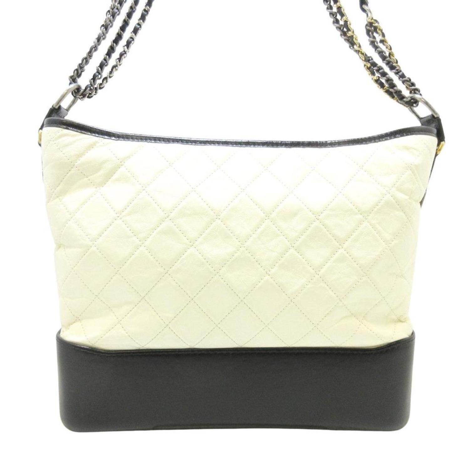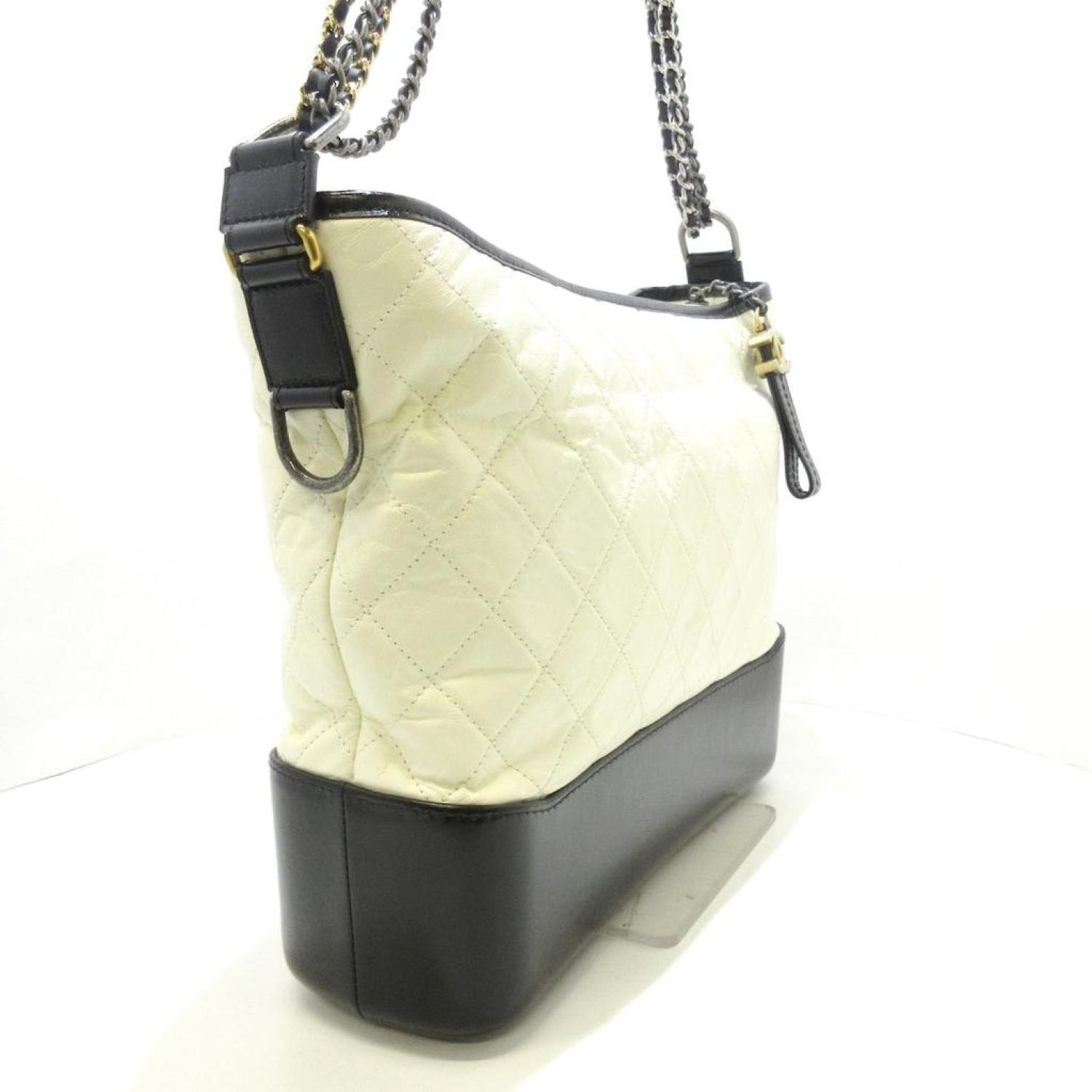 Brand - ChanelModel - GabrielleColor - BeigeMaterial - LeatherInclusions - /Dimensions - height - ~ 26 cm width - ~ 30 cm - 35 cm depth - ~ 9 cm shoulder strap - 45 cmSerial number - There is a sticker.Country of origin - ItalieCondition - AB - good condition.The CHANEL "Gabrielle de Chanel Hobo Bag" for women, in a stylish beige and black color combination, features a chain shoulder strap with a mix of silver, vintage silver, and gold hardware. The bag is designed without external pockets but offers internal organization with one zippered pocket and two open pockets. Some parts of the bag have protective seals. It is crafted from a combination of aged calfskin and calfskin.The exterior exhibits minor scratches, slight deformation, and some peeling on the metal hardware. The strap shows slight abrasion with numerous wrinkles. Internally, the main compartment has a few small scratches and minimal stains. Despite these minor imperfections, the bag remains a fashionable accessory that embodies Chanel's timeless elegance.We recommend that you look at all the pictures before you make your purchase to make sure you are satisfied with the condition of the item.