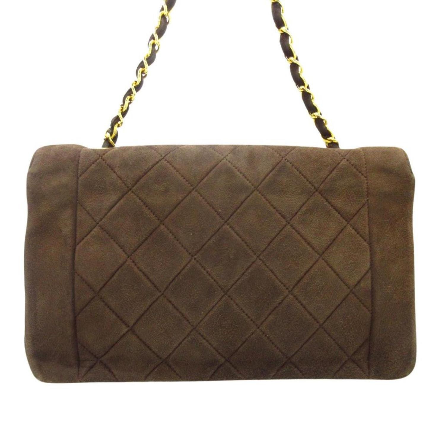 Brand - ChanelModel - MatelasséColor - BrownMaterial - SuedeInclusions - Dust bag, GuaranteeDimensions - height - ~ 16 cm width - ~ 25 cm depth - ~ 7 cm shoulder strap - 51 cmSerial number - There is a sticker.Country of origin - FranceCondition - AB - good condition.This Chanel Matelassé Shoulder Bag in dark brown is exclusively designed for women and showcases a flap bag with a chain shoulder strap, gold hardware, and a turnlock for added elegance. It offers one open-type and one zipper-type internal pocket, with no external pockets for organization. It is made from suede.The bag exhibits small scratches with some abrasion, light soiling, slight deformation, and peeling of the gold plating on the exterior. The bottom has noticeable corner rubbing without tears, and the strap shows slight corner rubbing and blackening. The main opening displays slight corner rubbing. Inside, there are small scratches and light soiling, along with some gold plating peeling around the zipper.We recommend that you look at all the pictures before you make your purchase to make sure you are satisfied with the condition of the item.