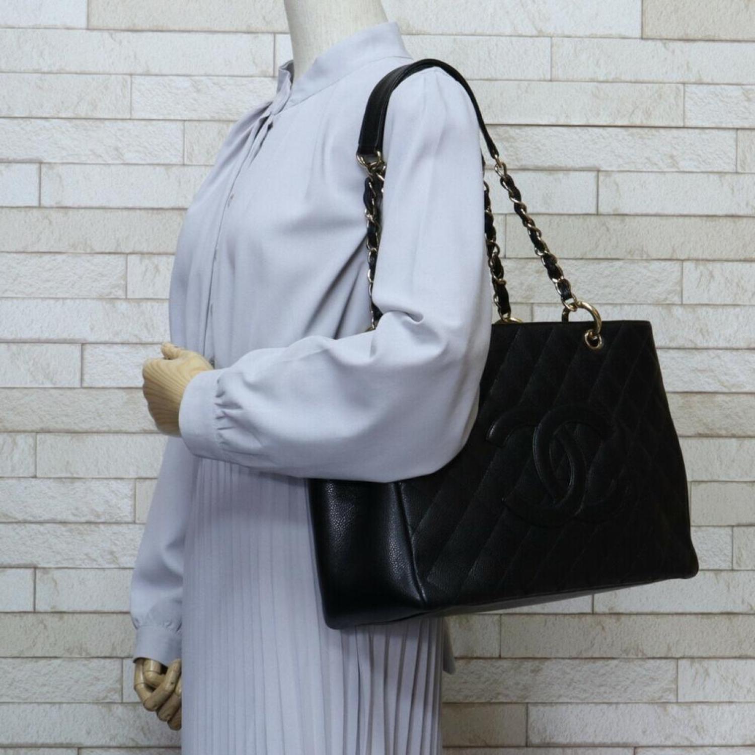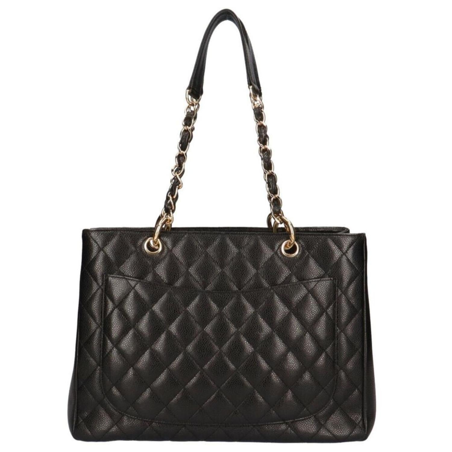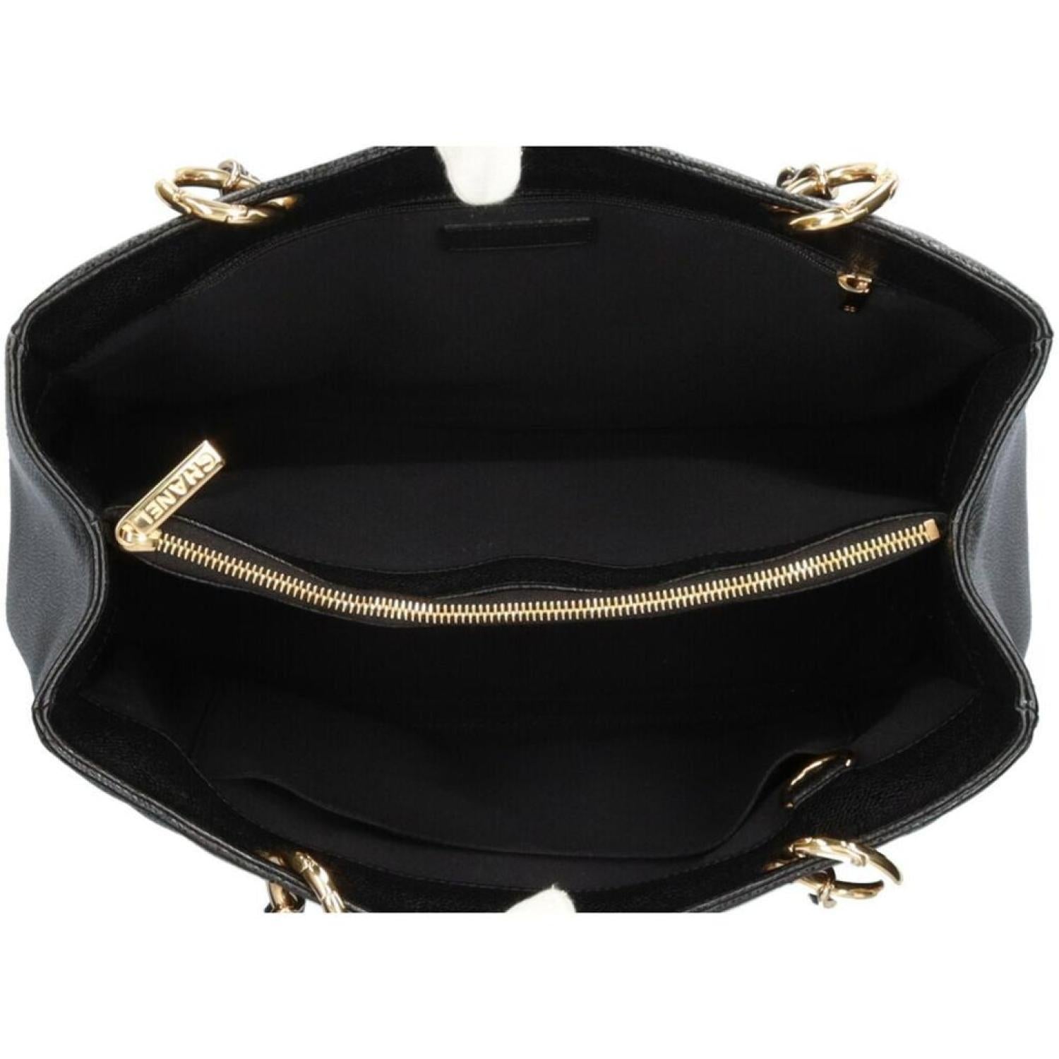 Brand - ChanelModel - ShoppingColor - BlackMaterial - LeatherInclusions - Guarantee cardDimensions - 24cm x 33.5cm x 14cmSerial number - 9446109Country of origin - FranceCondition - AB - good condition.The Chanel Shopping shoulder bag is a stylish accessory from the prestigious brand Chanel. It is designed as a shoulder bag and originates from Italy, known for its craftsmanship and fashion heritage. The bag is crafted from caviar leather, a luxurious and durable material that offers a pebbled texture and resilience to everyday use. It comes in a classic black color, adding a touch of sophistication and versatility to any outfit. The bag features an open closure, allowing easy access to the contents inside. The interior is designed with practicality in mind, offering an open pocket and two zipper pockets to keep belongings organized. Additionally, there is an outer zipper pocket for quick and convenient storage. The Chanel Shopping shoulder bag shows only insignificant traces of usage, with minimal scratches and dirt, indicating it is overall in very good condition. There is a minor scuff on the corner, and the bag may have a slight misshape on the outside. However, these imperfections do not significantly impact its appearance or functionality, allowing the bag to remain in excellent condition.We recommend that you view all photos before purchasing to ensure that you are satisfied with the condition of the item.