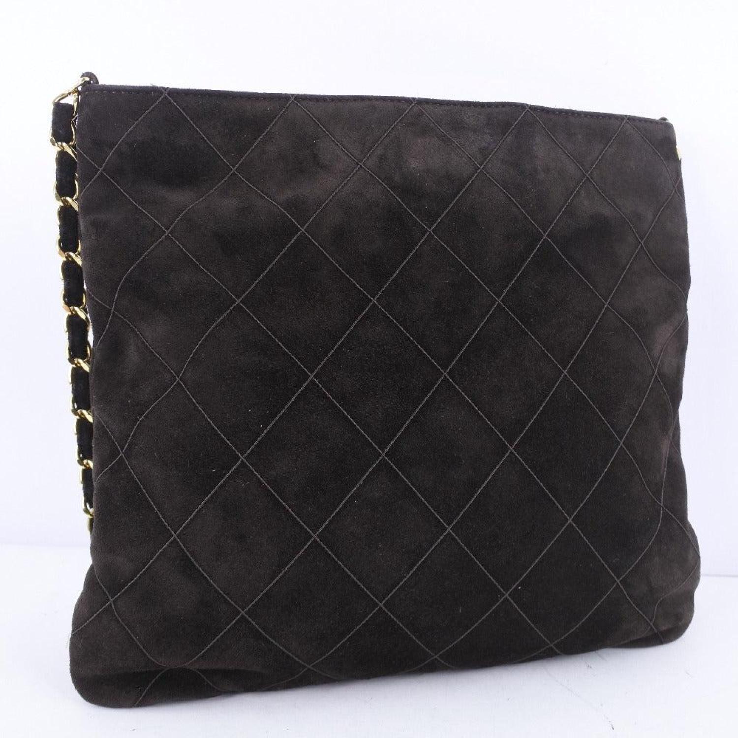 • Brand - ChanelModel - Color - BrownMaterial - SuedeInclusions - Serial stickerDimensions - Size H approx. 24cm x W approx. 27cm x D approx. 1cm Shoulder height - approx. 50cmSerial number - 5762139Country of origin - FranceCondition - AB - good condition.Outside - The bag is slightly out of shape and rubbed.Inside - It is slightly dirty.