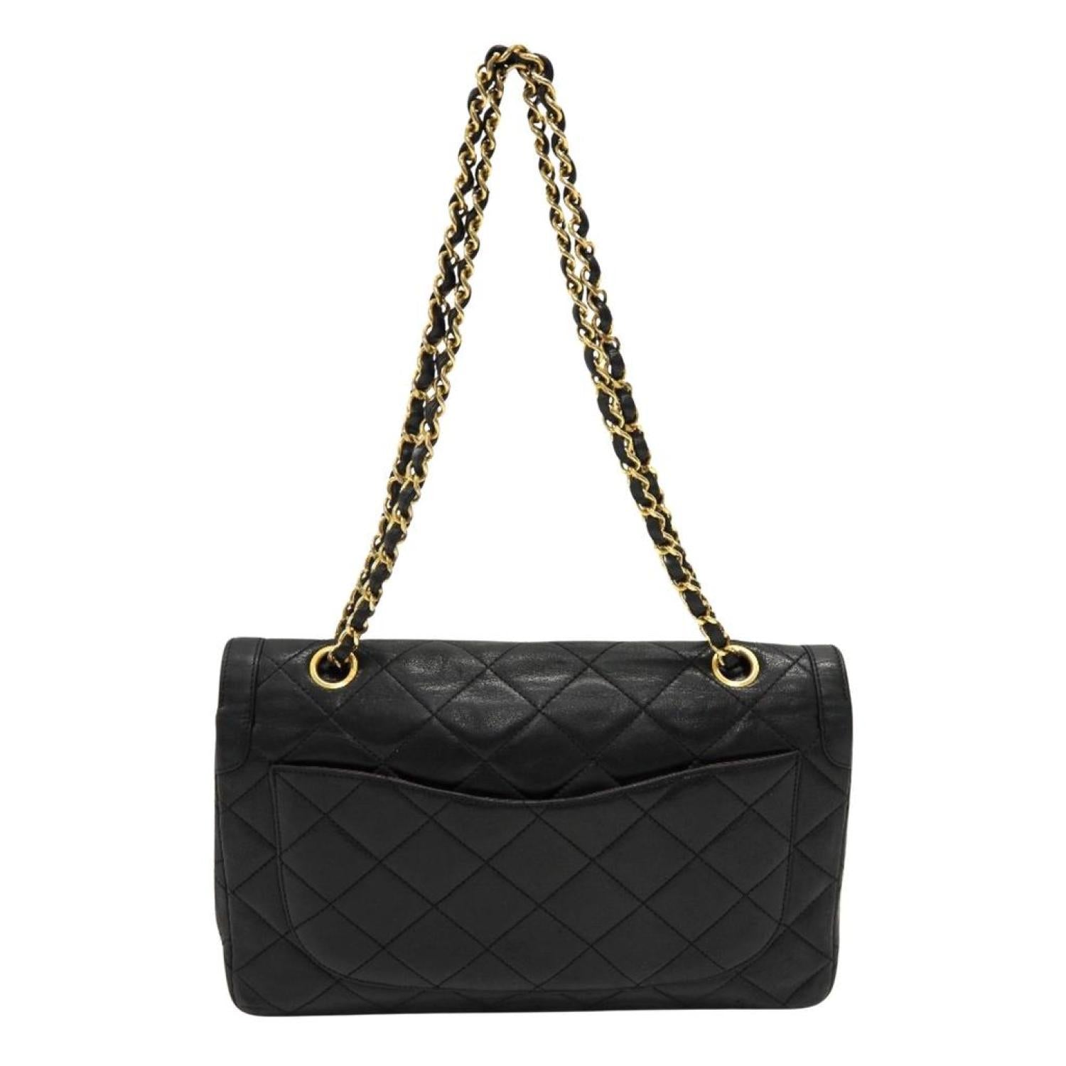 Brand - ChanelModel - Timeless/classiqueColor - BlackMaterial - LeatherInclusions - Guarantee cardDimensions - 18cm x 27.5cm x 6.5cmSerial number - 1247327Country of origin - FranceCondition - AB - good condition.Chanel handbags, such as the Timeless Classique model in black quilted leather with gold attributes, are specially designed for women. Displaying timeless elegance, this shoulder bag embodies the brand's iconic style, with its black quilted leather, offering the perfect combination of sophistication and functionality.Inside, light rubbing and a light stain are present, while outside, light rubbing at the corners and a few stains can be observed.We recommend that you look at all the pictures before making your purchase to ensure that you are satisfied with the condition of the item.
