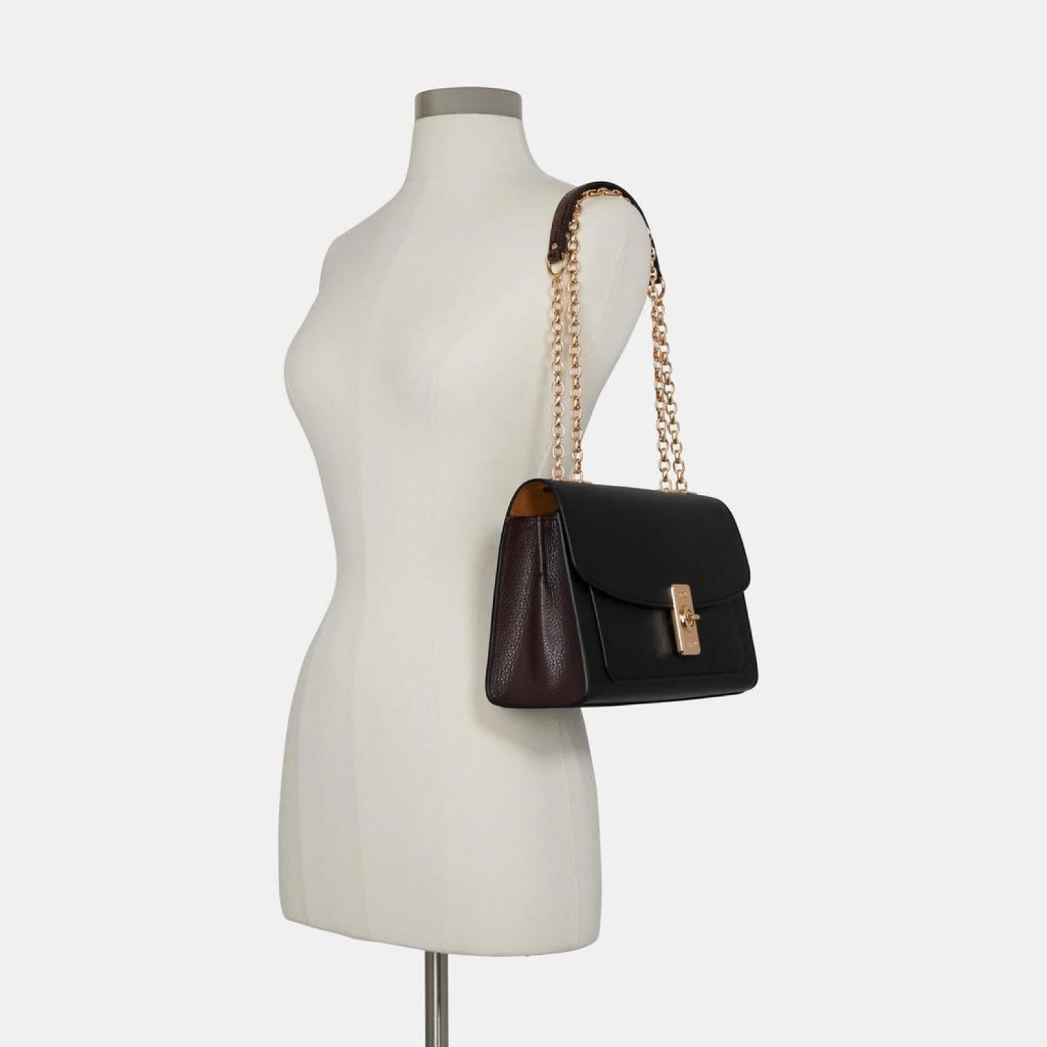 Refined pebble leather and snake-embossed leather Inside multifunction pocket Center zip compartment Turnlock closure fabric lining Outside open pocket Handles convert to shoulder strap with 19 1/4 drop 10 1/4 (L) x 7 (H) x 4 (W) Style No. C8595 | Coach Outlet Lane Shoulder Bag - Black
