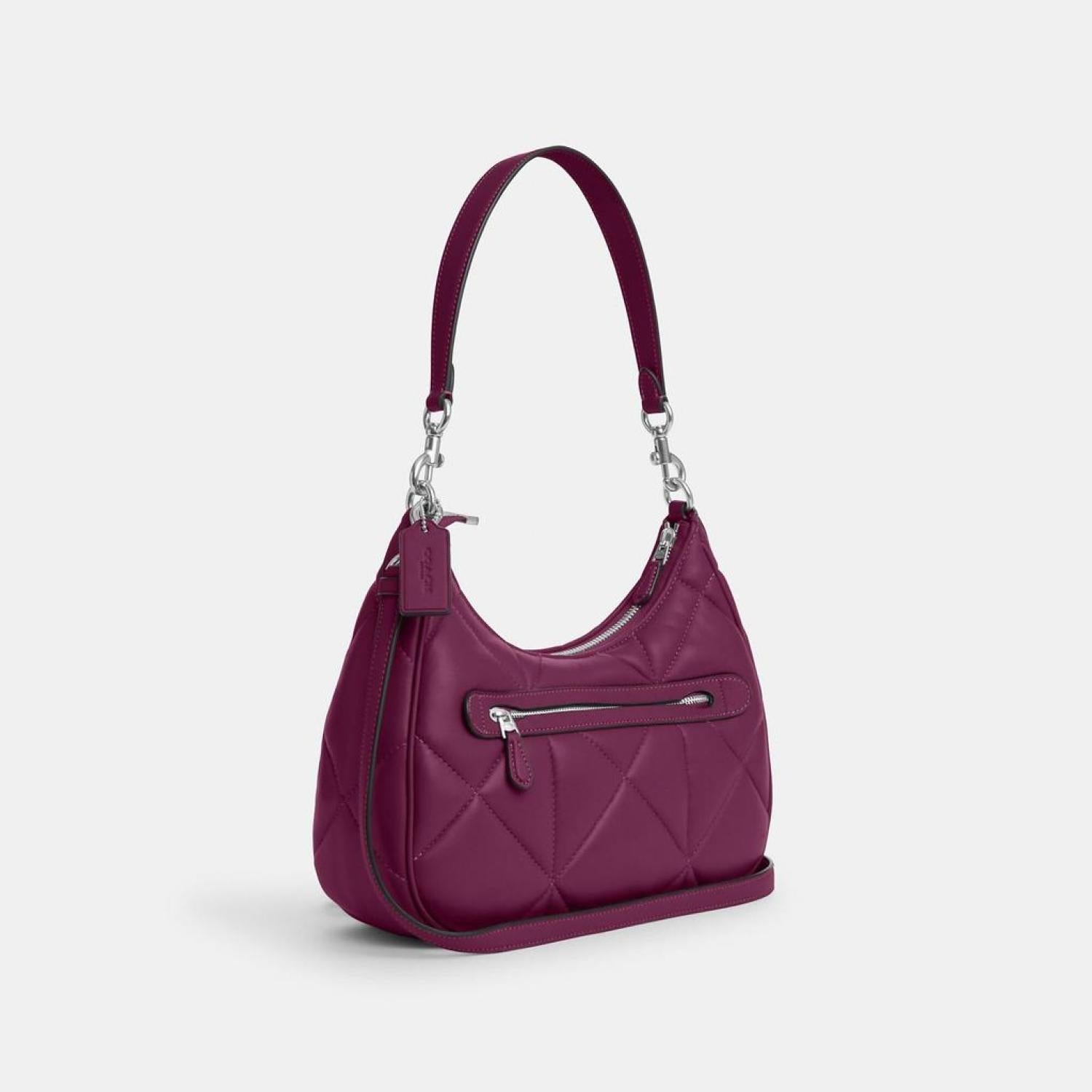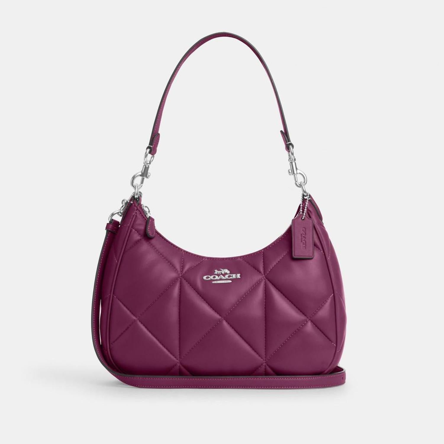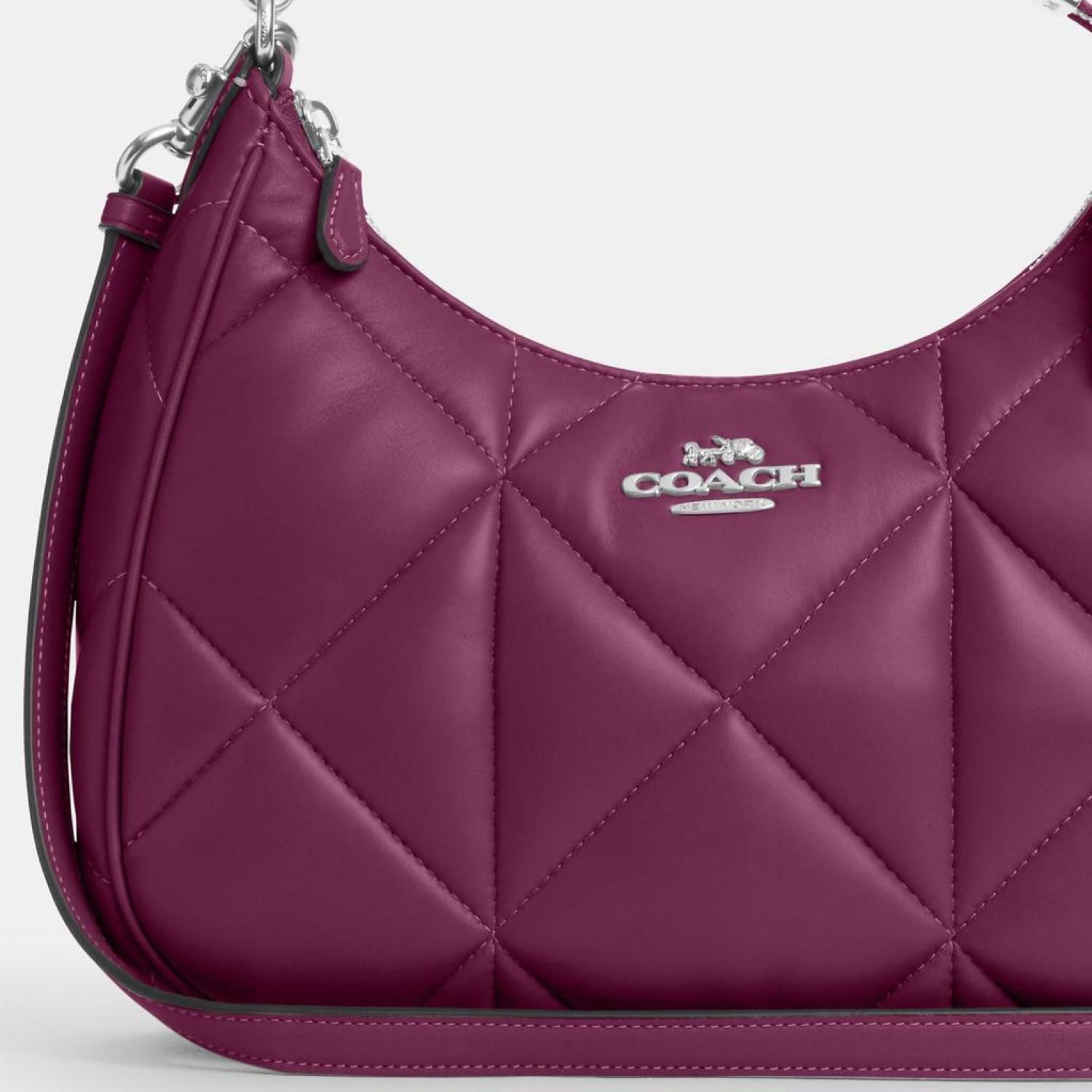 Nappa leather Inside zip and multifunction pockets Zip-top closure fabric lining Detachable handle with 11 drop Outside zip pocket Detachable strap with 22 drop for shoulder or crossbody wear 11 1/2 (L) x 9 1/4 (H) x 3 1/2 (W) Style No. CM097 | Coach Outlet Teri Hobo With Puffy Diamond Quilting - Purple