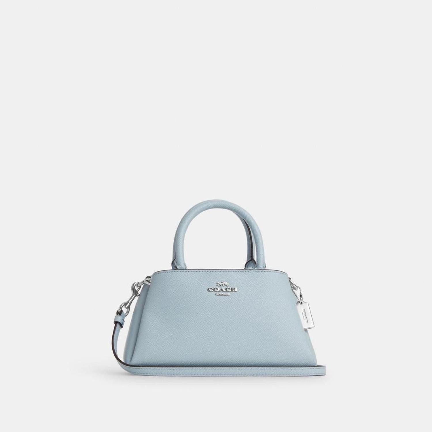 Glitter crossgrain leather and smooth leather Center zip compartment Snap closure fabric lining Handles with 3 1/4 drop Detachable strap with 22 1/2 drop for shoulder or crossbody wear Four protective feet at base 8 1/2 (L) x 4 1/2 (H) x 5 (W) Style No. CM185 | Coach Outlet Zuri Crossbody - Blue
