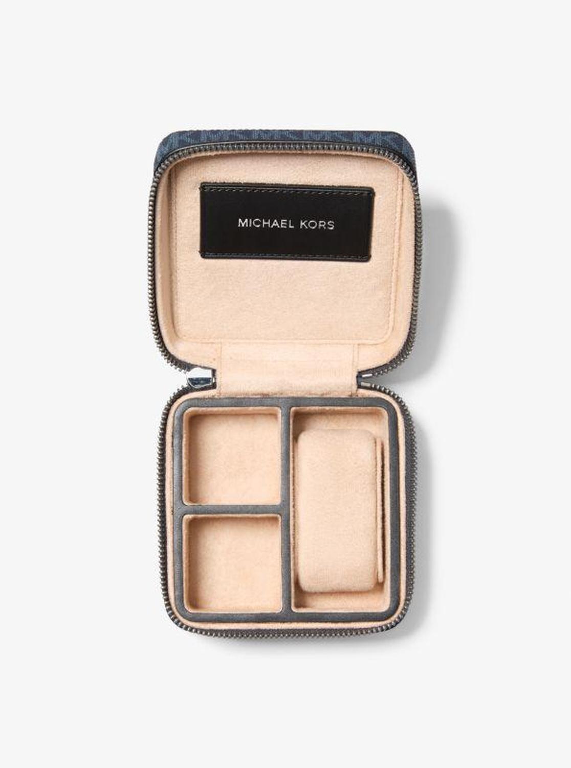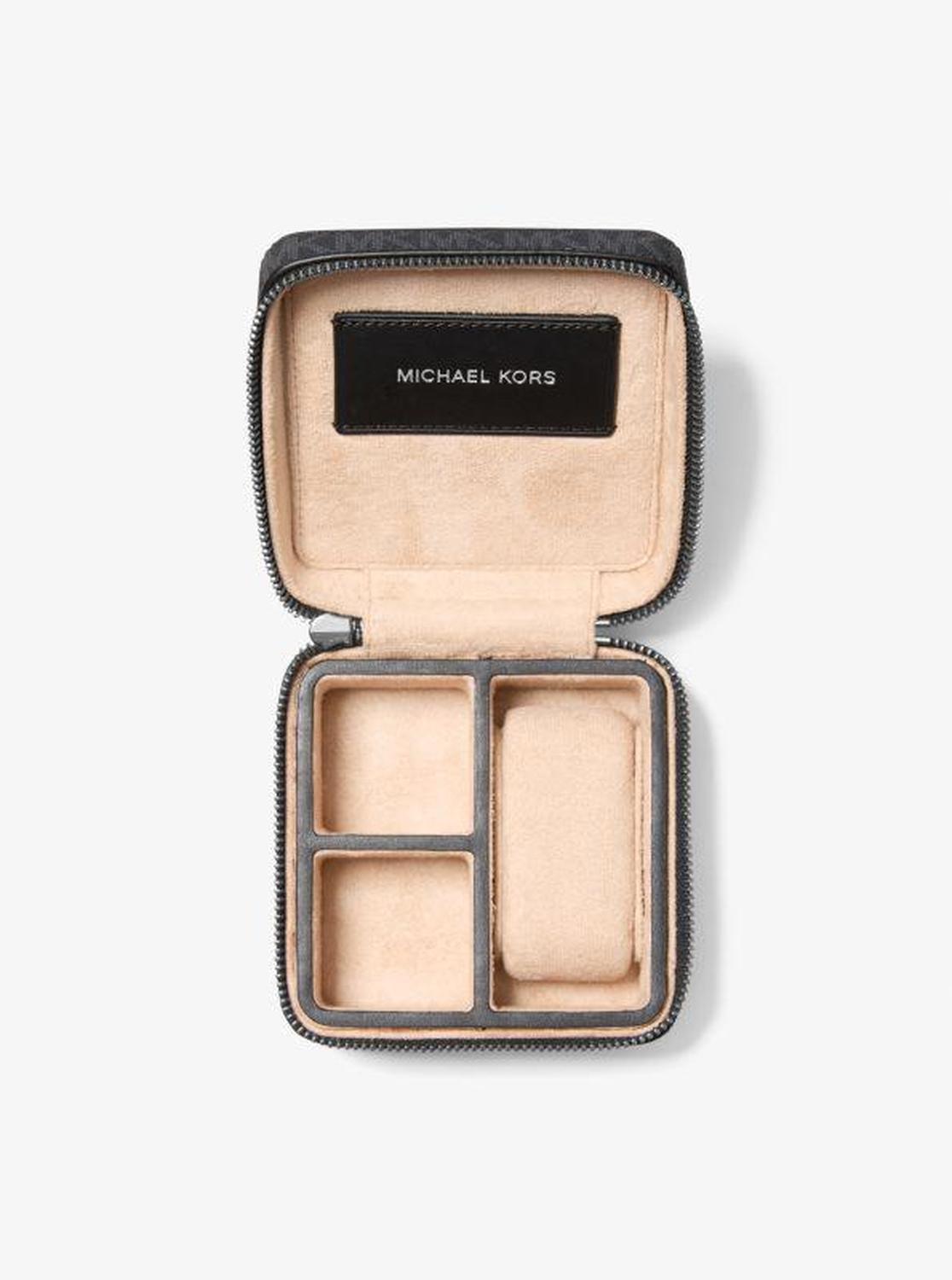 Our Cooper watch case is a must-have travel essential for any man. Its structured shape is wrapped in our Signature logo-print canvas for durability and lined with felt to keep your timepiece scratch-free. Use the smaller compartments to store extra watch straps, jewelry, or a pair of cufflinks. • Watch travel case • Logo-print canvas • 89.4% coated canvas/9.6% polyester/1% polyurethane • Trim 1: 60% polyurethane/20% cotton/20% polyester • Trim 2: 100% polyester • Gunmetal hardware • 4.52"W X 4.52"H X 2.75"D • Zip fastening • Imported • Watch travel case • Logo-print canvas • 89.4% coated canvas/9.6% polyester/1% polyurethane • Trim 1: 60% polyurethane/20% cotton/20% polyester • Trim 2: 100% polyester • Gunmetal hardware • 4.52"W X 4.52"H X 2.75"D • Zip fastening • Imported