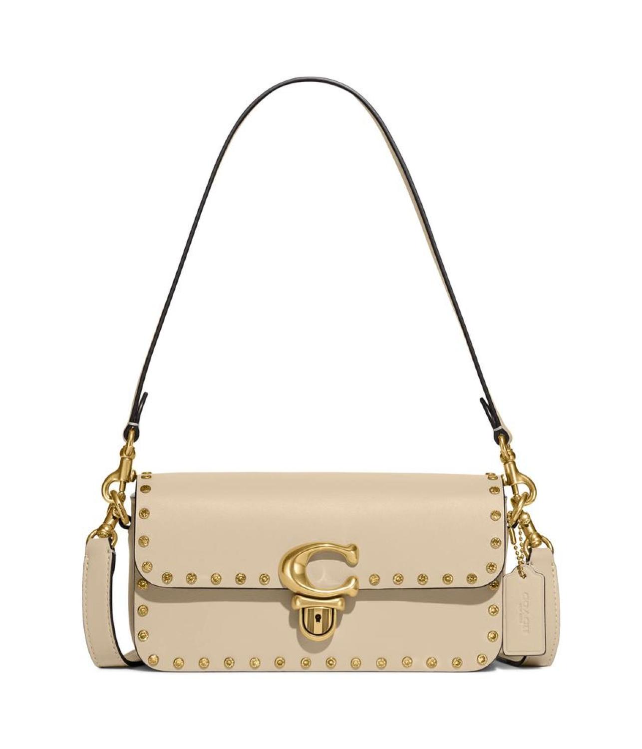 Liven up your everyday chic style with the perfect accessory in the COACH™ Crystal Rivets Studio Baguette Bag.