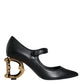 Dolce & Gabbana Black Leather Logo Heels Mary Janes Pumps Shoes