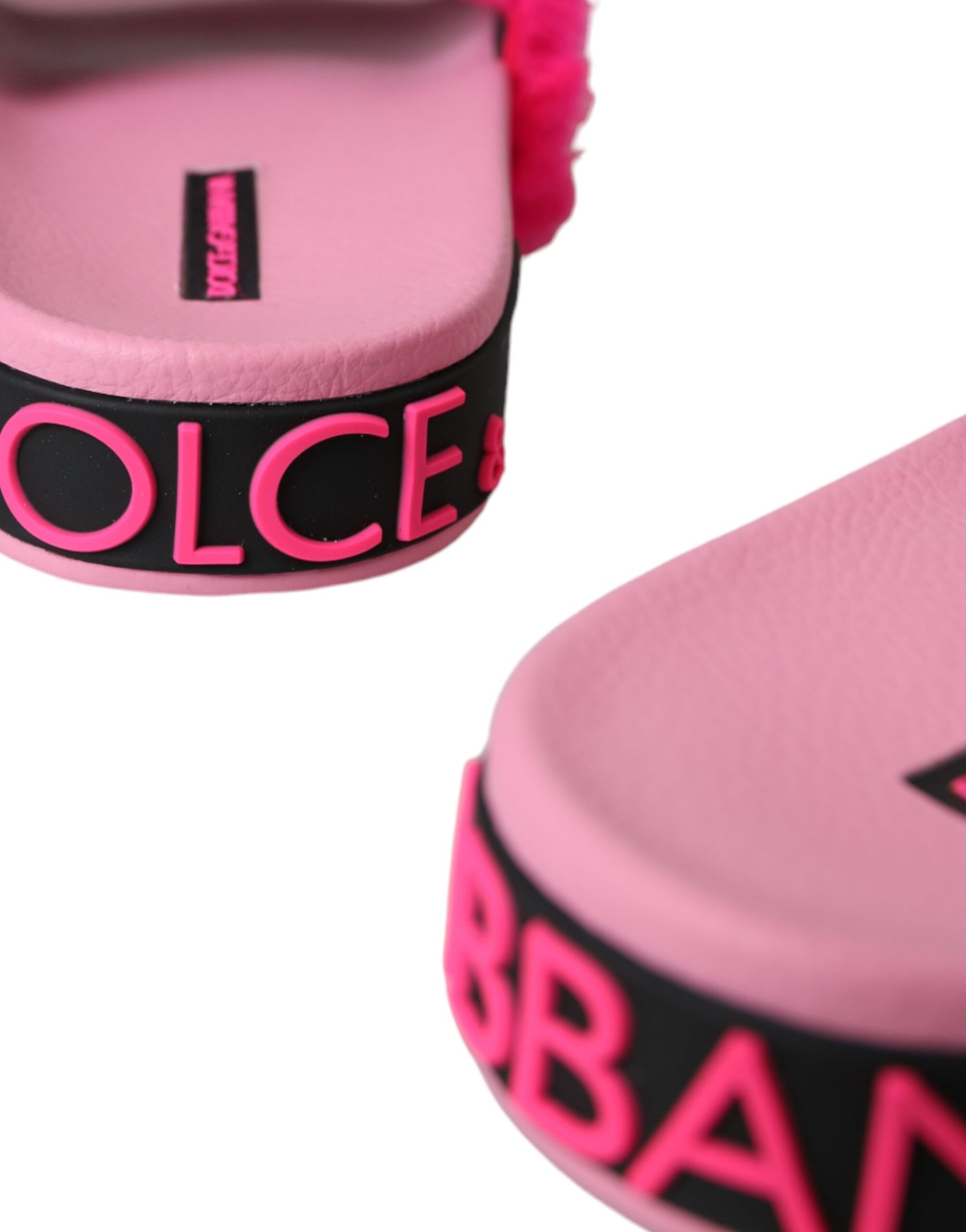 Dolce & Gabbana Multicolor Embroidered Fur Slides Sandals Shoes