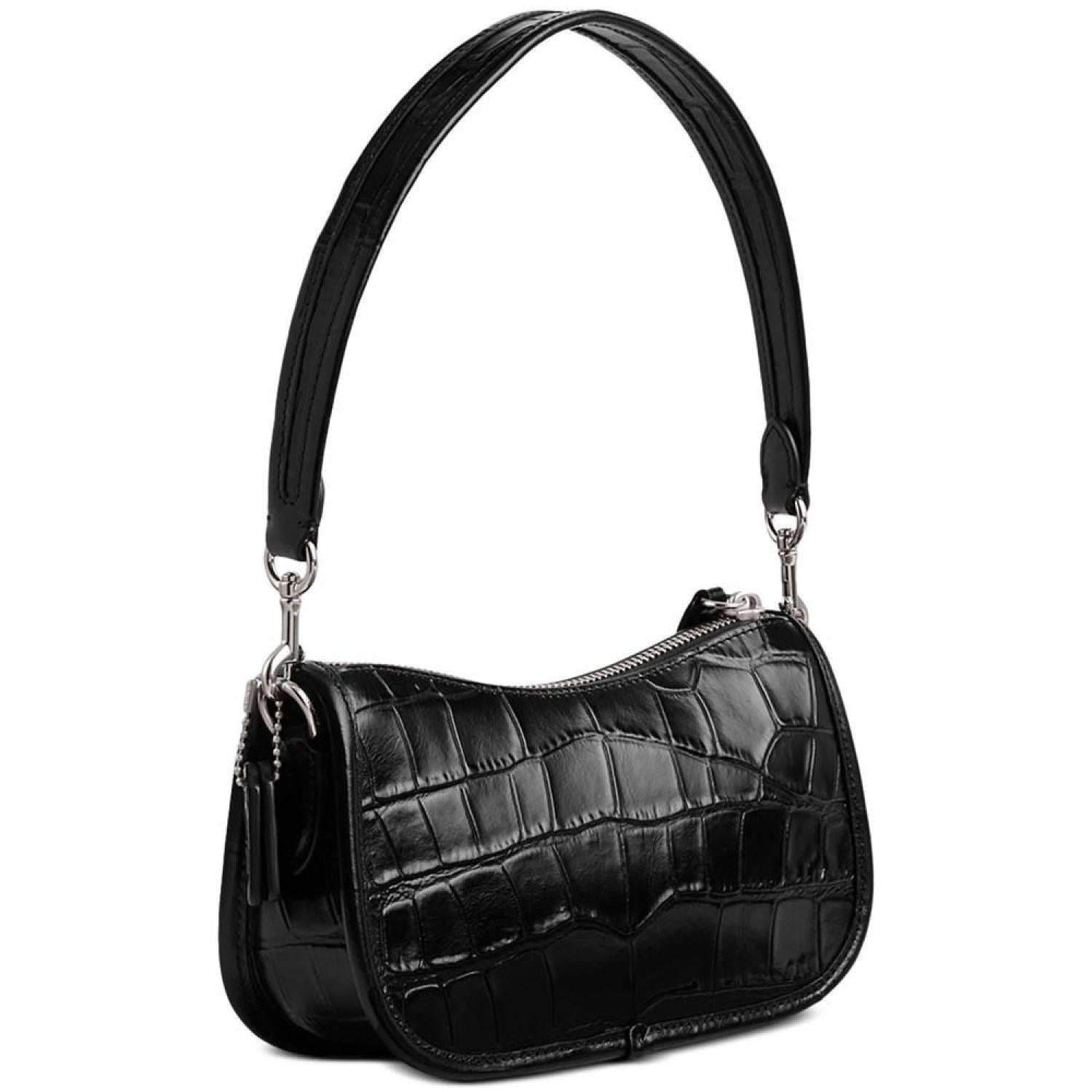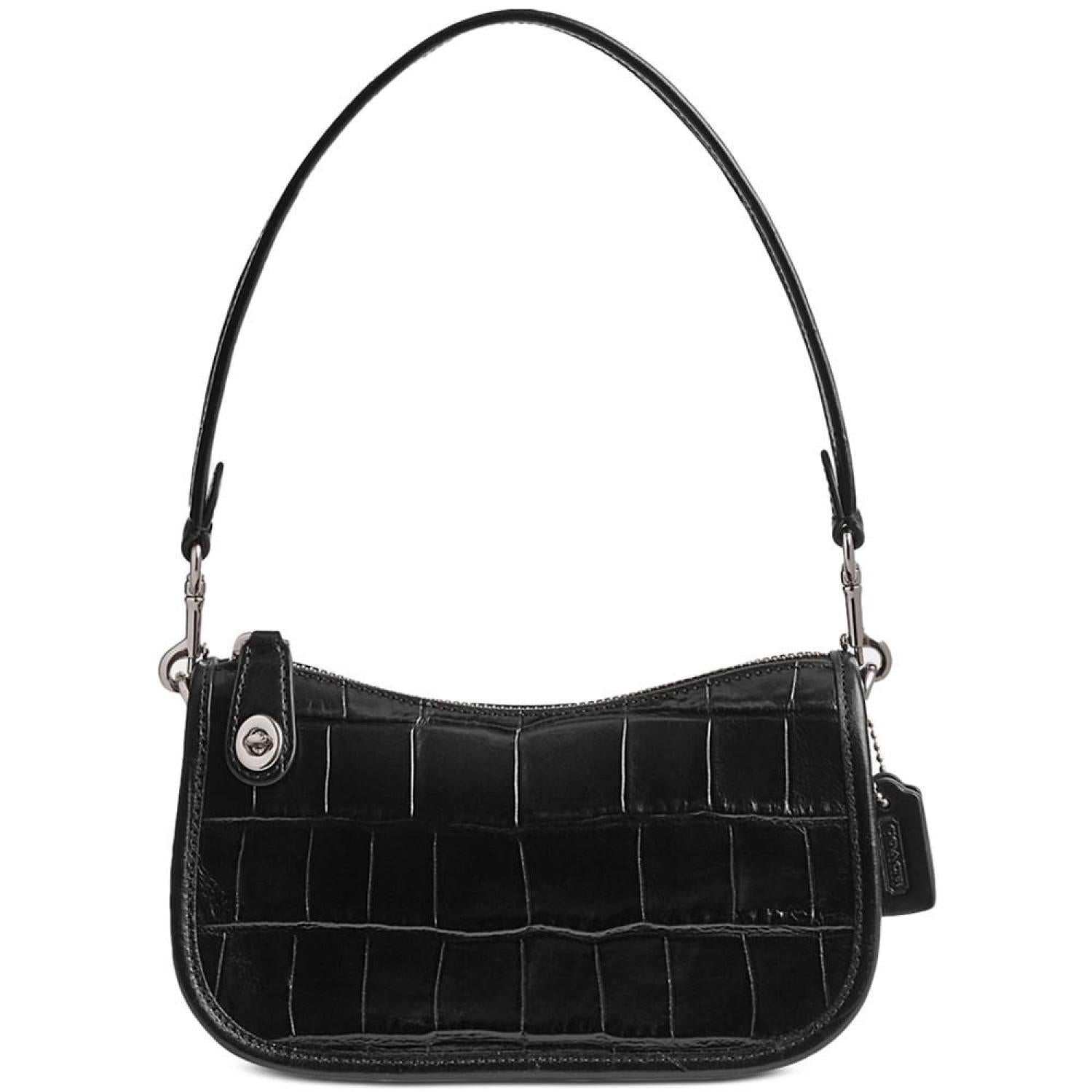 Embossed Croc Leather Swinger 20 Shoulder Bag