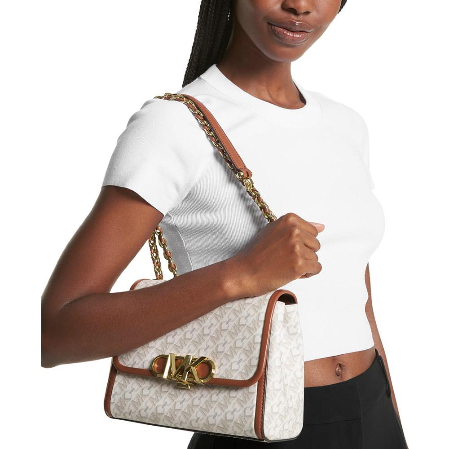 • Sophisticated and versatile, this shoulder bag by MICHAEL Michael Kors is a classic wardrobe staple. The convertible straps allow you to go handsfree as a crossbody or fit comfortably over the shoulders. Finished with a shiny logo at the front, this bag is certain to become a favorite go-to.