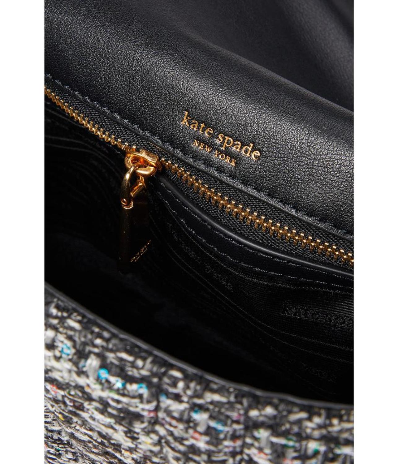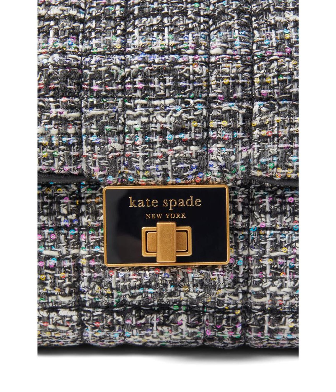Look fabulous in the chic and glamorous Kate Spade New York® Evelyn Tweed Medium Convertible Shoulder Bag featuring a classic silhouette. Tweed construction with smooth leather trim. Turn buckle flap closure. Goldtone convertible chain shoulder strap. Center slip divider, zippered pocket, and slip-in interior pocket. Fits current iPhone. Signature pinmount logo. Dustbag included. Faille lining. Imported. Please note, the hardware color and interior lining may differ from the color shown in the photo. Measurements: Bottom Width: 10 in Depth: 3 1/2 in Height: 5 1/2 in Strap Length: 29 in Strap Drop: 12 1/2 in Weight: 1 lb 10 oz