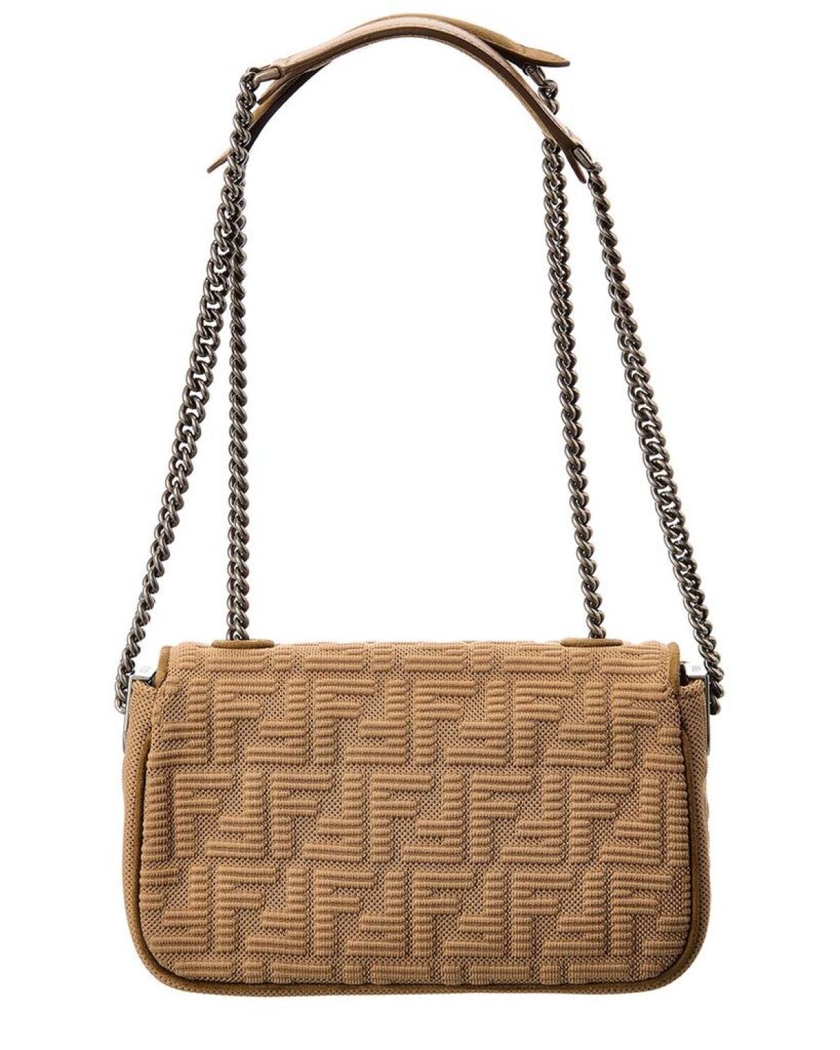 • Introducing the FENDI Baguette Midi FF Tech Mesh Shoulder Bag, a stylish and innovative addition to your handbag collection. Crafted with the utmost elegance, this Italian luxury bag showcases the iconic FENDI brand. Made in Italy, this shoulder bag features a beige FF technical mesh fabric with silver-tone hardware, adorned with a logo accent and chain strap for a fashionable touch. The interior design details include a fabric lining and an interior pocket, providing functionality without compromising style.Measuring 9.5 inches wide, 5.7 inches high, and 3 inches deep, this bag offers ample storage space for your essentials. The top handle drops 2 inches, allowing for versatile carrying options. Additionally, the shoulder strap has a drop of 23 inches, ensuring comfortable wear all day long.Designed with a fold-over flap and magnetic closure, this bag keeps your belongings secure. Please note that all measurements were taken by hand and are approximate, as slight variations may occur.Rest assured, our products are 100% genuine. While we sometimes source merchandise from trusted independent suppliers, we always guarantee the authenticity of every product sold on our site.Elevate your style with the FENDI Baguette Midi FF Tech Mesh Shoulder Bag, perfect for the modern woman seeking both quality and sophistication.