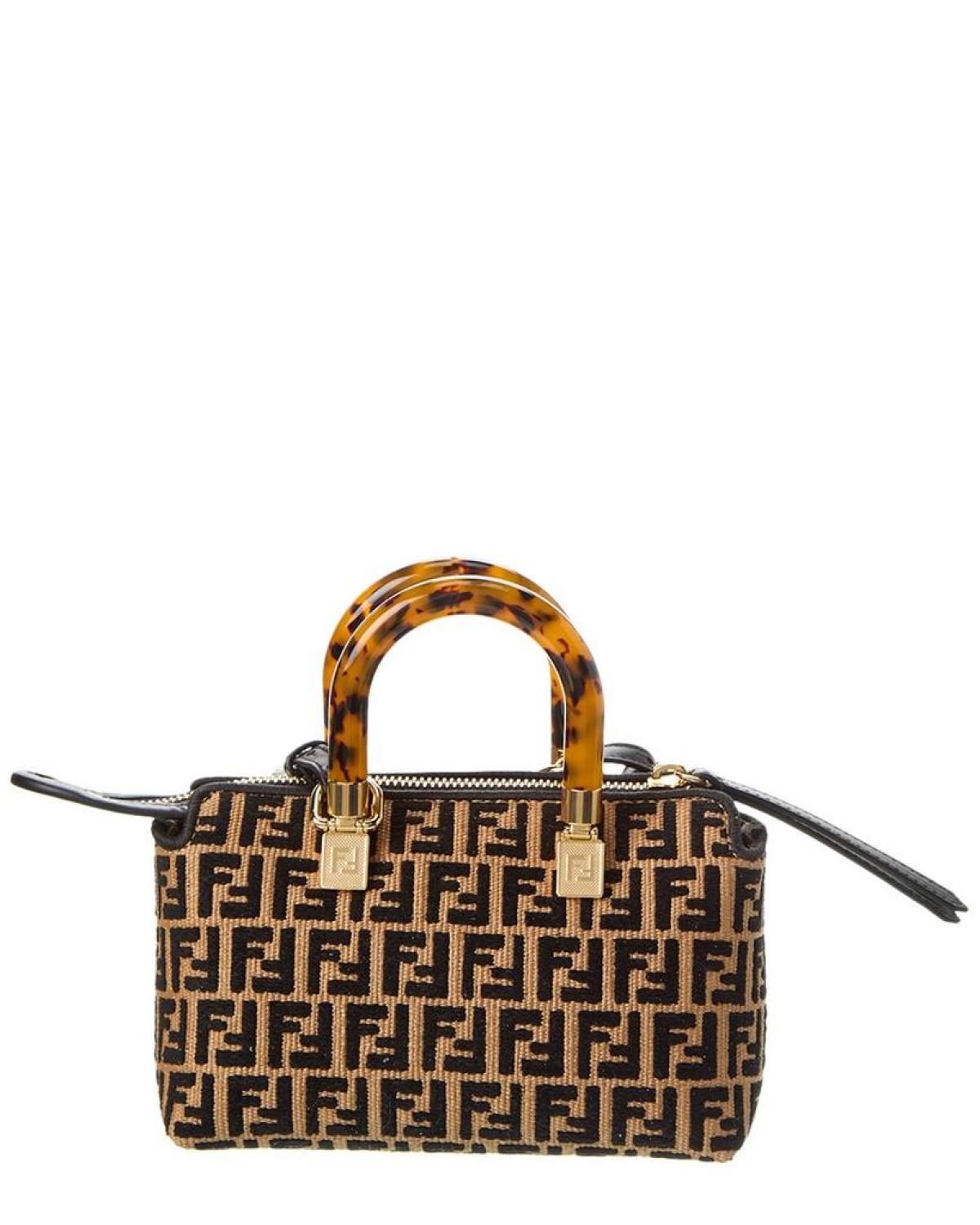 Introducing the FENDI By The Way Mini Raffia & Leather Shoulder Bag, a stunning addition to our collection of women's handbags. This exquisite piece, crafted in Italy by the renowned brand FENDI, showcases their innovative and elegant approach to Italian luxury.The bag features a unique combination of black and natural FF fabric, along with luxurious leather accents and gold-tone hardware, adding a touch of sophistication to any outfit. The highlight of this design is the exquisite plexiglass top handles, creating a modern and stylish look.Inside, you'll find a beautifully printed fabric lining, complementing the exterior design. With dimensions of 8 inches wide, 5 inches high, and 3.5 inches deep, it offers ample space for your essentials. The top handles have a drop of 3 inches, allowing for an easy hand-carry option. Additionally, the bag also comes with an adjustable and removable shoulder strap, offering versatility in wear and a drop of 22 inches for a comfortable fit.With a convenient zipper top closure, all your belongings will be securely stored. Please note that all measurements were taken by hand and are approximate; slight variations may occur.We assure you that our products are 100% genuine. Although in some cases, we may source merchandise from trusted independent suppliers, rest assured that we stand by the authenticity of every product sold on our site. Elevate your accessory game and make a statement with the FENDI By The Way Mini Raffia & Leather Shoulder Bag. It's a true testament to FENDI's commitment to quality and style. Shop now and experience the epitome of Italian luxury.