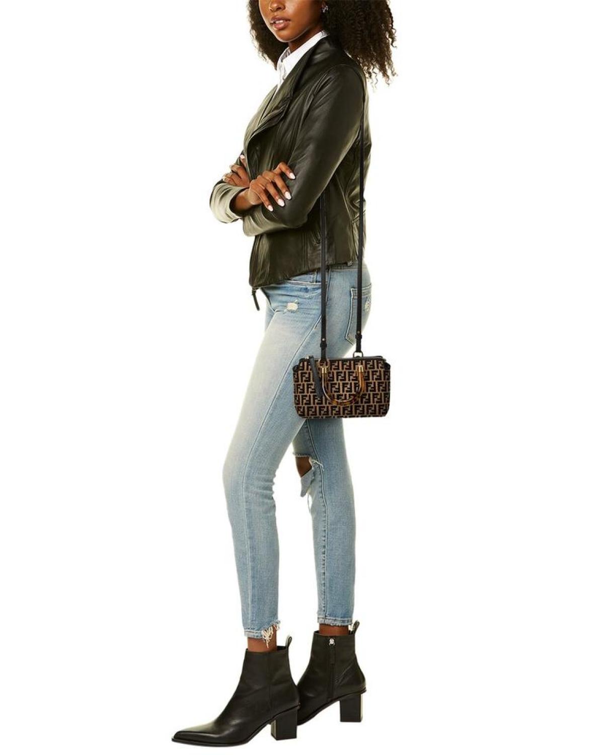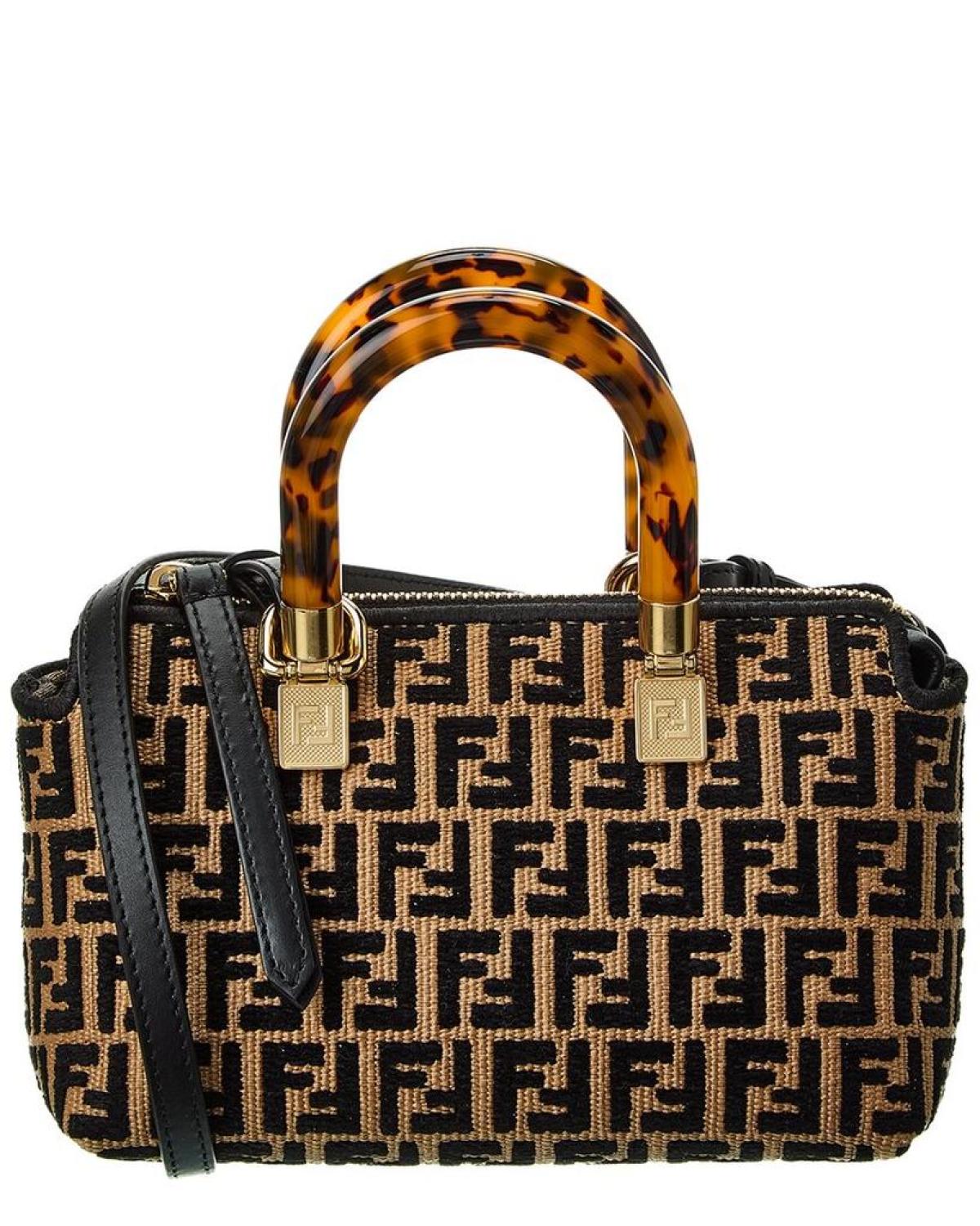 • Introducing the FENDI By The Way Mini Raffia & Leather Shoulder Bag - a true symbol of innovative and elegant Italian luxury. Crafted with meticulous attention to detail, this handbag showcases the iconic FENDI brand and is a must-have addition to any fashion-forward woman's collection.This exquisite shoulder bag is expertly made in Italy, combining the finest quality black and natural FF fabric and leather with lustrous gold-tone hardware. The standout feature of this bag is its unique plexiglass top handles, adding a touch of sophistication and modernity to the design.Inside, you'll find a beautifully printed fabric lining that adds a luxurious touch to the interior. With dimensions of 8 inches wide, 5 inches high, and 3.5 inches deep, this compact bag is perfect for carrying your daily essentials.The top handles have a convenient drop of 3 inches, allowing you to carry the bag effortlessly in your hand. Alternatively, utilize the adjustable and removable shoulder strap, which drops 22 inches, for a comfortable crossbody style.Secured with a zipper top closure, your belongings will stay safe and secure while you're on the go. Please note that all measurements were taken by hand and are approximate, so slight variations may occur.Rest assured, our products are 100% genuine. While we sometimes source merchandise from trusted independent suppliers, rather than directly from the brand owner, we guarantee the authenticity of every product sold on our site.Elevate your style with the FENDI By The Way Mini Raffia & Leather Shoulder Bag, a chic and versatile accessory that combines timeless beauty with contemporary design. Shop now and experience the epitome of luxury fashion.