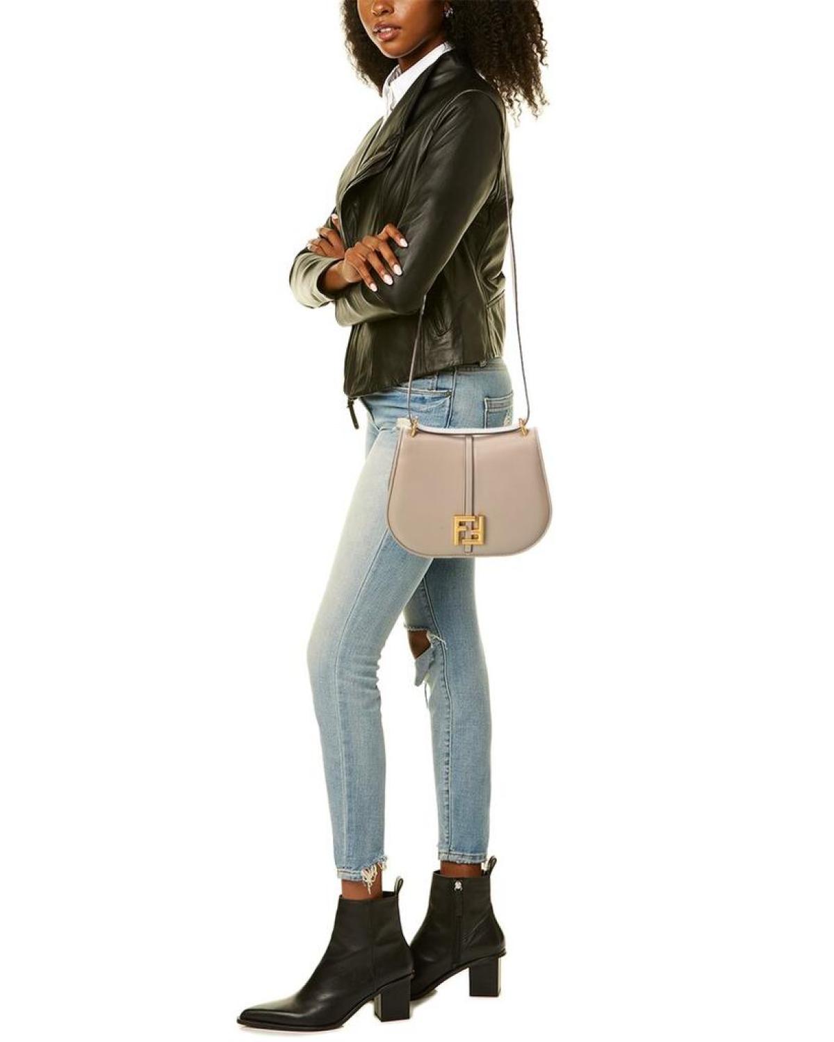 • Introducing the FENDI C’mon Medium Leather Shoulder Bag, a stunning addition to your collection of designer handbags. Crafted with utmost care and precision, this shoulder bag showcases the innovative and elegant Italian luxury that FENDI is renowned for.Made in Italy, this medium leather shoulder bag features exquisite beige leather complemented by gold-tone hardware and signature logo accents. The attention to detail is impeccable, creating a truly sophisticated and stylish accessory.The interior of the bag is lined with luxurious microfiber, ensuring protection for your belongings. It also includes an interior pocket, allowing for convenient organization. With dimensions of 9.8 inches wide, 7.8 inches high, and 3 inches deep, this bag offers ample space while maintaining a compact size.The adjustable and removable shoulder strap provides versatility, allowing you to wear the bag according to your preference. It has a generous drop of 23 inches, ensuring a comfortable fit for every occasion.Designed with functionality in mind, the fold-over flap with a magnetic closure adds a touch of elegance while keeping your essentials secure. Please note that all measurements were taken by hand and are approximate, with slight variations that may occur.Rest assured, our products are 100% genuine. While in some cases we purchase merchandise from trusted independent suppliers rather than directly from the brand owner, we stand by the authenticity of every product sold on our site.Indulge in the luxury and timeless style of FENDI with the C’mon Medium Leather Shoulder Bag. Elevate your ensemble with this exquisite handbag, a perfect blend of fashion and functionality.