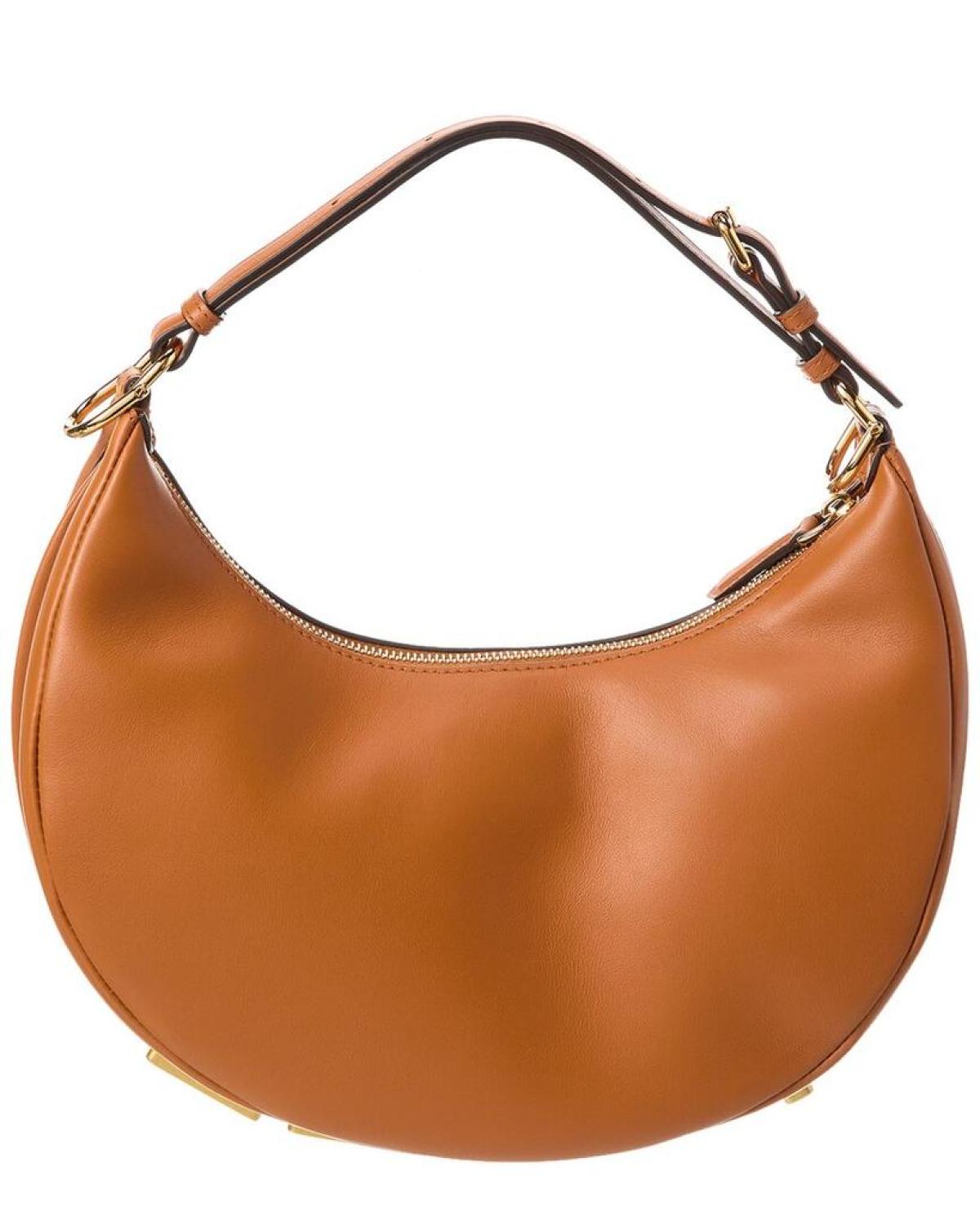 • Introducing the FENDI Fendigraphy Small Leather Hobo Bag – a stunning addition to your collection of handbags. Crafted with utmost care and precision, this Italian luxury brand never fails to impress with its innovative and elegant designs.Made in Italy, this Fendigraphy Small Leather Hobo Bag features a rich brown leather exterior with exquisite gold-tone hardware. The unmistakable FENDI logo lettering beautifully adorns the bottom of the bag, instantly elevating your style.Step inside to discover a thoughtfully designed interior, complete with fabric lining. This ensures a luxurious and comfortable experience every time you reach for your essentials. The spacious dimensions, measuring 11.5 inches wide, 9 inches high, and 3.5 inches deep, offer ample room for all your belongings.Carry this bag effortlessly with the adjustable shoulder strap that drops 9 inches, allowing you to find the perfect fit. The convenient zipper closure ensures the security of your valuables while adding an extra touch of sophistication.Please note that all measurements were taken by hand and are approximate; slight variations may occur, adding a unique touch to your bag. Rest assured, our products are 100% genuine. In some cases, we source merchandise from trusted independent suppliers, ensuring the authenticity of every product we sell.Upgrade your wardrobe with the FENDI Fendigraphy Small Leather Hobo Bag – a remarkable blend of style, luxury, and functionality. Shop now and make a statement wherever you go.